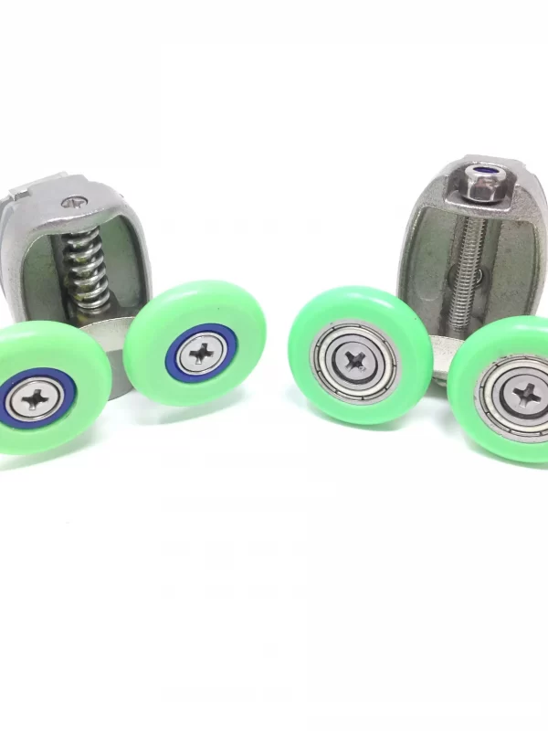Fortement sollicitées, les roulettes de vos portes coulissantes subissent au quotient l’agressivité du calcaire, des résidus savonneux et autres chocs. D’une durée de vie limitée dans le temps, ces organes doivent faire l’objet d’attentions et être changés en cas de dysfonctionnement.