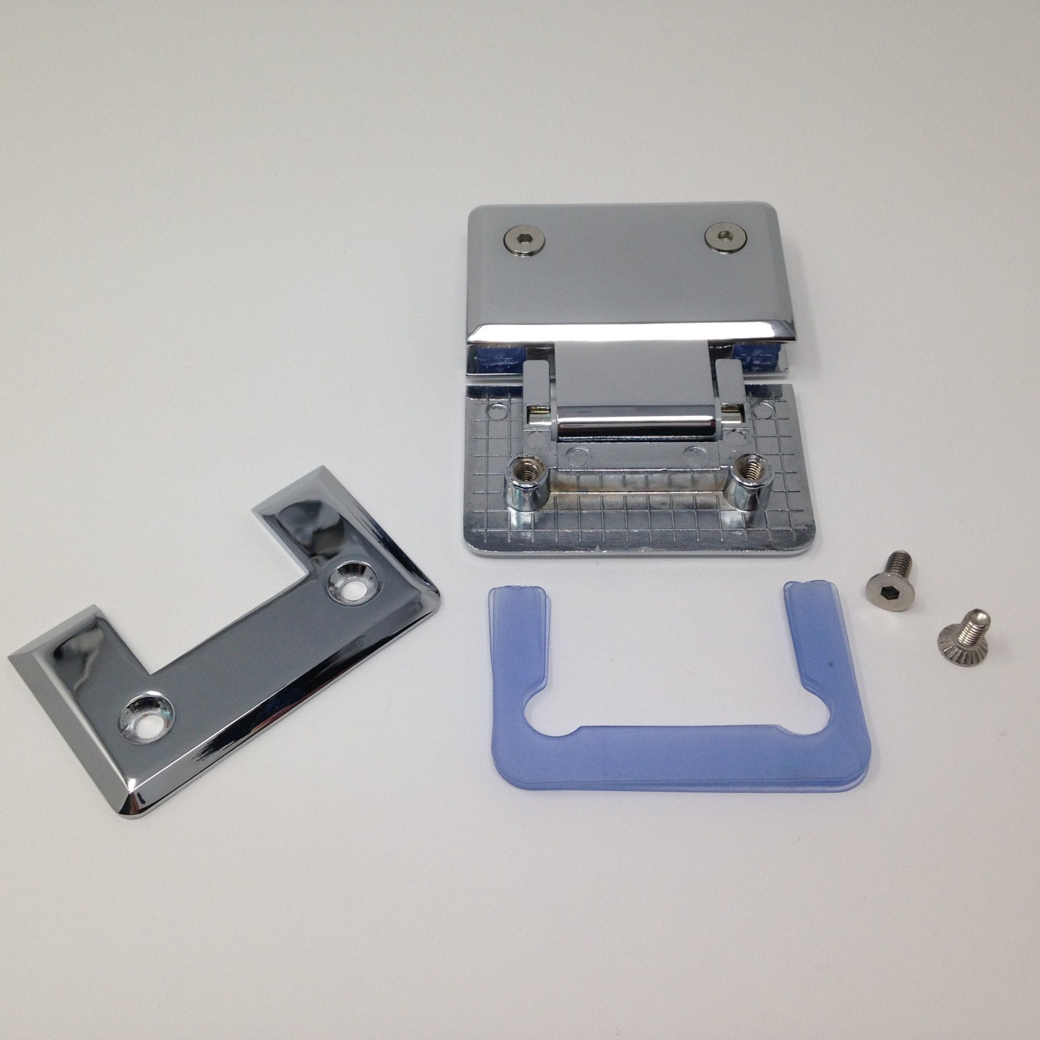 nCette charnière est destinée aux portes, cloisons et pare douche en verre trempé. 2 à 3 charnières sont nécessaires pour chaque porte en verre.nnL’installation de cette charnière nécessite la présence d’encoches dans le verre.nn n