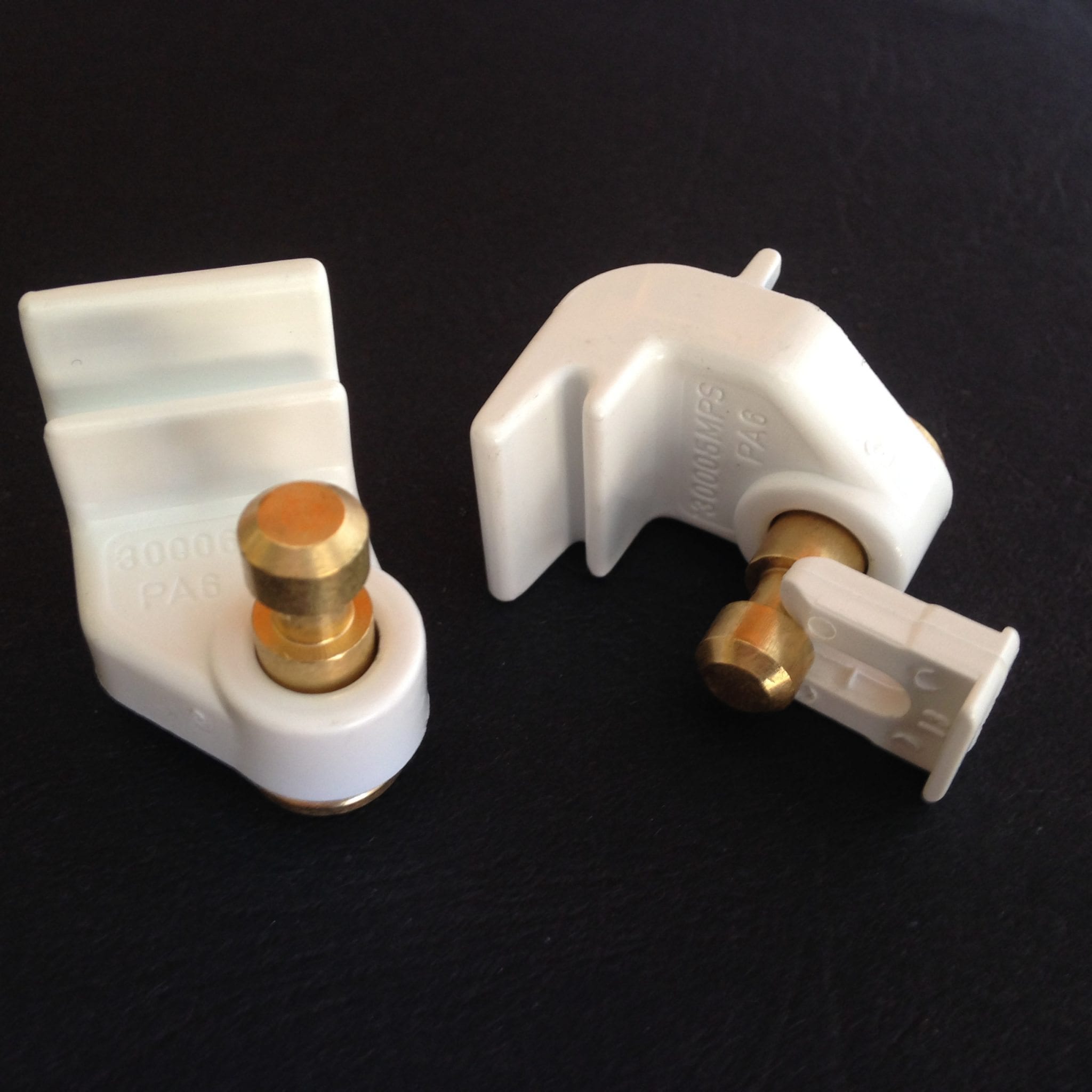 Guide coulissant se fixant à la paroi de la cabine de douche et coulissant dans un rail. Vendus par lot de 2, ces guides se composent d’un corps en plastique. L’axe est en laiton. Le choix et la qualité des matériaux employés offrent une utilisation optimale de confort, limitant ainsi le frottement et le bruit lors de la manipulation de la porte.