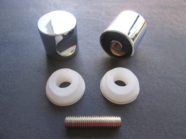 De finition chromée, cette paire de poignées est vendue avec sa vis centrale de serrage et ses joints en PVC. Une fois montée, la vis est invisible. Finition et rendu impeccables. Grande simplicité de montage et de serrage.