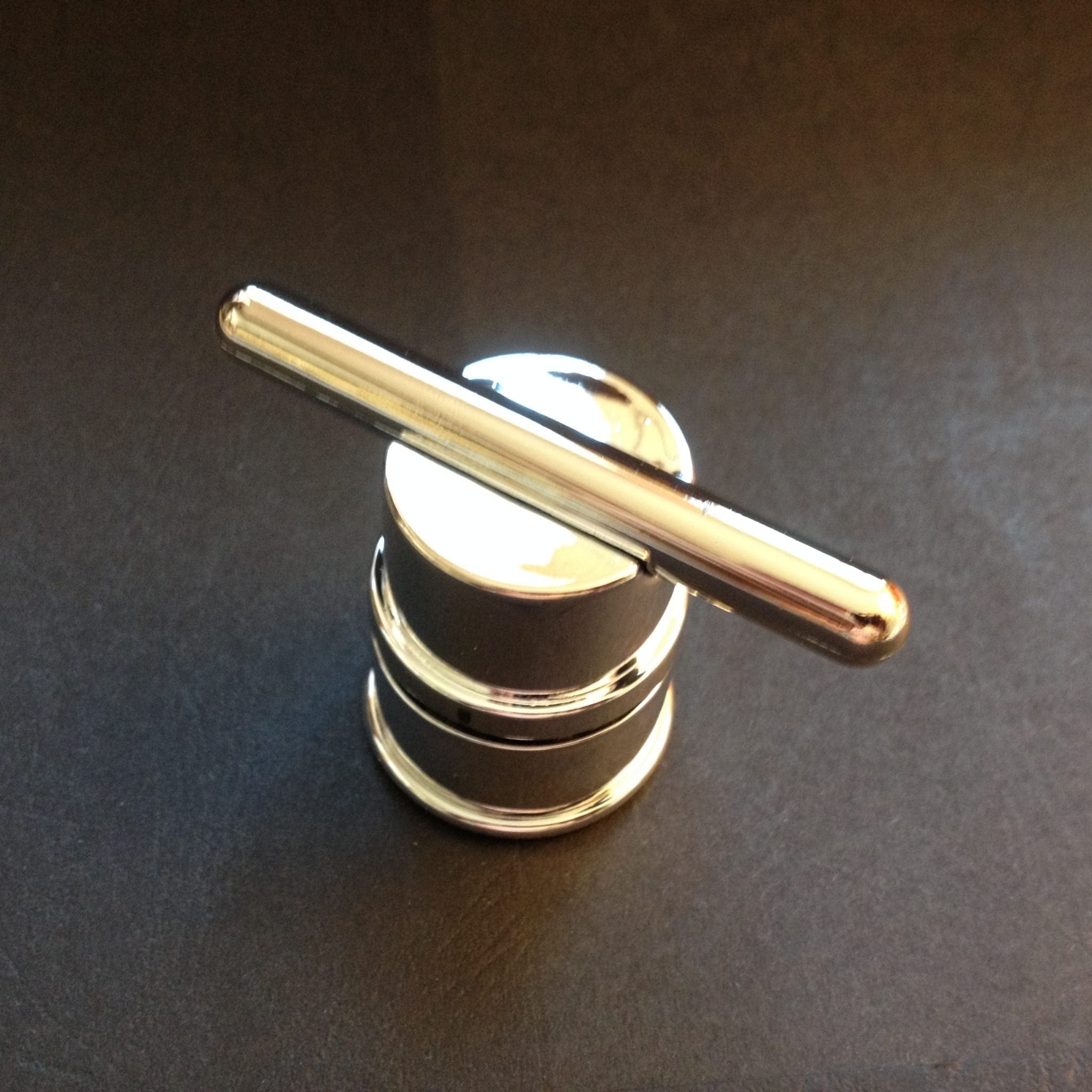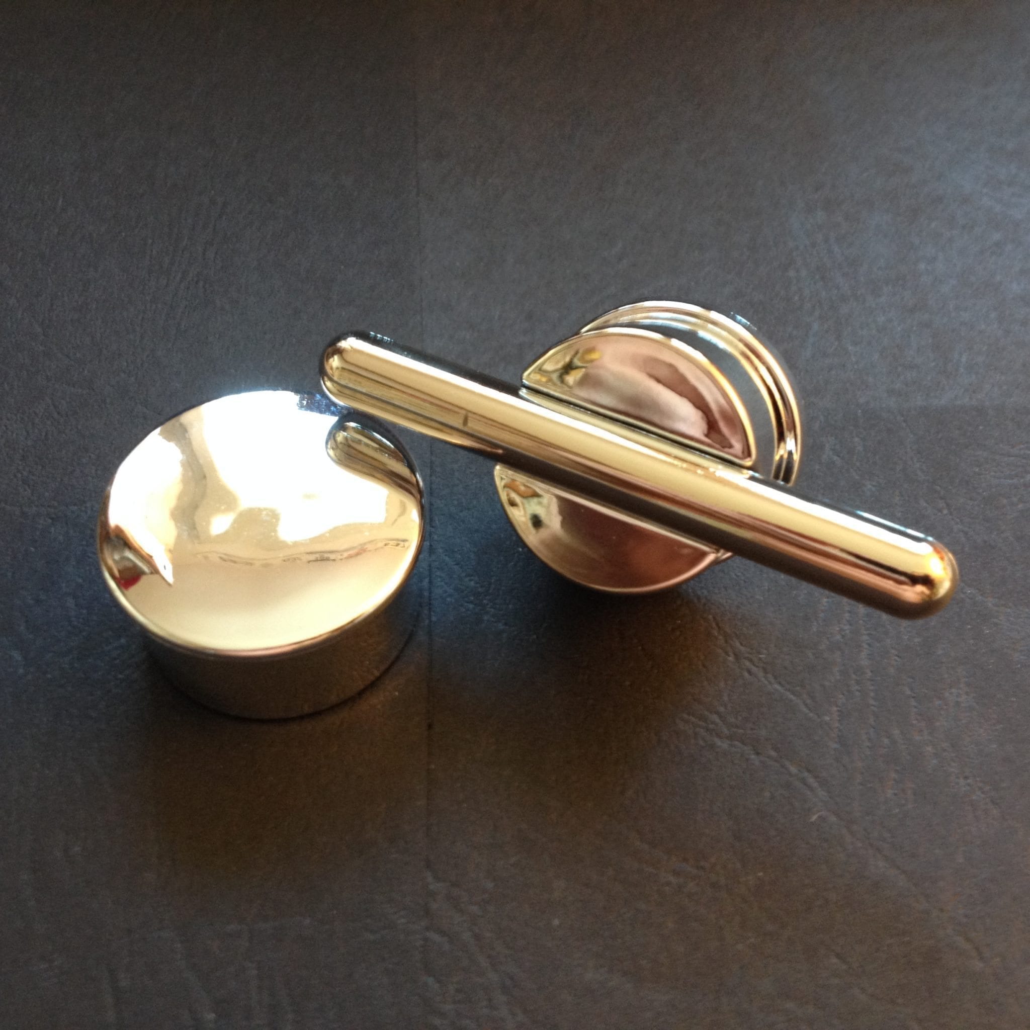 De finition chromée, cette paire de poignées est vendue avec sa vis centrale de serrage et ses joints en caoutchouc. Une fois montée, la vis est invisible. Finition et rendu impeccables. Grande simplicité de montage et de serrage.