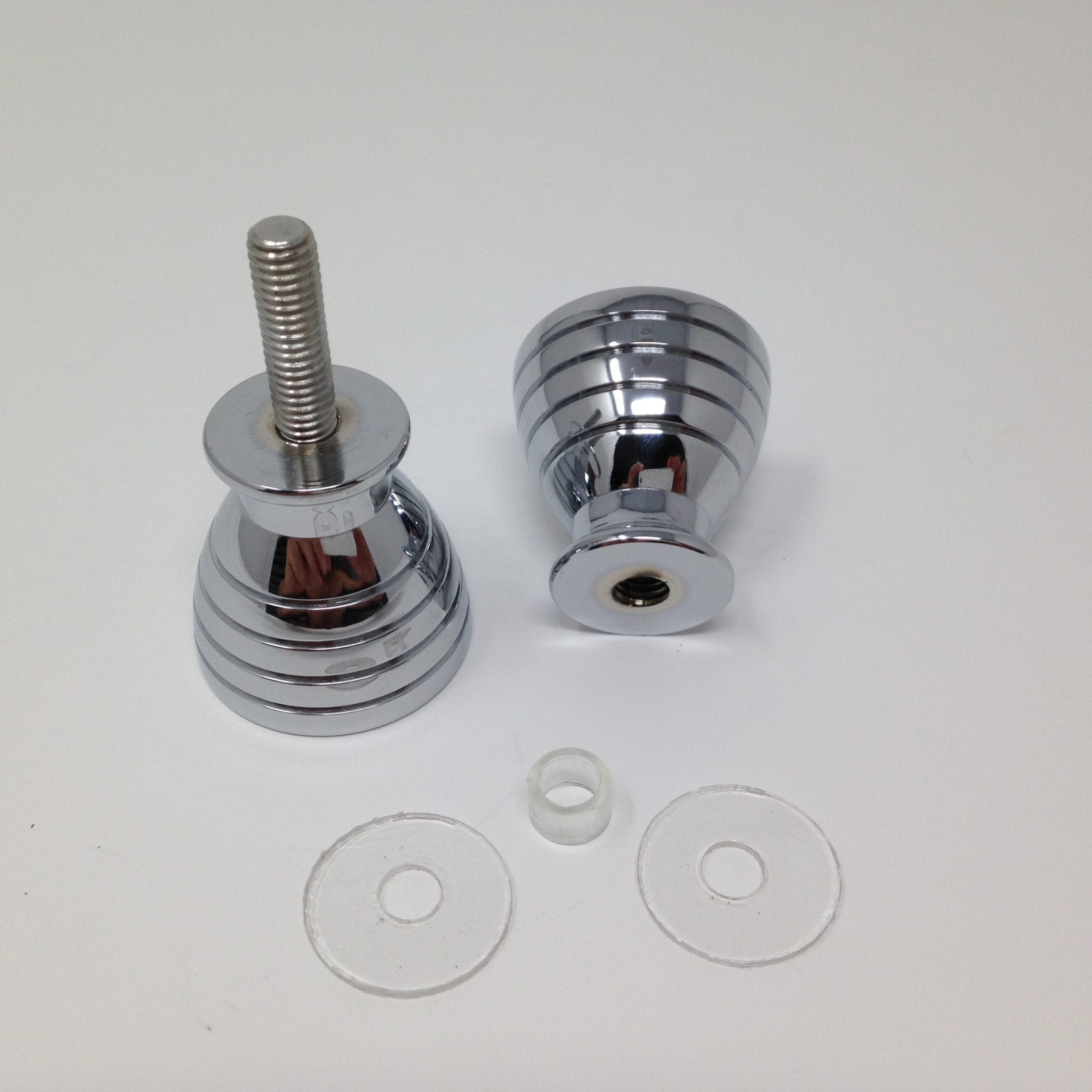 De finition chromée, cette paire de poignées est vendue avec sa vis centrale de serrage et ses joints en PVC. Une fois montée, la vis est invisible. Finition et rendu impeccables. Grande simplicité de montage et de serrage.