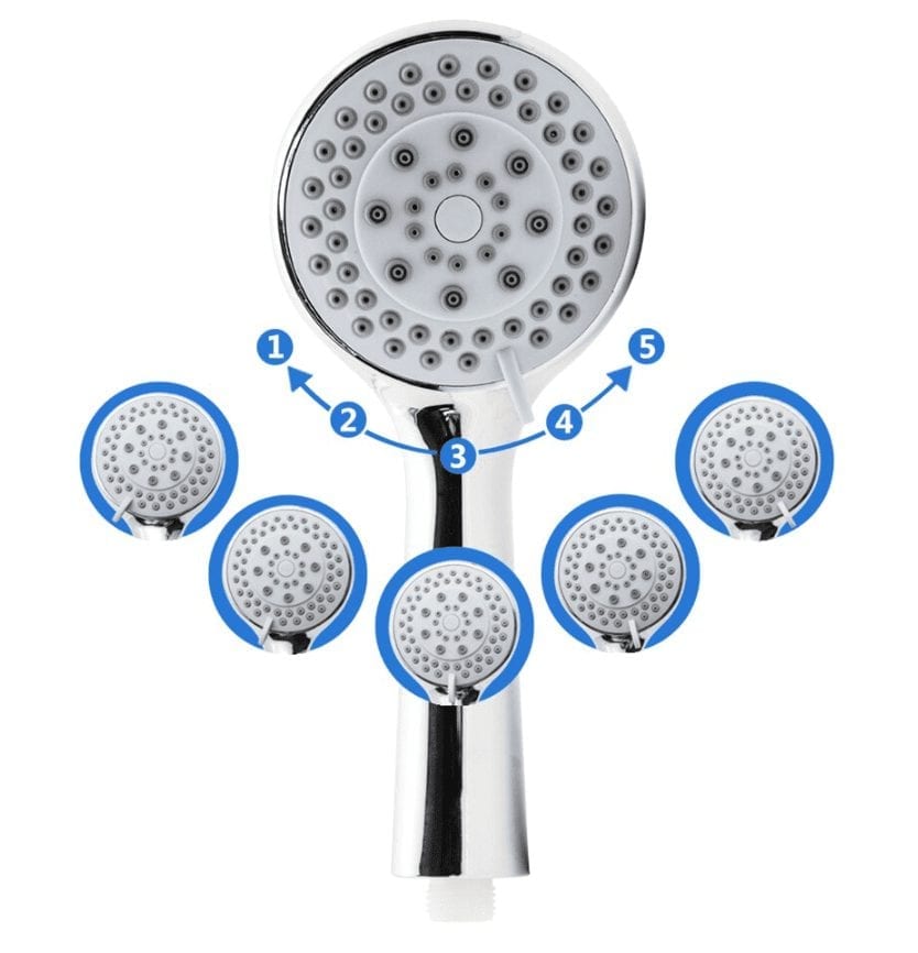 nPommeau de douche, collection Sofia, pour une utilisation au quotidien, alliant bien-être, relaxation, massage. Muni de 5 jets réglables, ce pommeau accompagne tous les moments de votre douche. Sa poignée ergonomique facilité son utilisation.