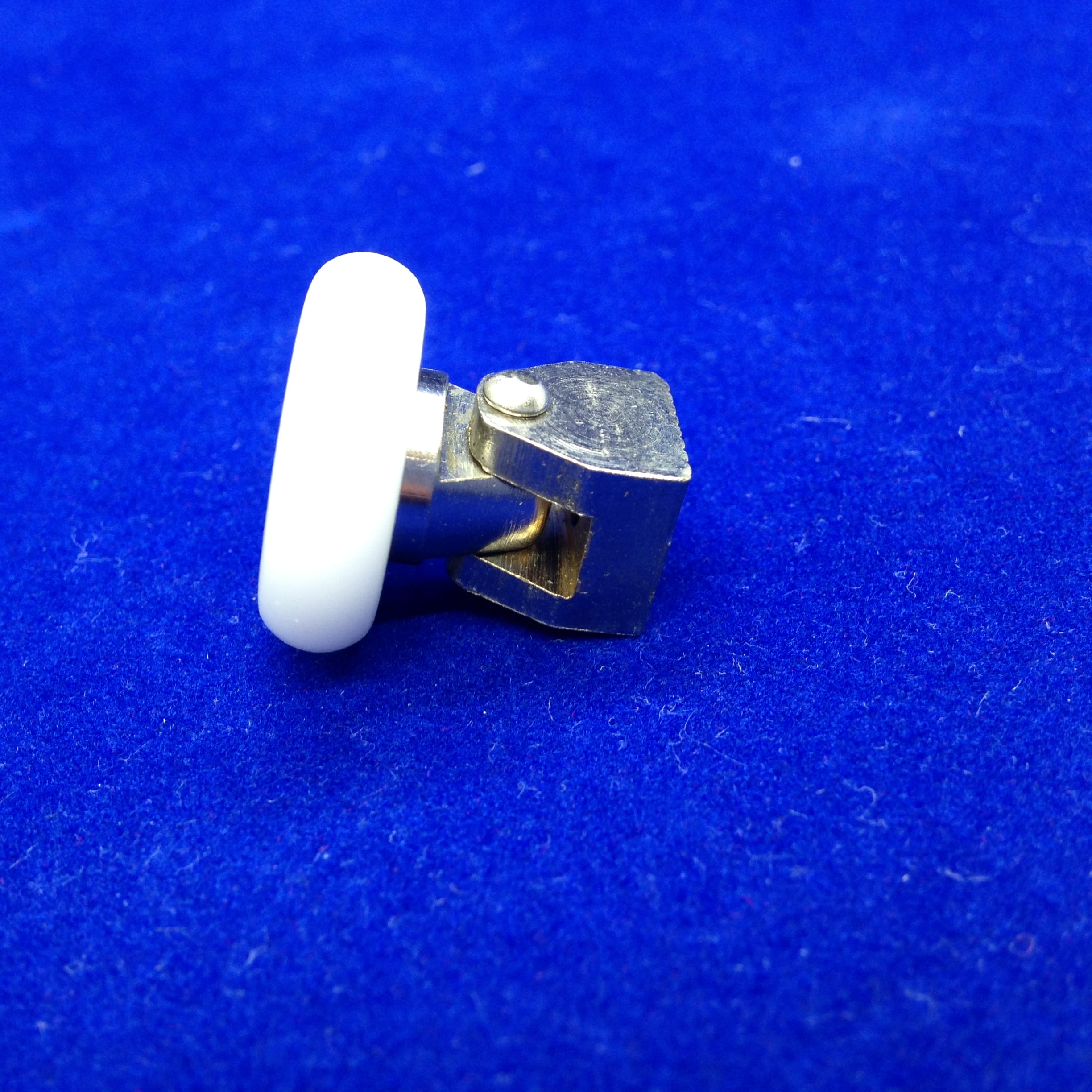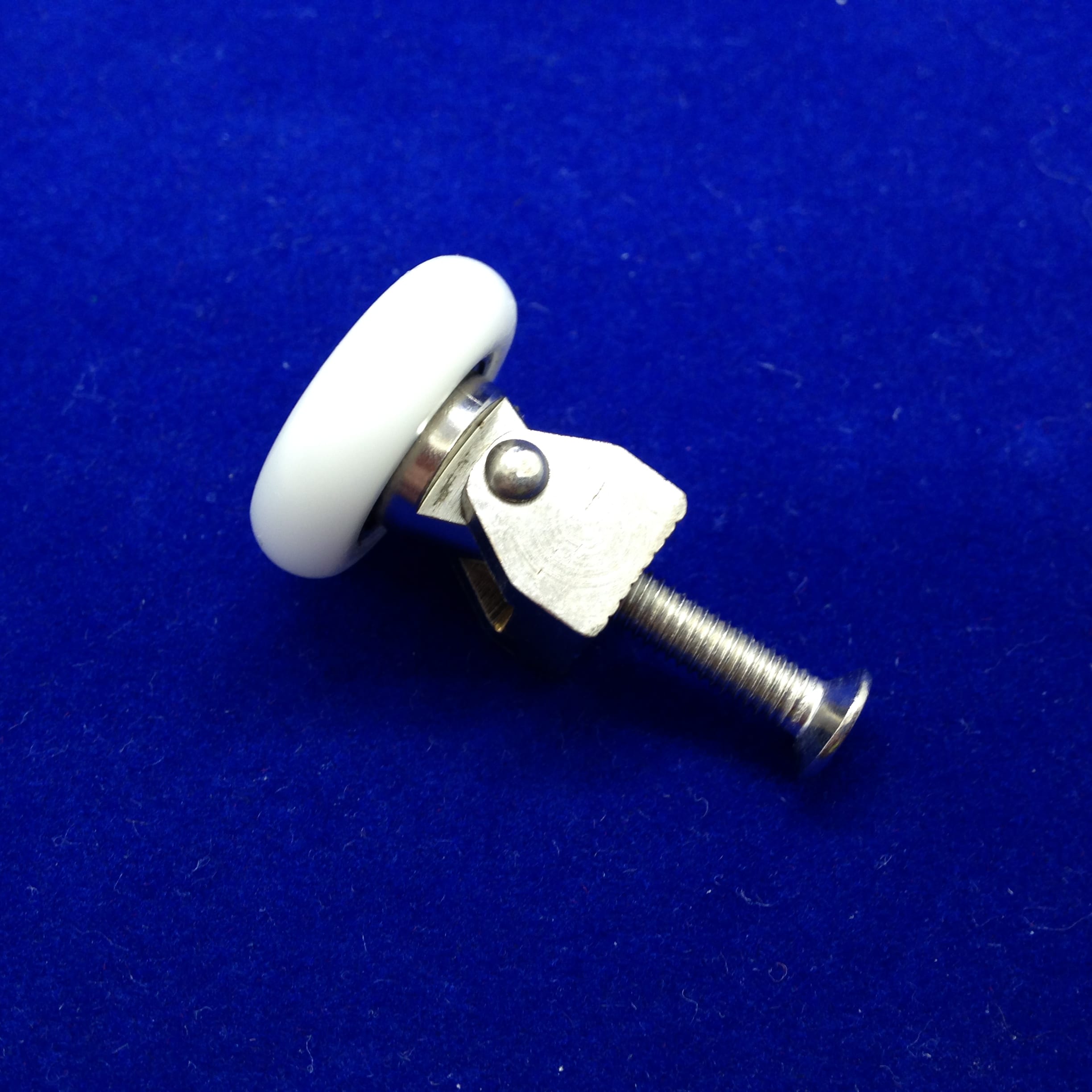 Roulette droite simple pour porte coulissante de cabine de douche. Vendue à l’unité, cette roulette se compose d’un corps en téflon. Le bandage de la roulette est en téflon, recouvrant un roulement à billes étanche en acier inoxydable. Le choix et la qualité des matériaux employés offrent une utilisation optimale de confort, limitant ainsi le frottement et le bruit lors de la manipulation de la porte.