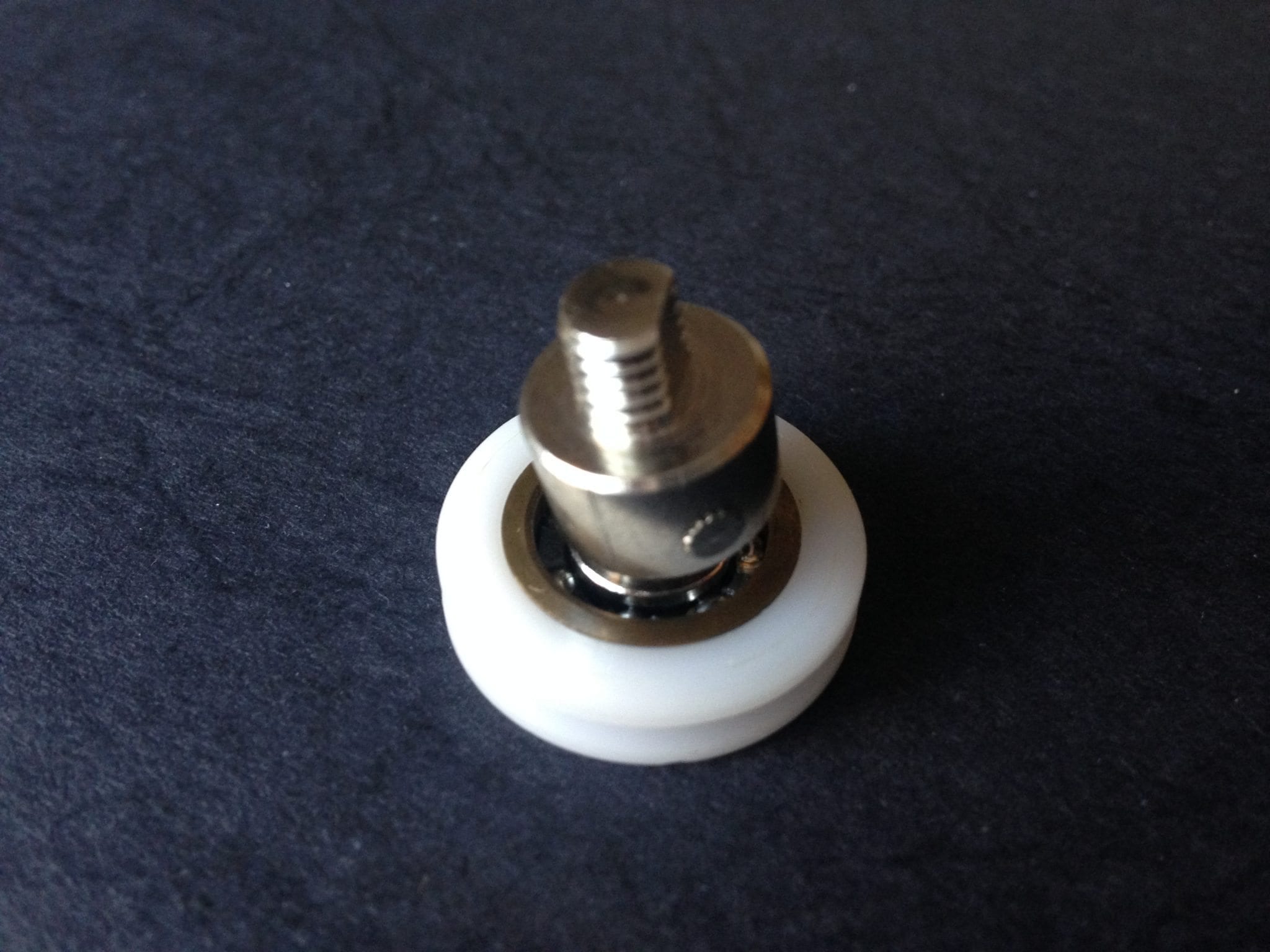 Roulette articulée simple pour porte coulissante de cabine de douche. Vendue à l’unité, cette roulette se compose d’un corps en laiton. Le bandage plat de la roulette est en téflon, recouvrant un roulement à billes étanche en acier inoxydable. Le choix et la qualité des matériaux employés offrent une utilisation optimale de confort, limitant ainsi le frottement et le bruit lors de la manipulation de la porte.