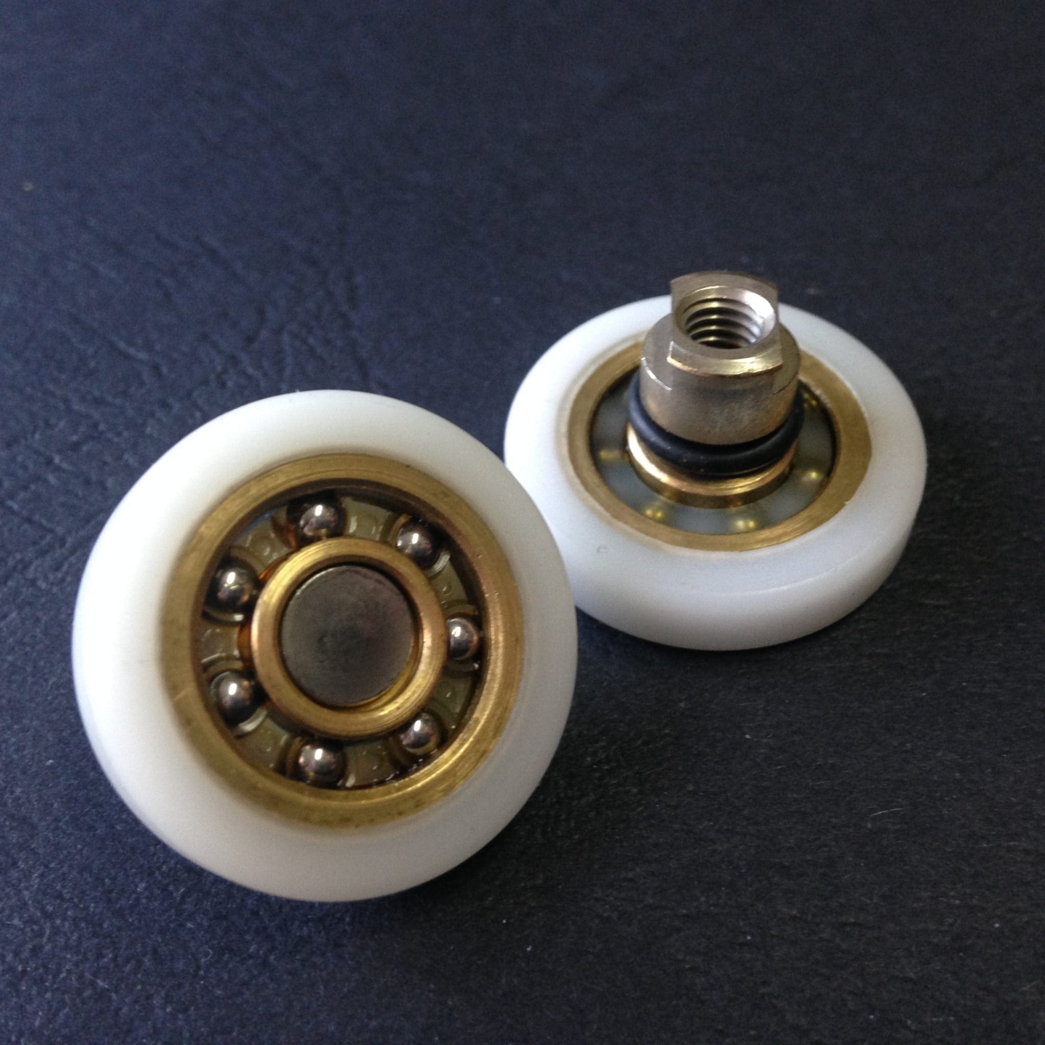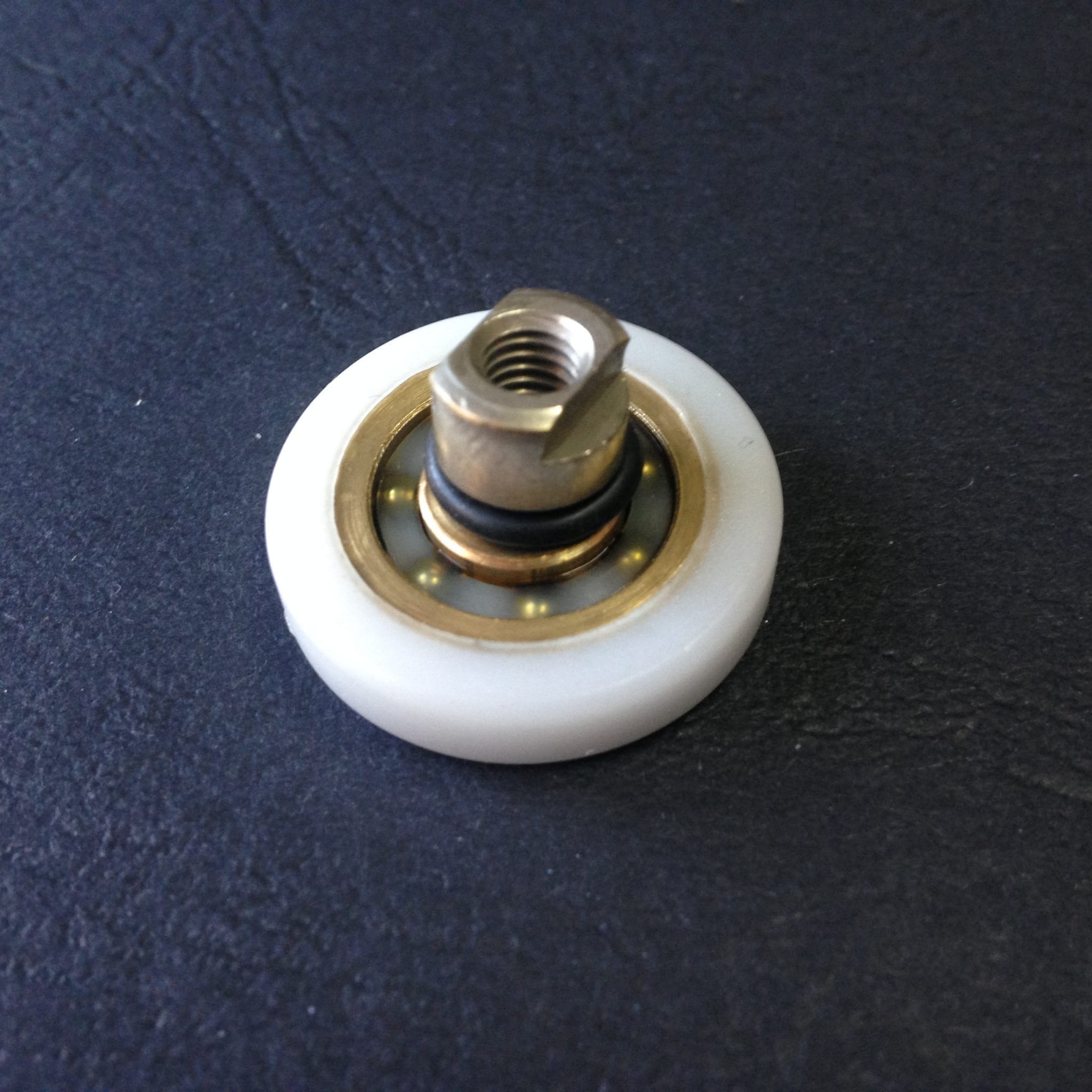 Roulette articulée simple pour porte coulissante de cabine de douche. Vendue à l’unité, cette roulette se compose d’un corps en laiton. Le bandage plat de la roulette est en téflon, recouvrant un roulement à billes étanche en acier inoxydable. Le choix et la qualité des matériaux employés offrent une utilisation optimale de confort, limitant ainsi le frottement et le bruit lors de la manipulation de la porte.