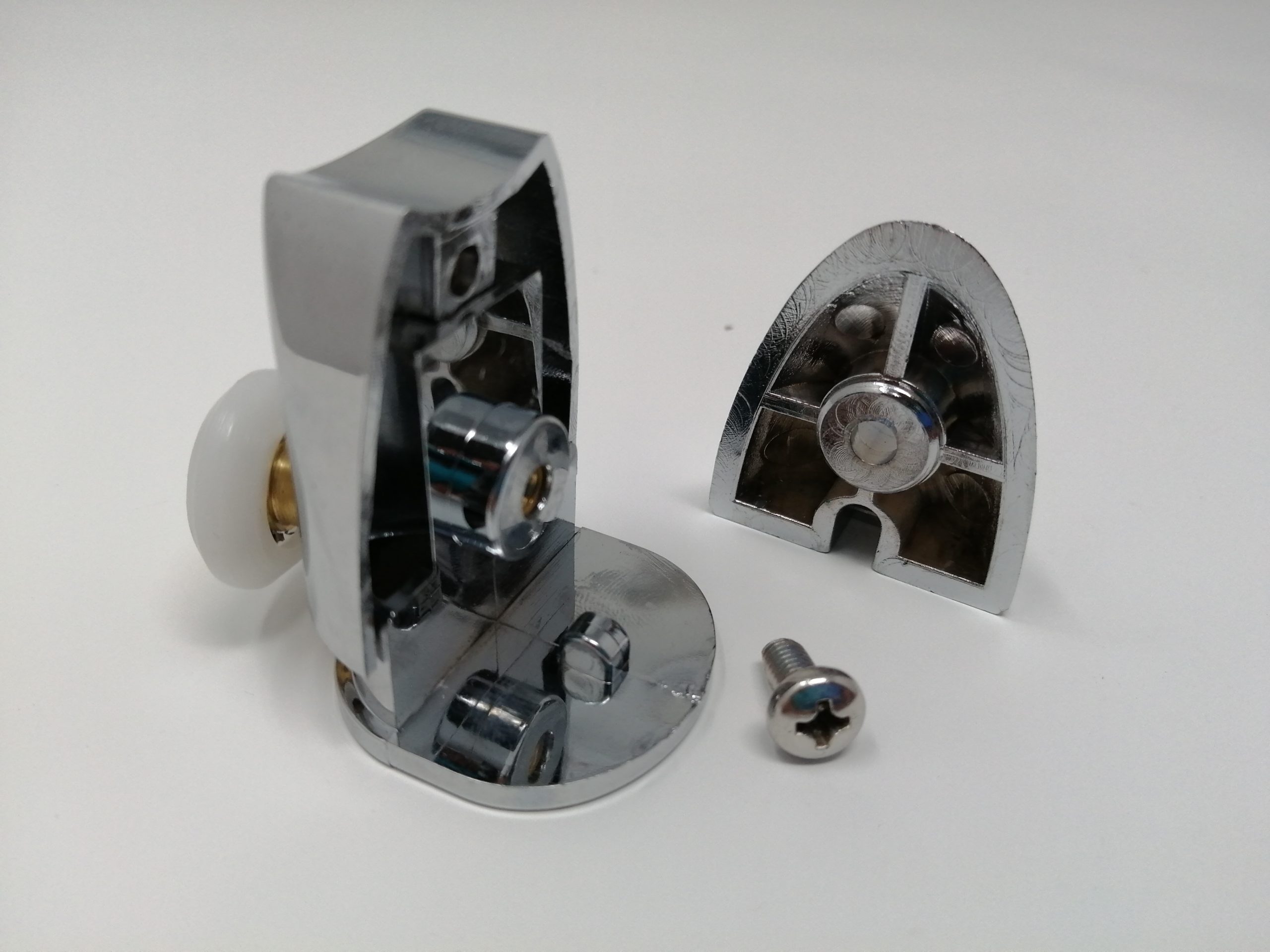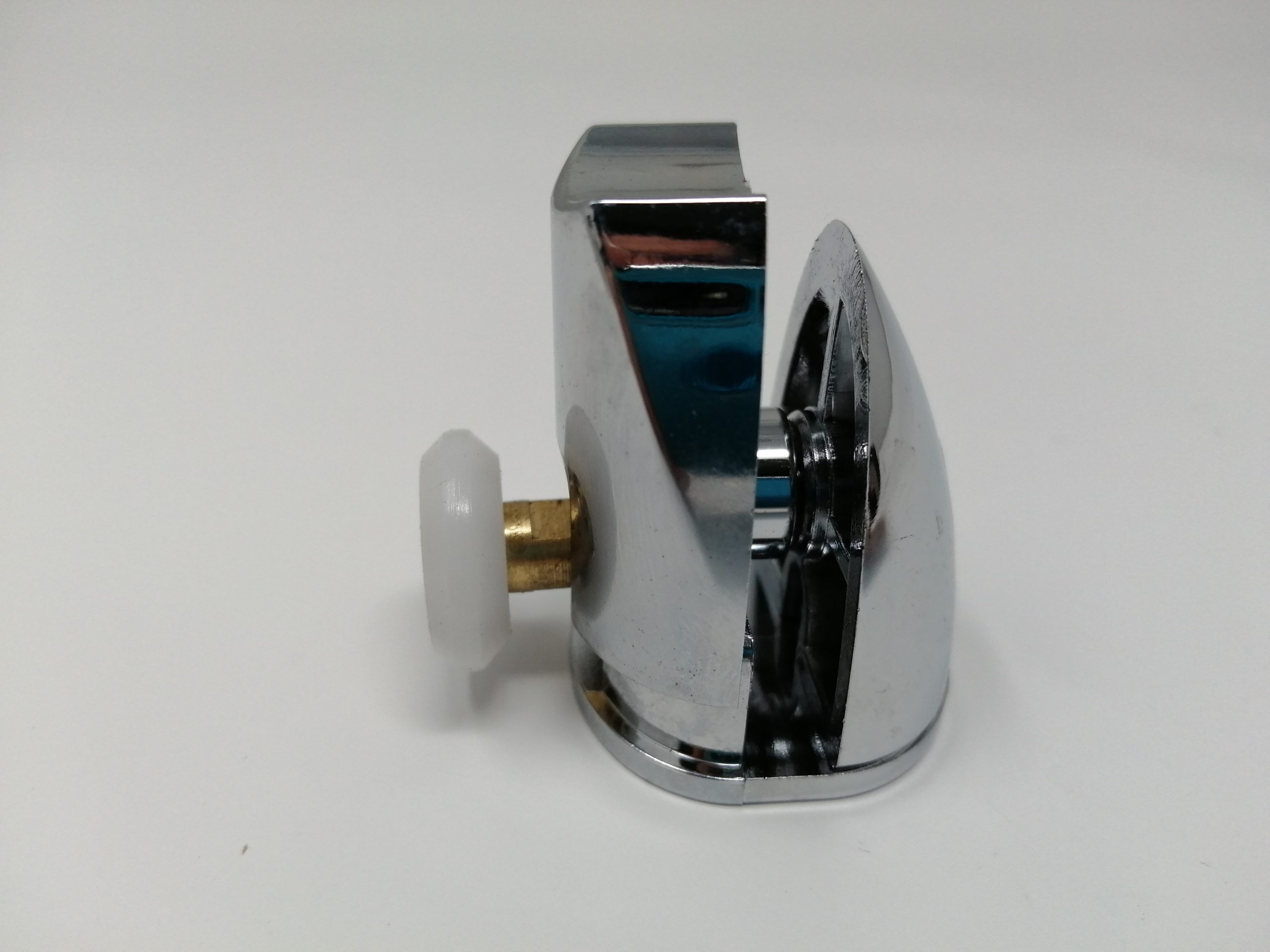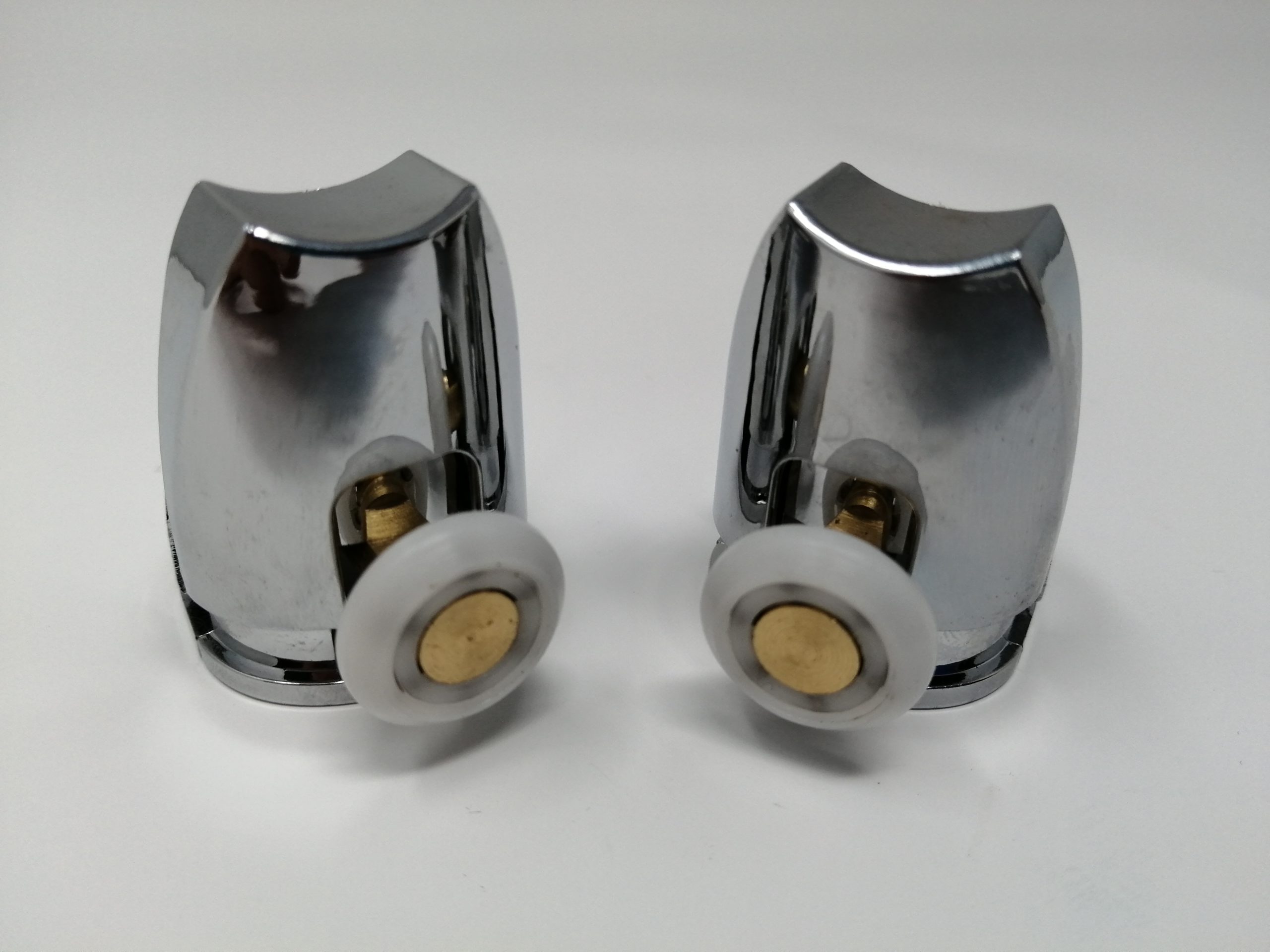 Roulette simple basse pour porte coulissante de cabine de douche. Vendues par lot de 2, ces roulettes se composent d’un corps en laiton ou en alliage de zinc et d’éléments de soutien en plastique type ABS. Le bandage de la roulette est en téflon, recouvrant un roulement à billes étanche en acier inoxydable. Le choix et la qualité des matériaux employés offrent une utilisation optimale de confort, limitant ainsi le frottement et le bruit lors de la manipulation de la porte.