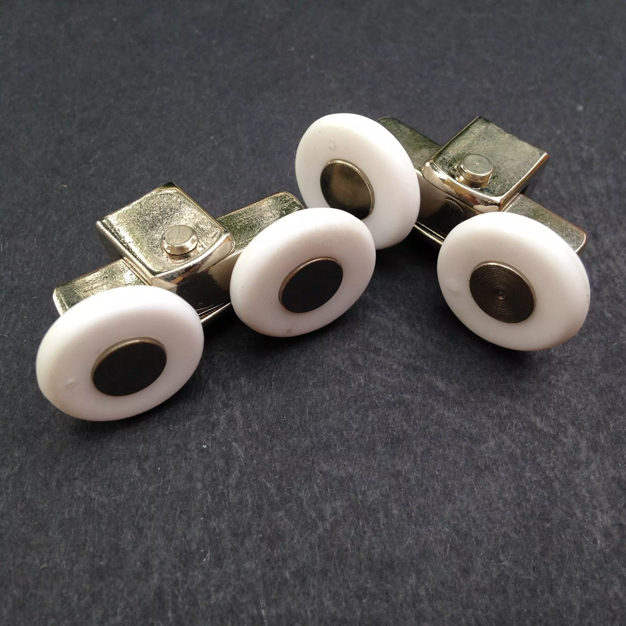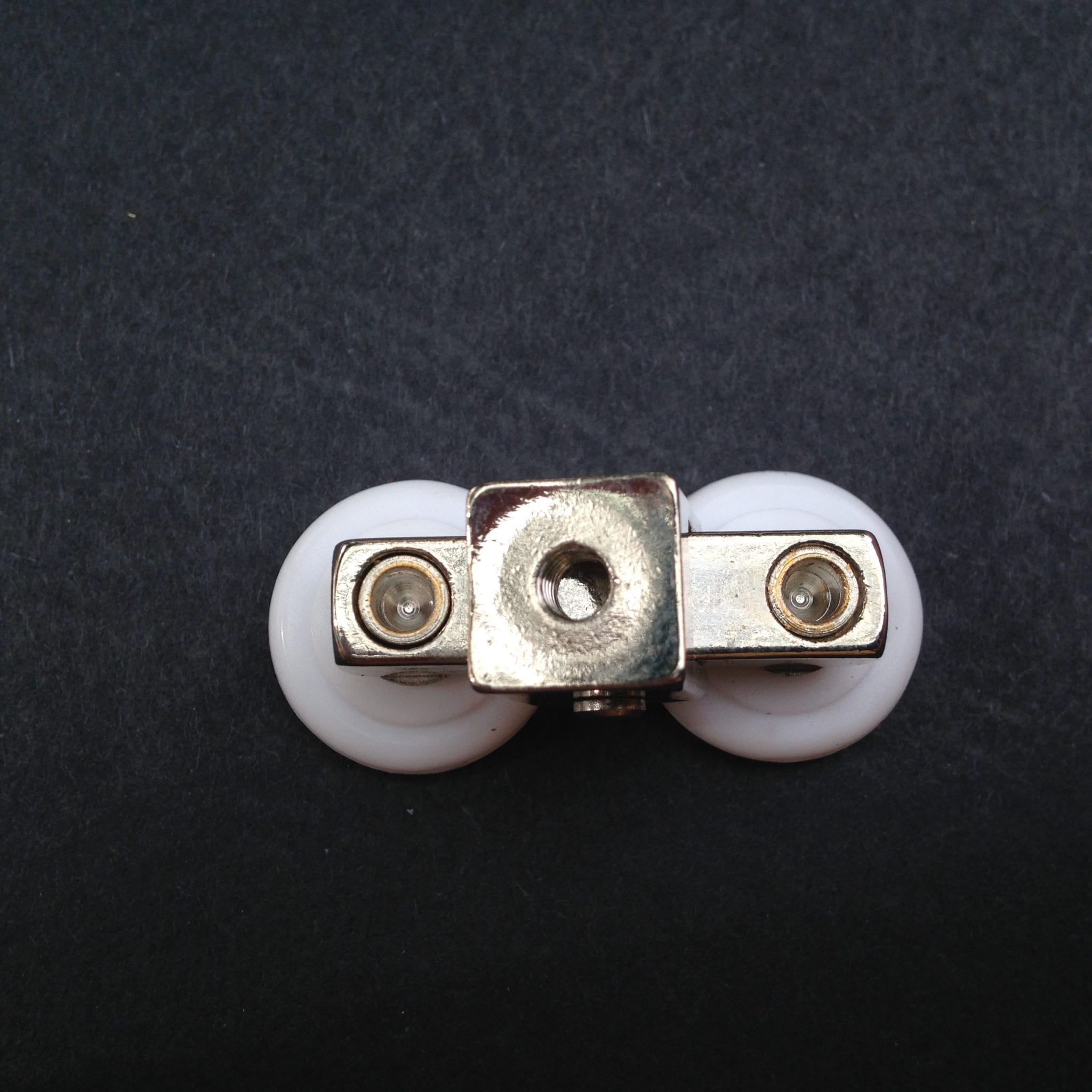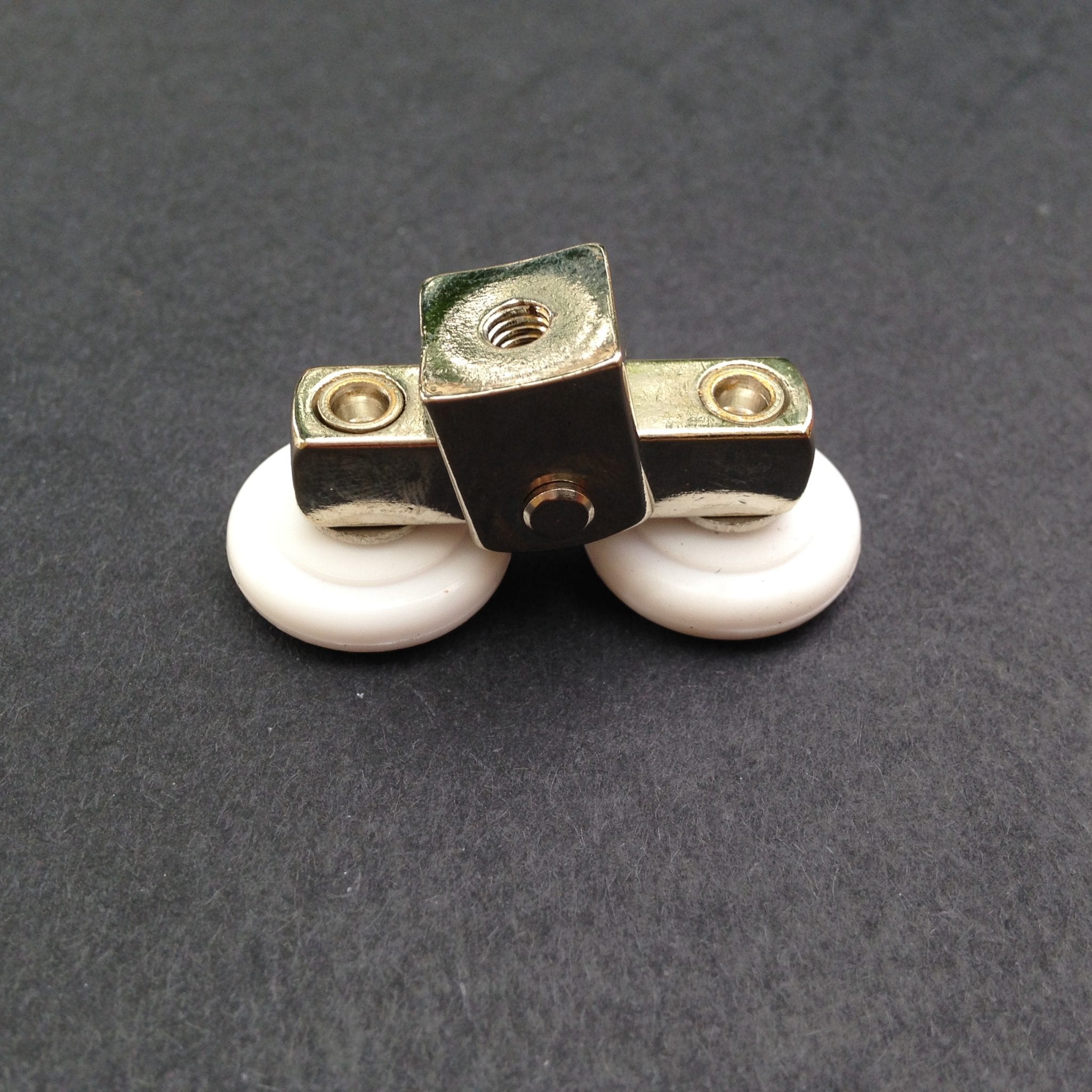 Roulette double droite et gauche pour porte coulissante de cabine de douche. Vendues par lot de 2, ces roulettes se composent d’un corps en laiton et d’éléments de soutien en plastique de type ABS. Le bandage de la roulette est en téflon, recouvrant un roulement à billes étanche en acier inoxydable. Le choix et la qualité des matériaux employés offrent une utilisation optimale de confort, limitant ainsi le frottement et le bruit lors de la manipulation de la porte.