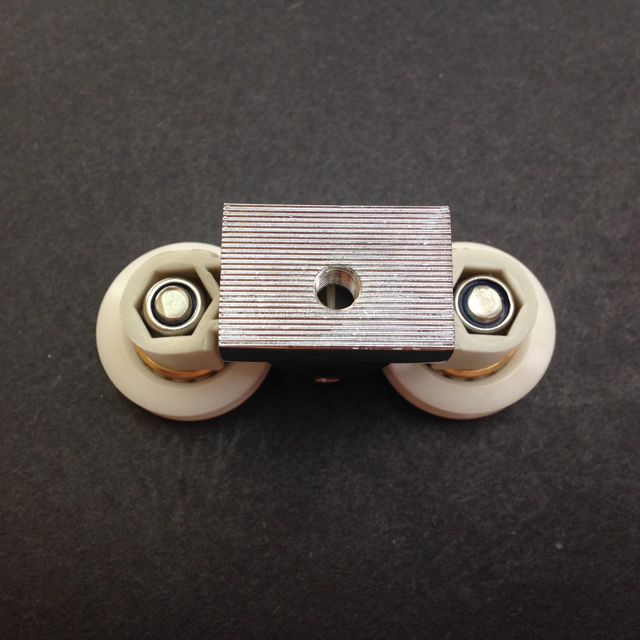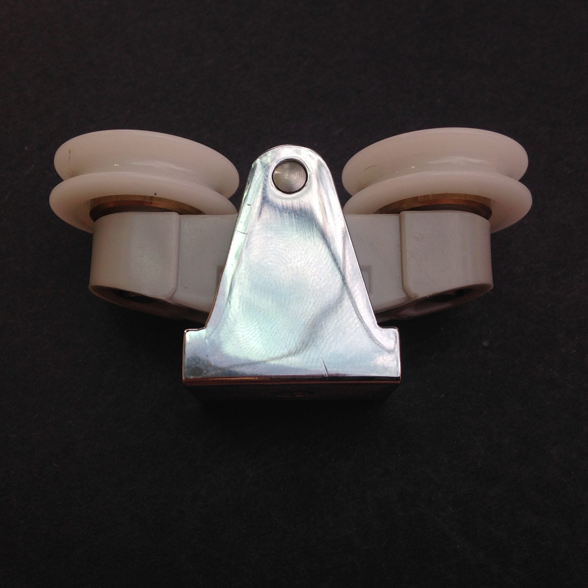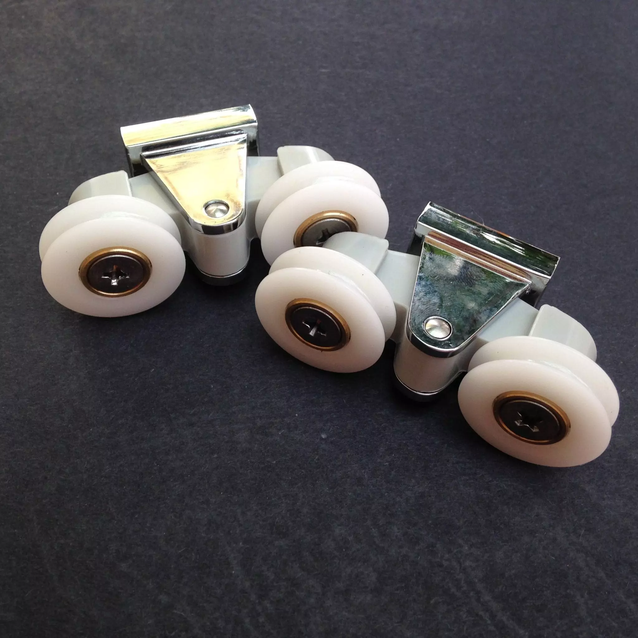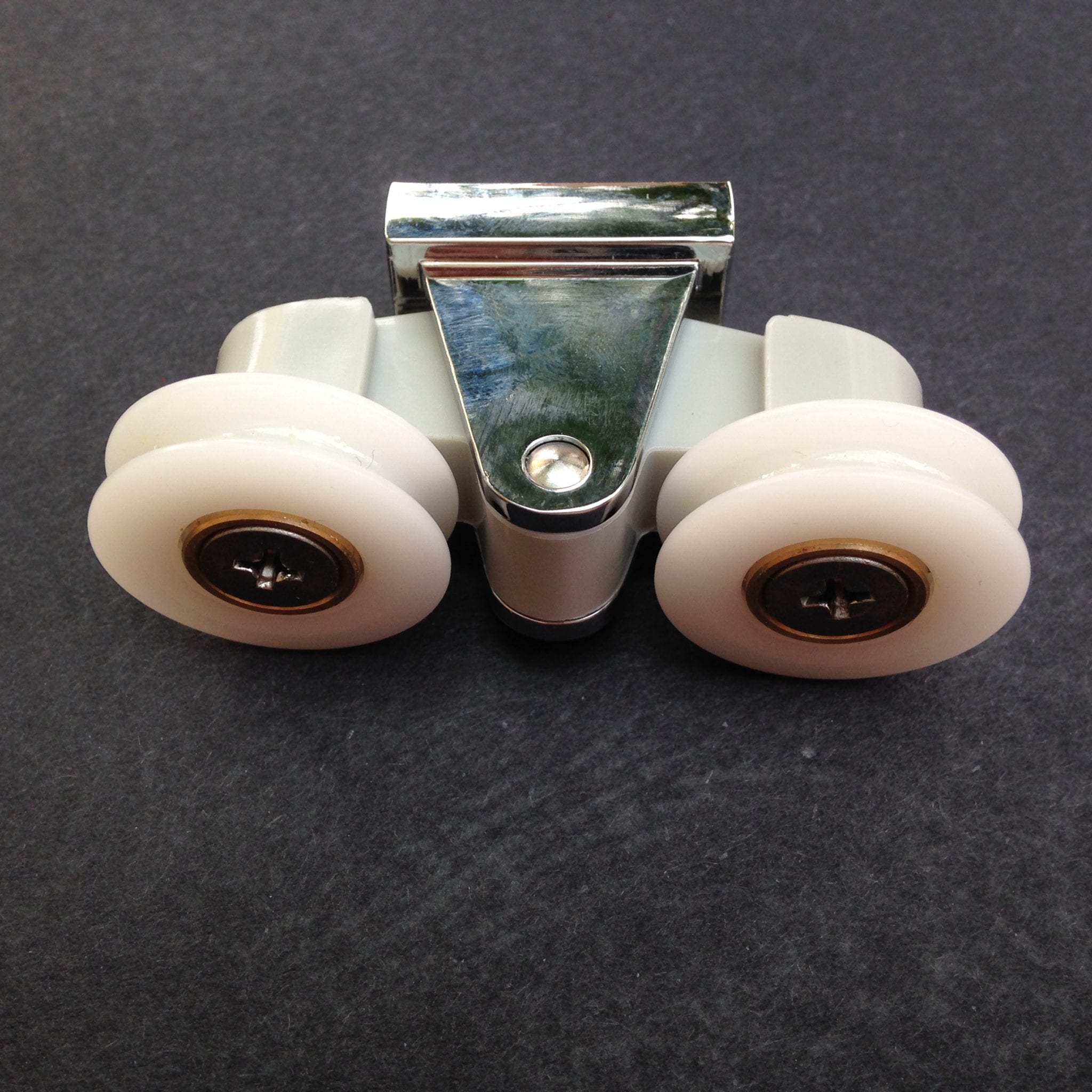 Roulette double droite et gauche pour porte coulissante de cabine de douche. Vendues par lot de 2, ces roulettes se composent d’un corps en laiton et d’éléments de soutien en plastique de type ABS. Le bandage de la roulette est en téflon, recouvrant un roulement à billes étanche en acier inoxydable. Le choix et la qualité des matériaux employés offrent une utilisation optimale de confort, limitant ainsi le frottement et le bruit lors de la manipulation de la porte.