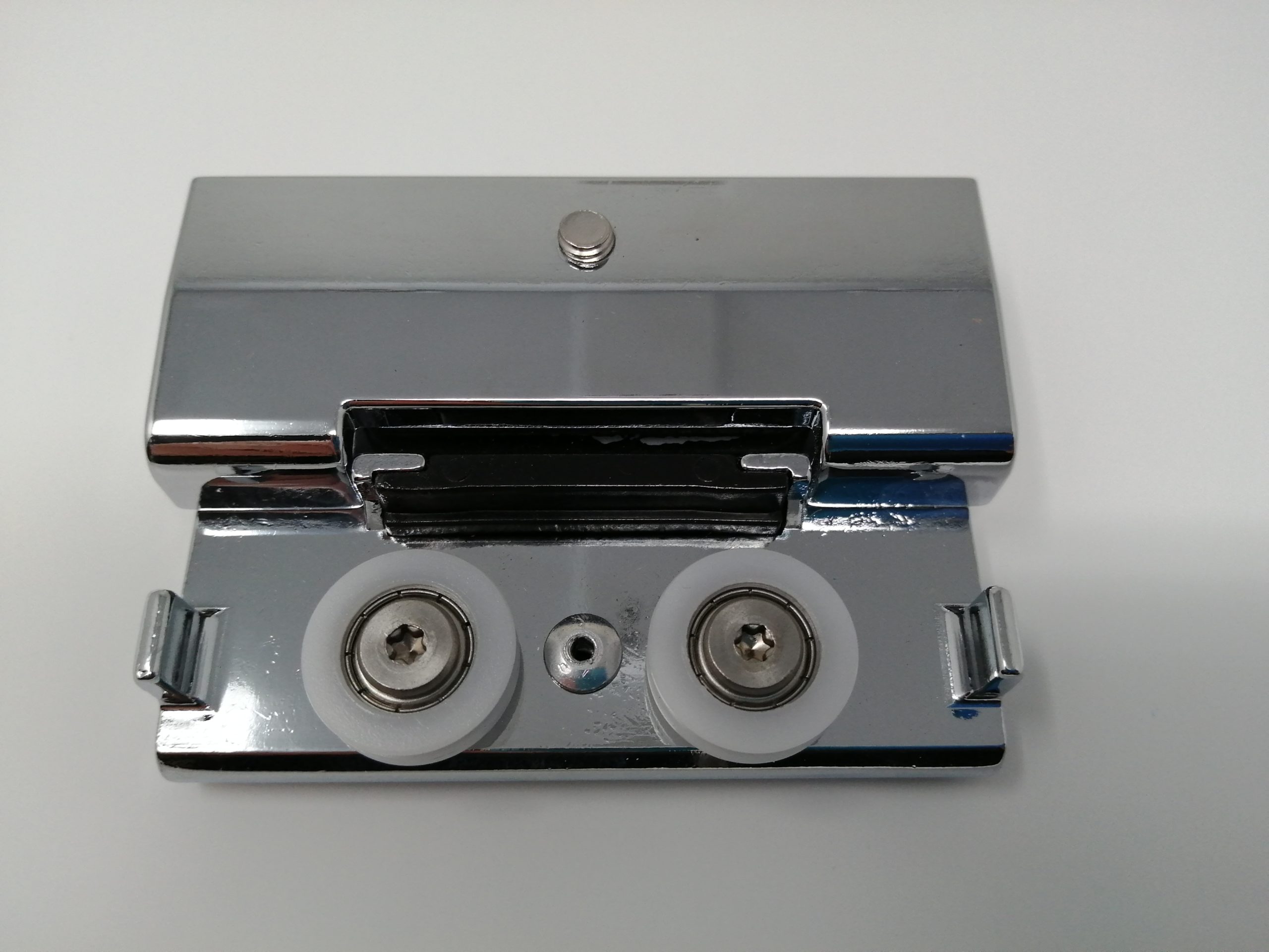 Roulette double droite et gauche pour porte coulissante de cabine de douche. Vendue à l’unité, cette roulette se compose d’un corps en laiton et d’éléments de soutien en plastique de type ABS. Le bandage de la roulette est en téflon, recouvrant un roulement à billes étanche en acier inoxydable. Le choix et la qualité des matériaux employés offrent une utilisation optimale de confort, limitant ainsi le frottement et le bruit lors de la manipulation de la porte.