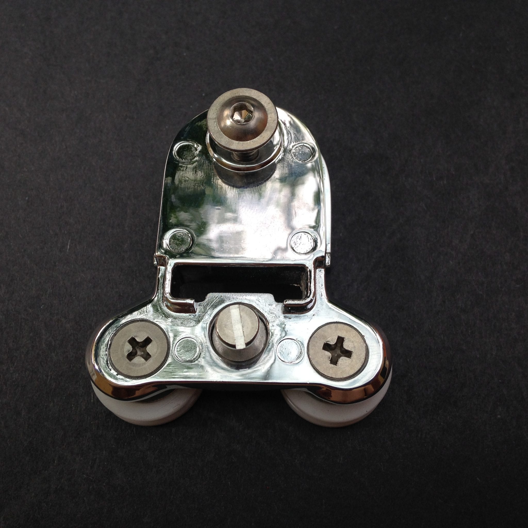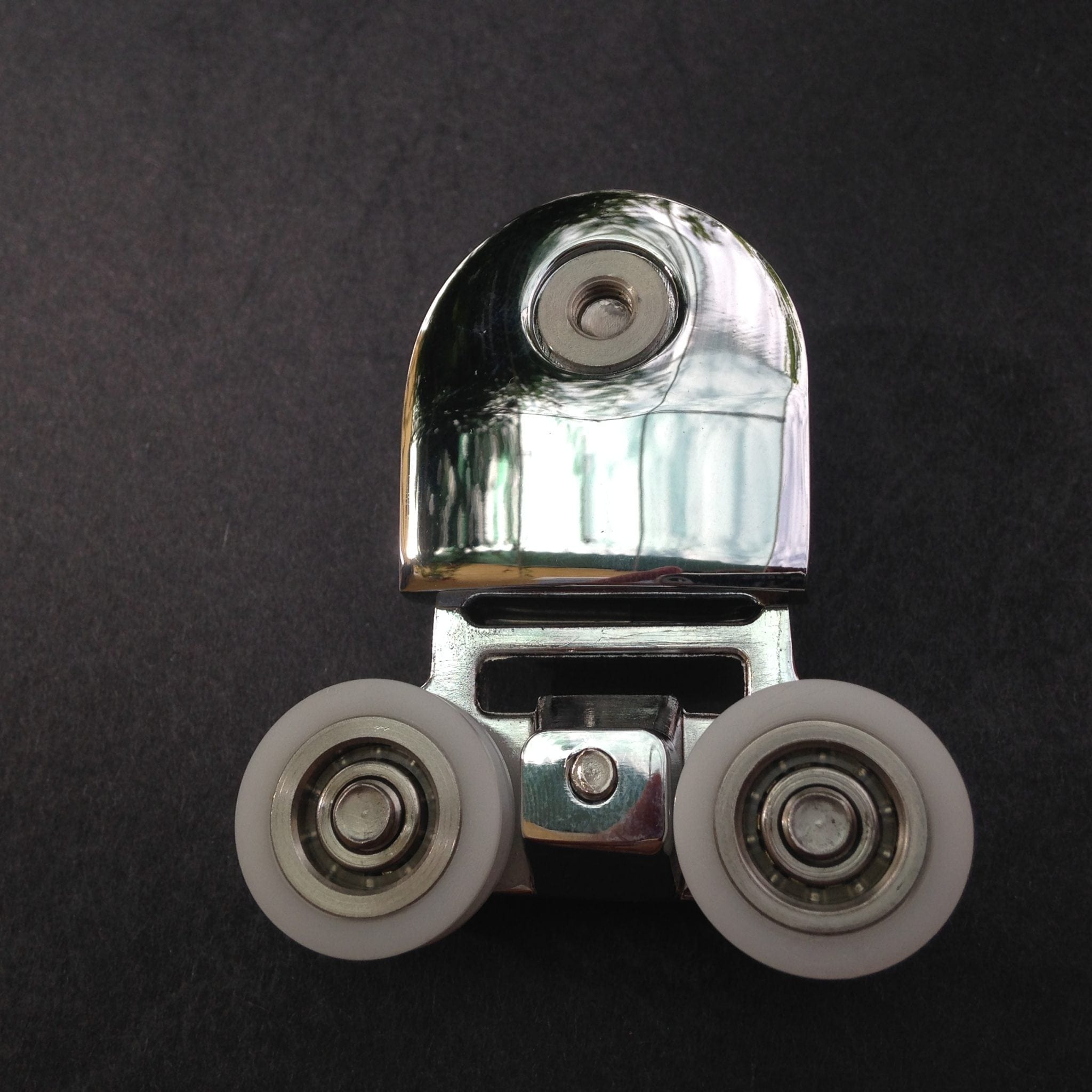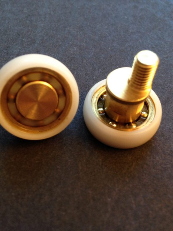 Roulette double droite et gauche pour porte coulissante de cabine de douche. Vendue à l’unité, cette roulette se compose d’un corps en laiton et d’éléments de soutien en plastique de type ABS. Le bandage de la roulette est en téflon, recouvrant un roulement à billes étanche en acier inoxydable. Le choix et la qualité des matériaux employés offrent une utilisation optimale de confort, limitant ainsi le frottement et le bruit lors de la manipulation de la porte.