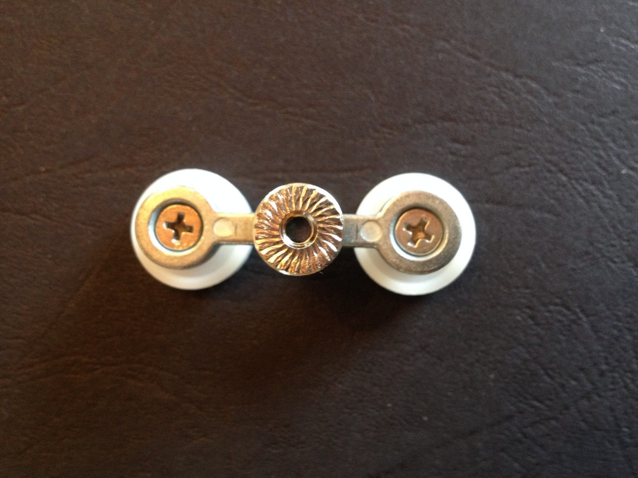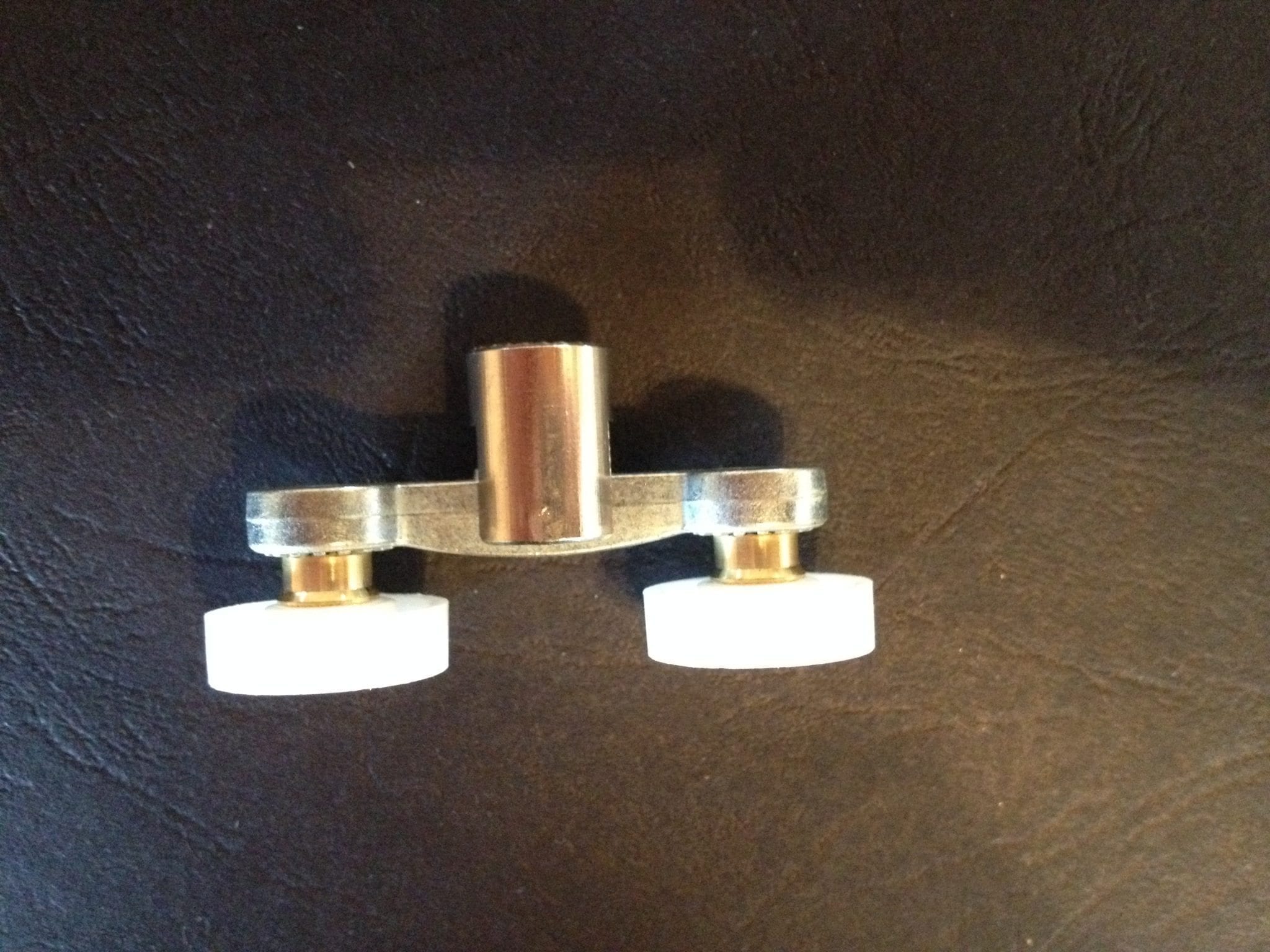 Roulette double haute et basse à bandage plat pour porte coulissante de cabine de douche. Vendues par lot de 2, ces roulettes se composent d’un corps en laiton et d’éléments de soutien en aluminium. Le bandage de la roulette est en téflon, recouvrant un roulement à billes étanche en acier inoxydable. Le choix et la qualité des matériaux employés offrent une utilisation optimale de confort, limitant ainsi le frottement et le bruit lors de la manipulation de la porte.