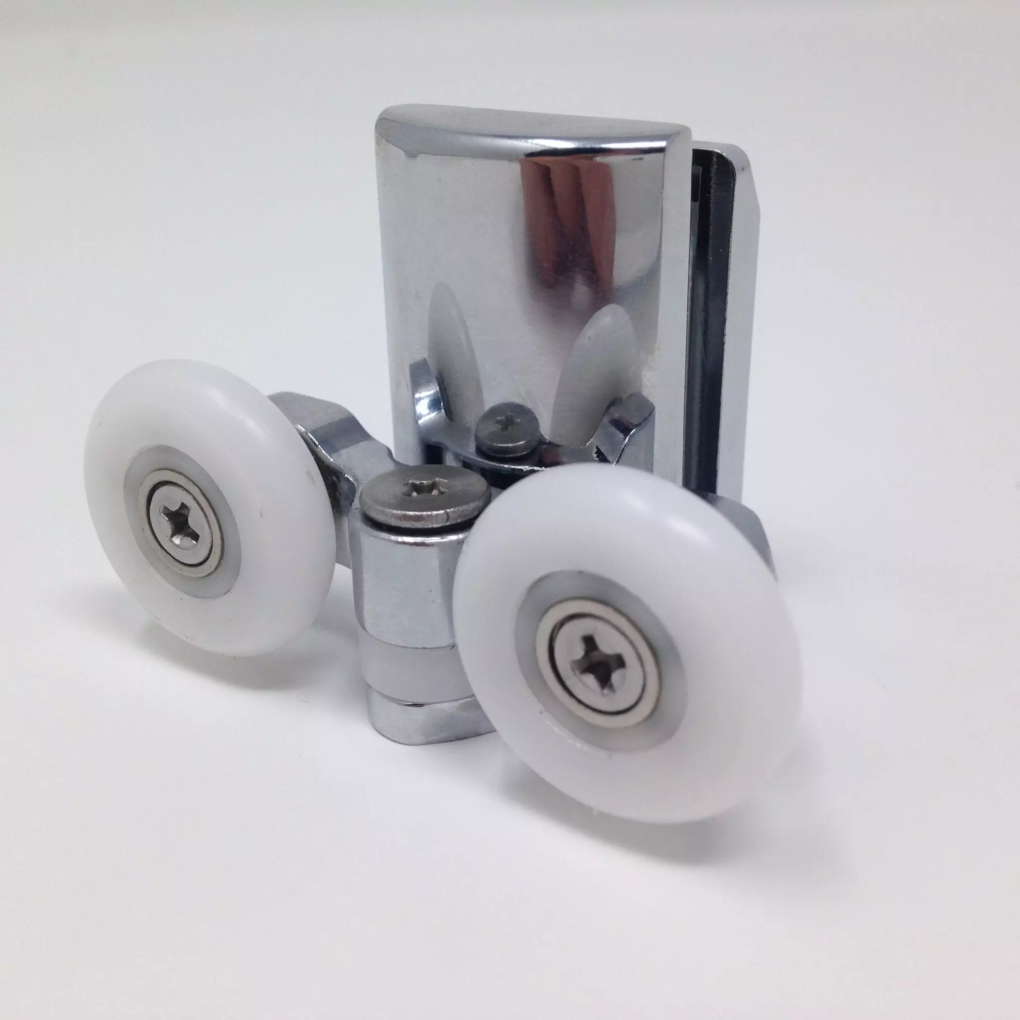 Roulette double basse pour porte coulissante de cabine de douche. Vendues par lot de 2, ces roulettes se composent d’un corps en laiton ou en alliage de zinc et d’éléments de soutien en plastique type ABS. Le bandage de la roulette est en téflon, recouvrant un roulement à billes étanche en acier inoxydable. Le choix et la qualité des matériaux employés offrent une utilisation optimale de confort, limitant ainsi le frottement et le bruit lors de la manipulation de la porte.