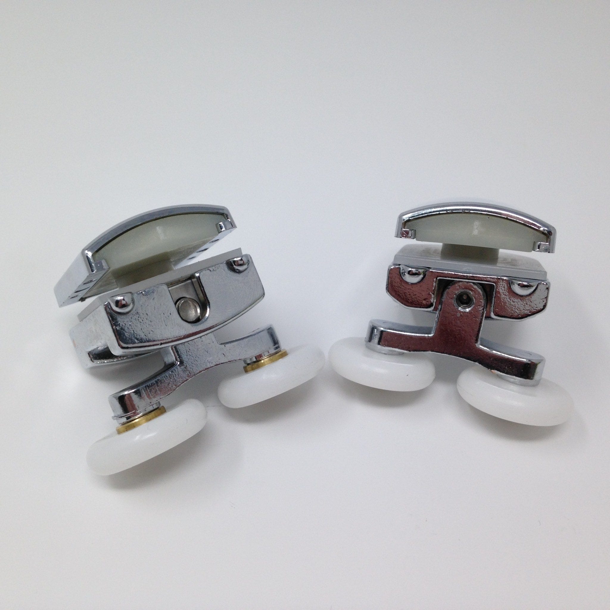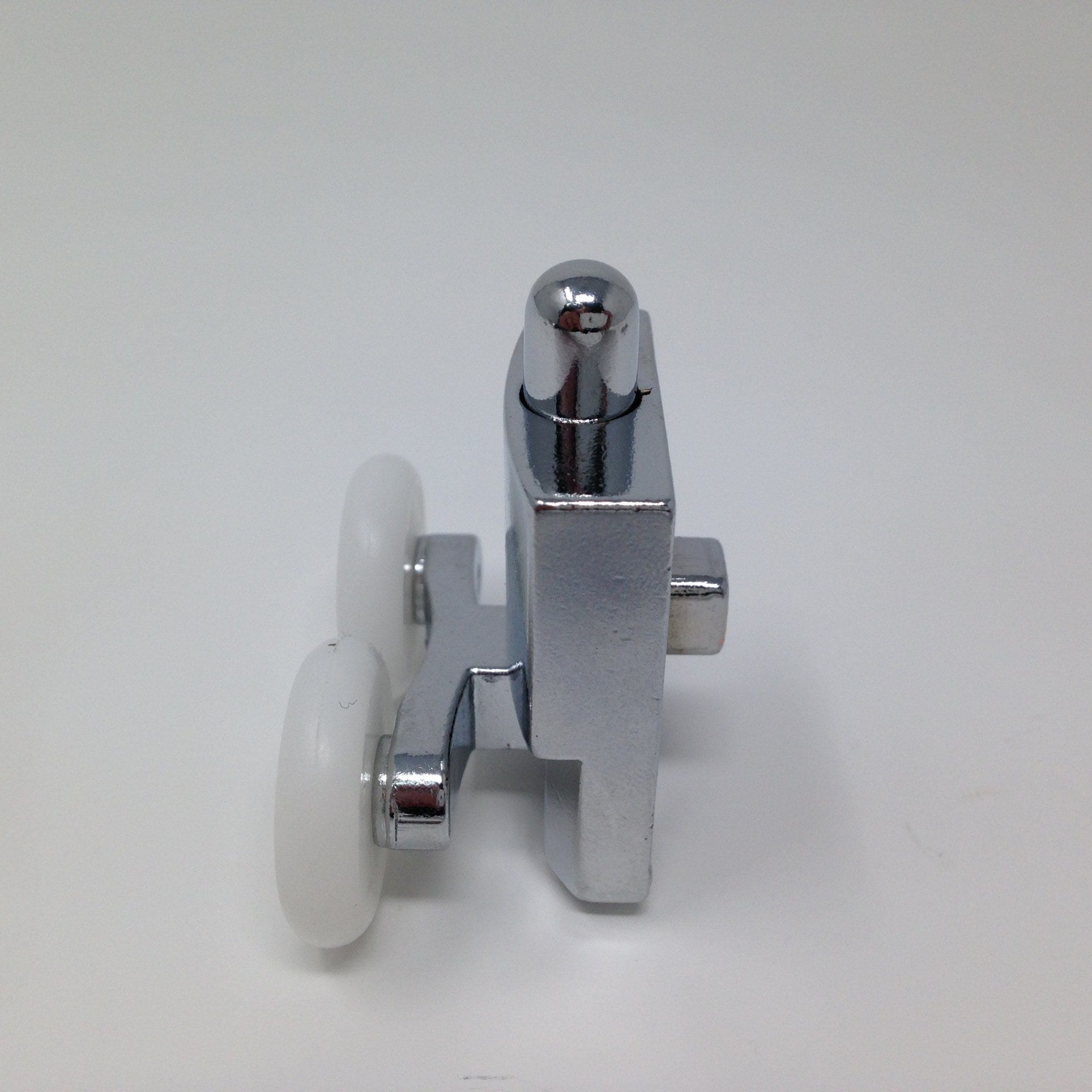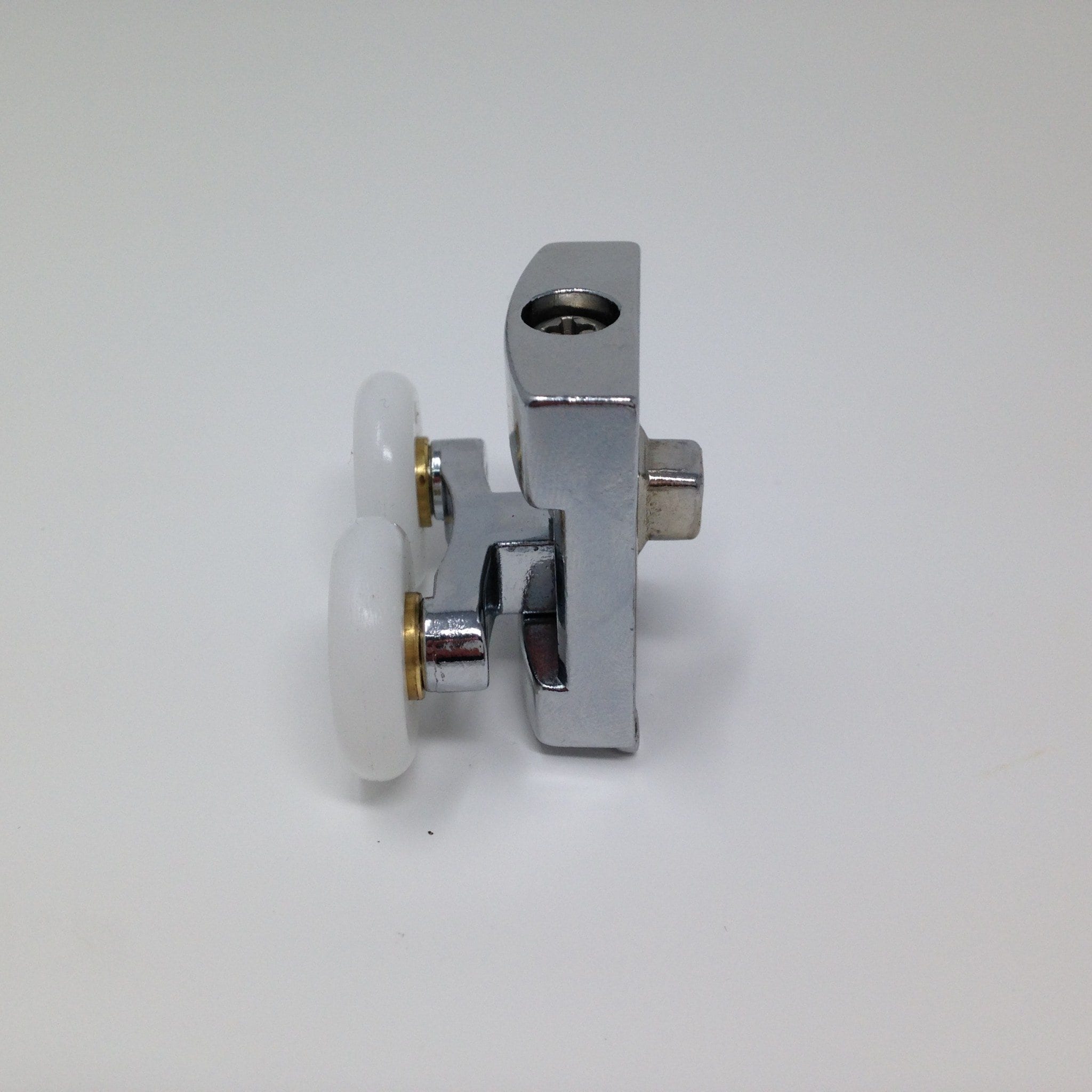 Roulette double haute et basse pour porte coulissante de cabine de douche. Vendues par lot de 4, ces roulettes se composent d’un corps en laiton ou en alliage de zinc et d’éléments de soutien en plastique type ABS. Le bandage de la roulette est en téflon, recouvrant un roulement à billes étanche en acier inoxydable. Le choix et la qualité des matériaux employés offrent une utilisation optimale de confort, limitant ainsi le frottement et le bruit lors de la manipulation de la porte.