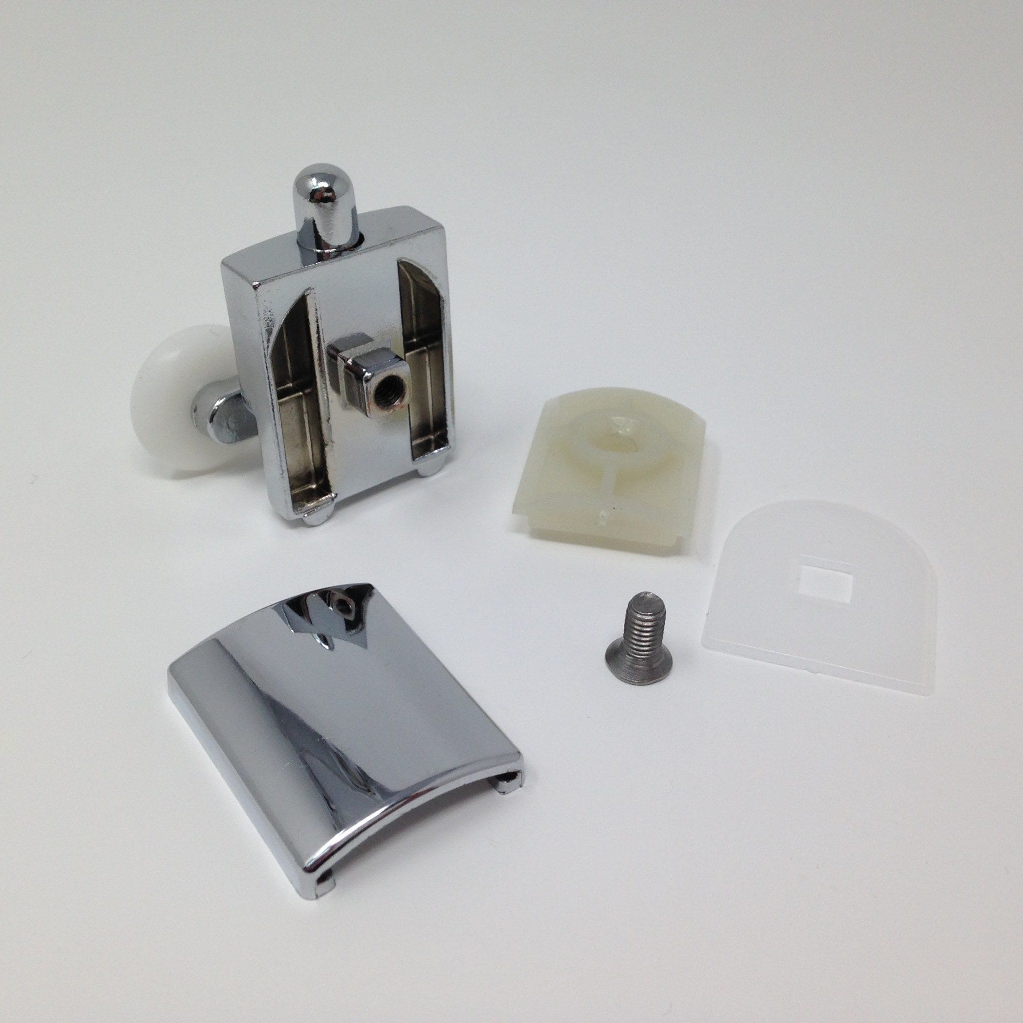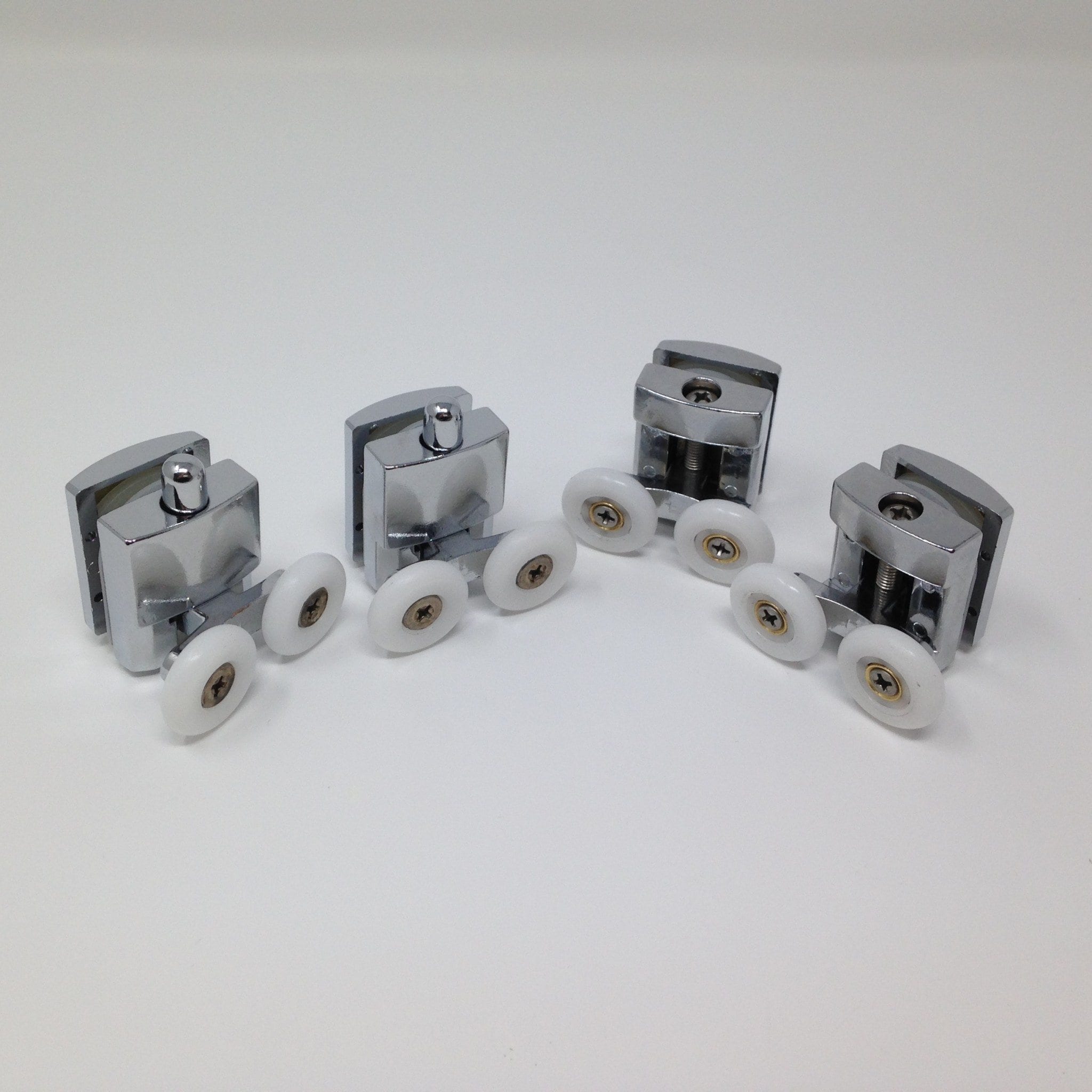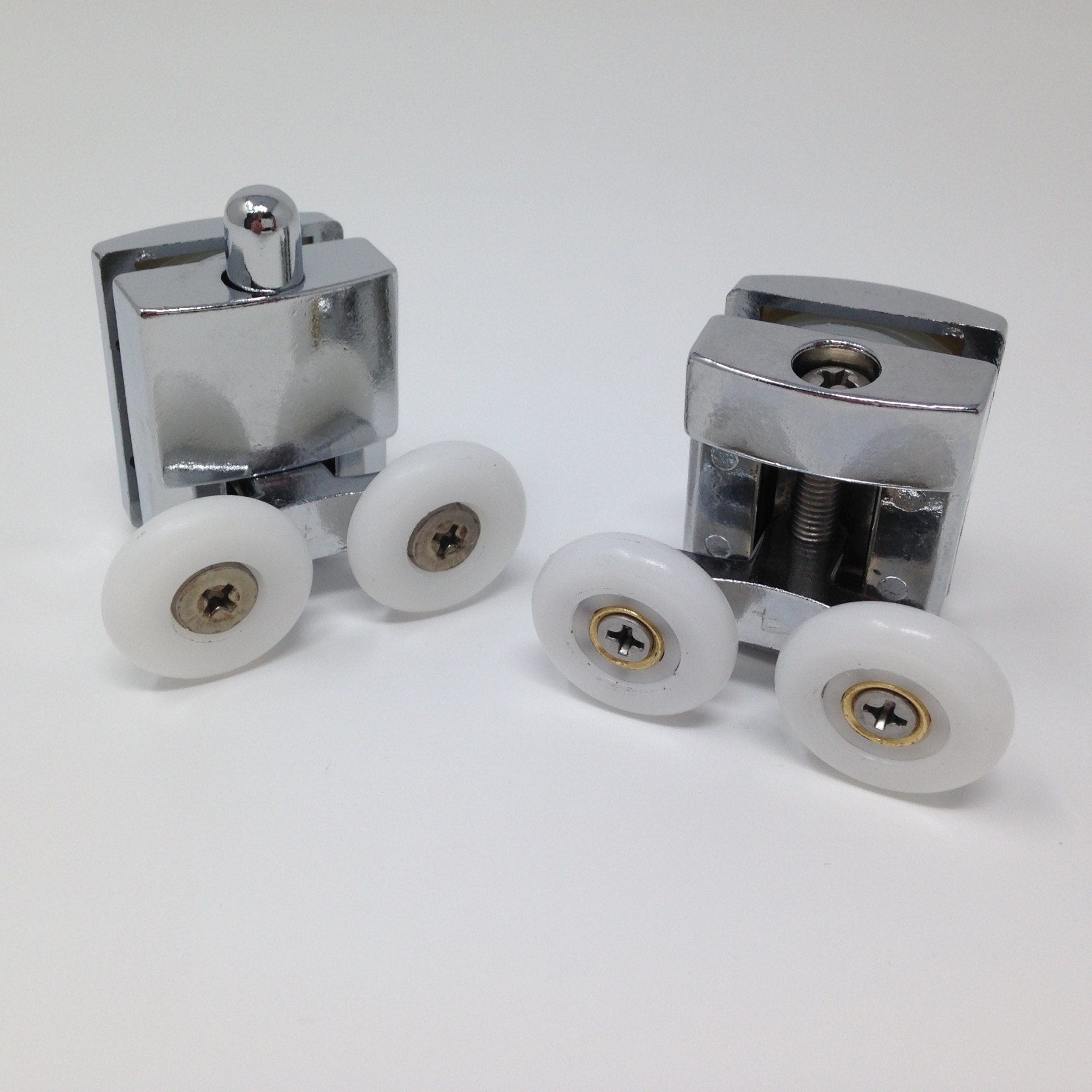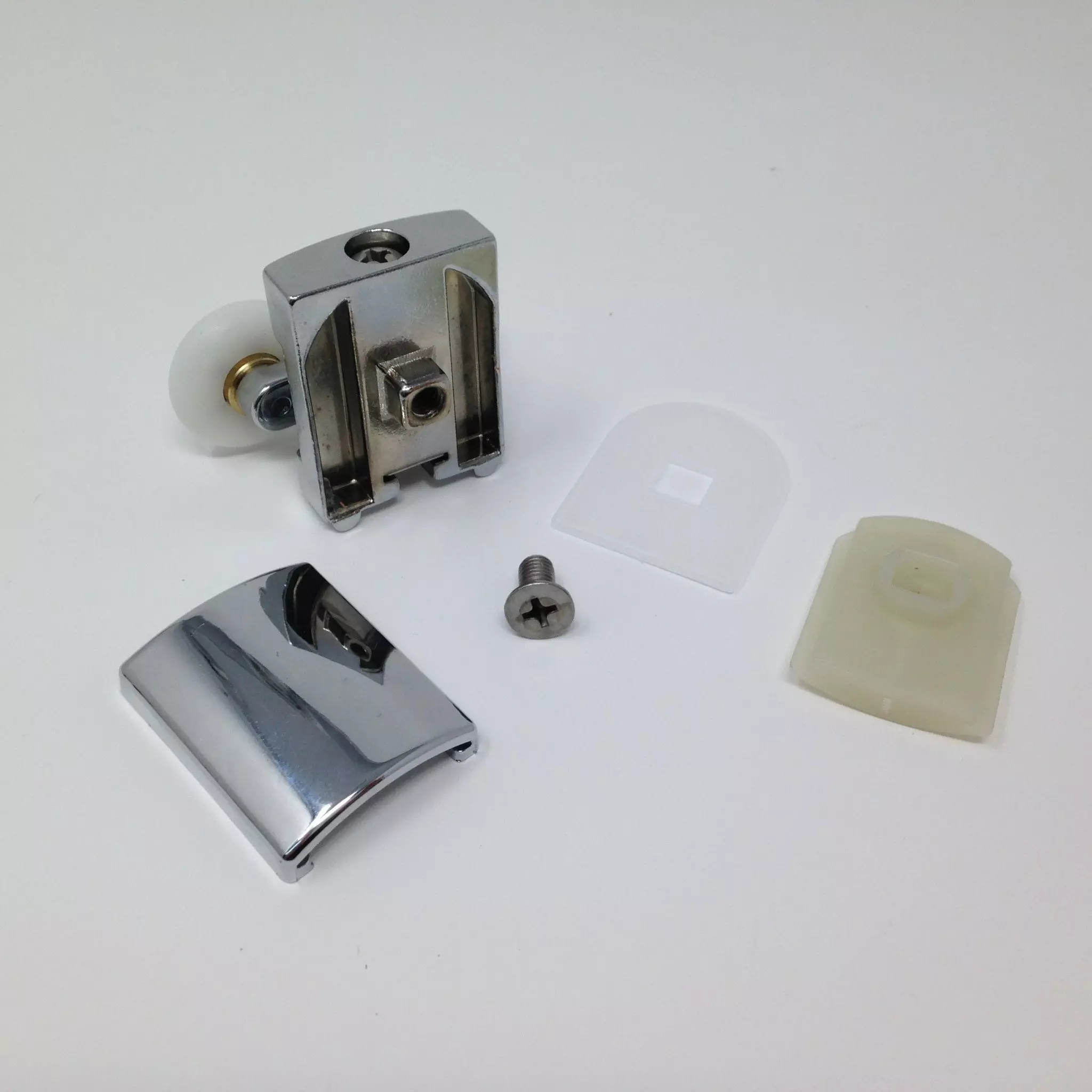 Roulette double haute et basse pour porte coulissante de cabine de douche. Vendues par lot de 4, ces roulettes se composent d’un corps en laiton ou en alliage de zinc et d’éléments de soutien en plastique type ABS. Le bandage de la roulette est en téflon, recouvrant un roulement à billes étanche en acier inoxydable. Le choix et la qualité des matériaux employés offrent une utilisation optimale de confort, limitant ainsi le frottement et le bruit lors de la manipulation de la porte.