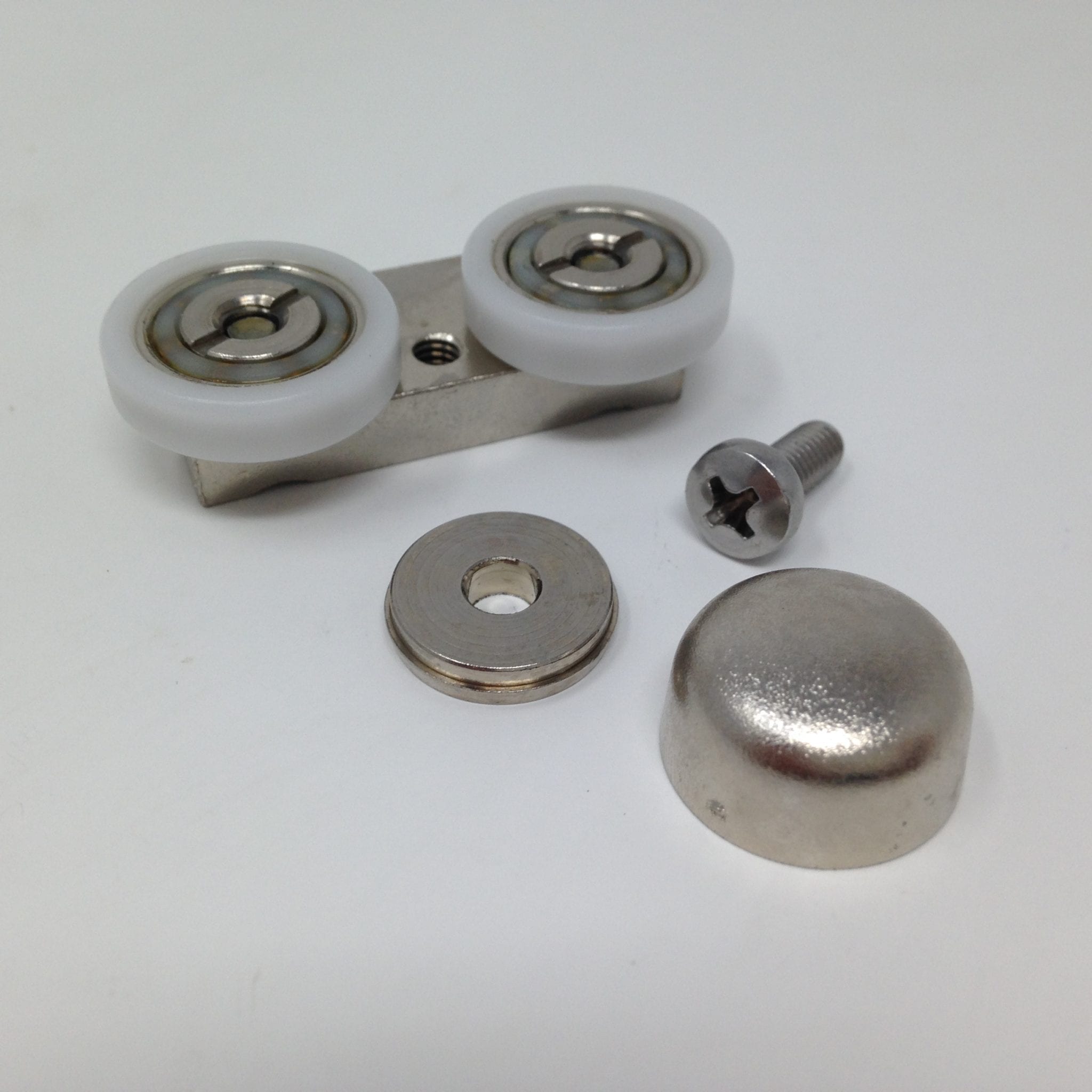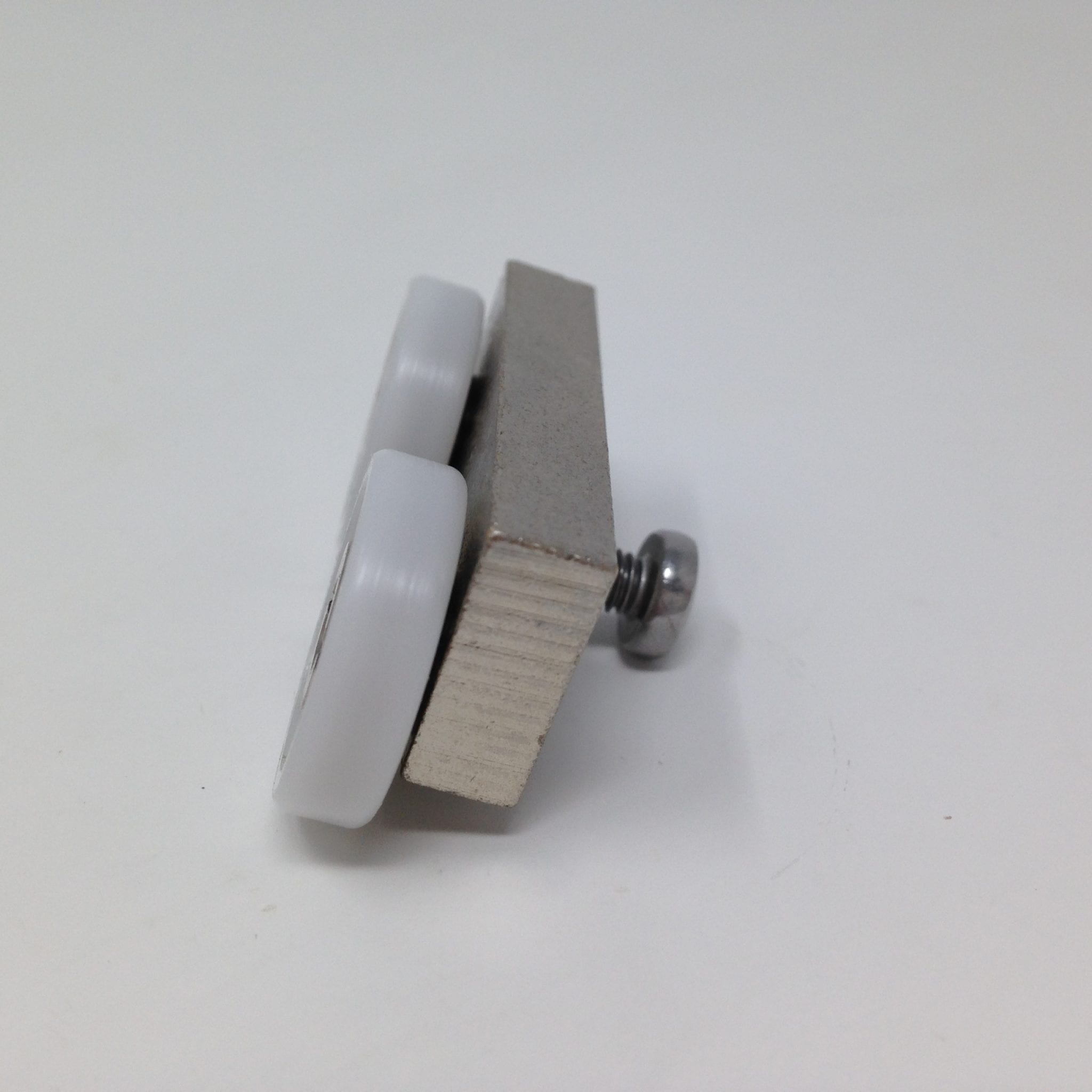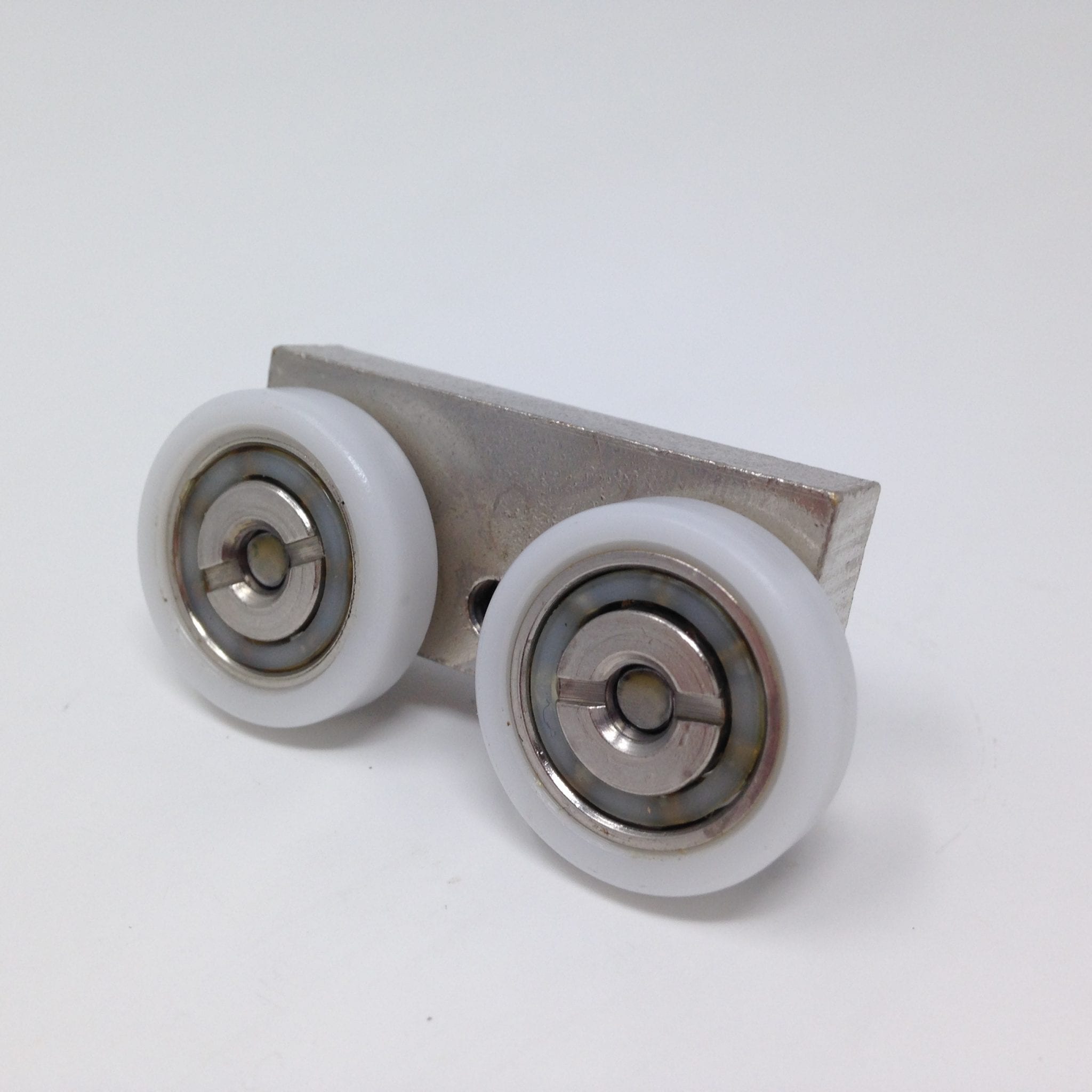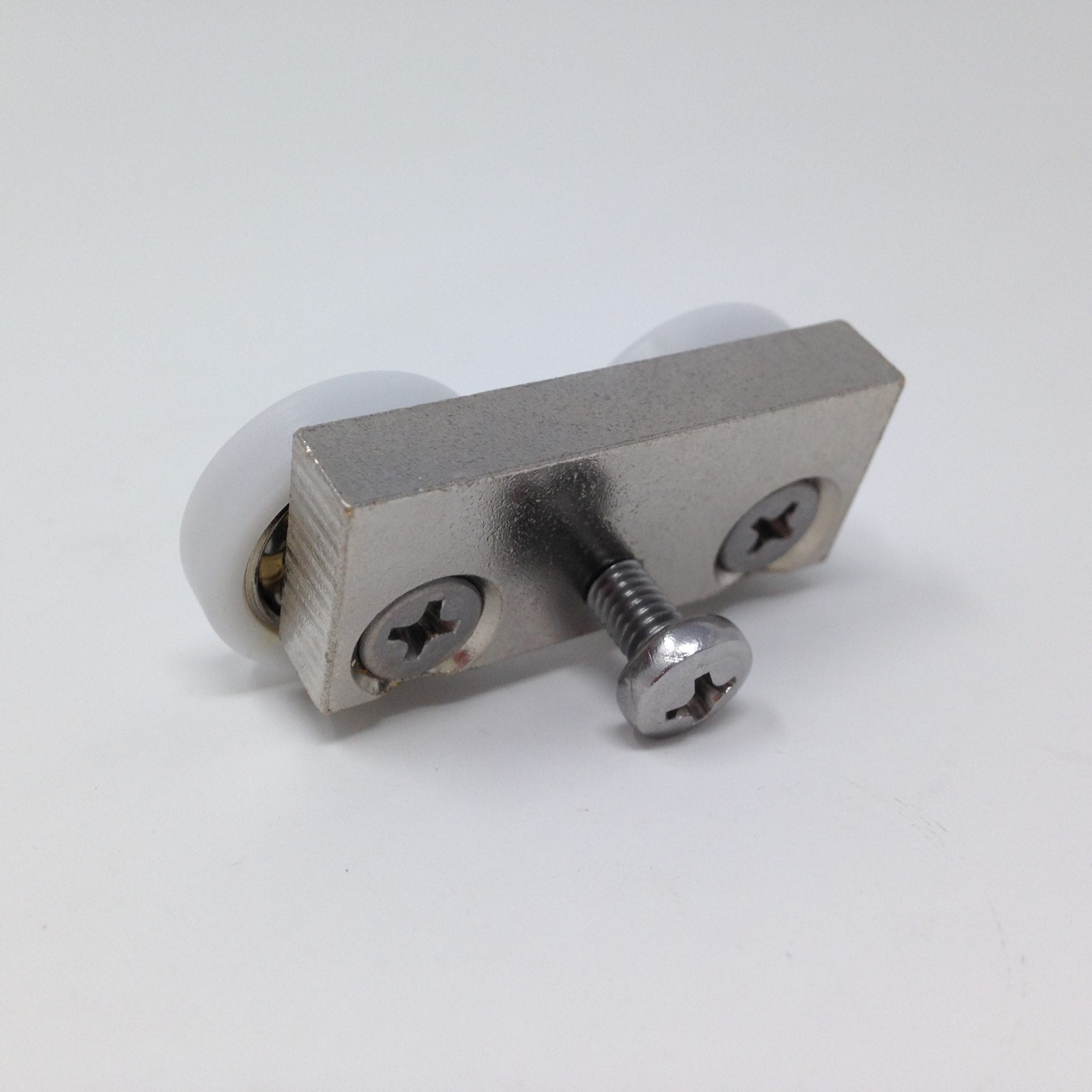 Roulette double pour porte coulissante de cabine de douche. Vendues à l’unité, cette roulette se compose d’un corps en laiton et d’éléments de soutien en plastique type ABS. Le bandage de la roulette est en téflon, recouvrant un roulement à billes étanche en acier inoxydable. Le choix et la qualité des matériaux employés offrent une utilisation optimale de confort, limitant ainsi le frottement et le bruit lors de la manipulation de la porte.