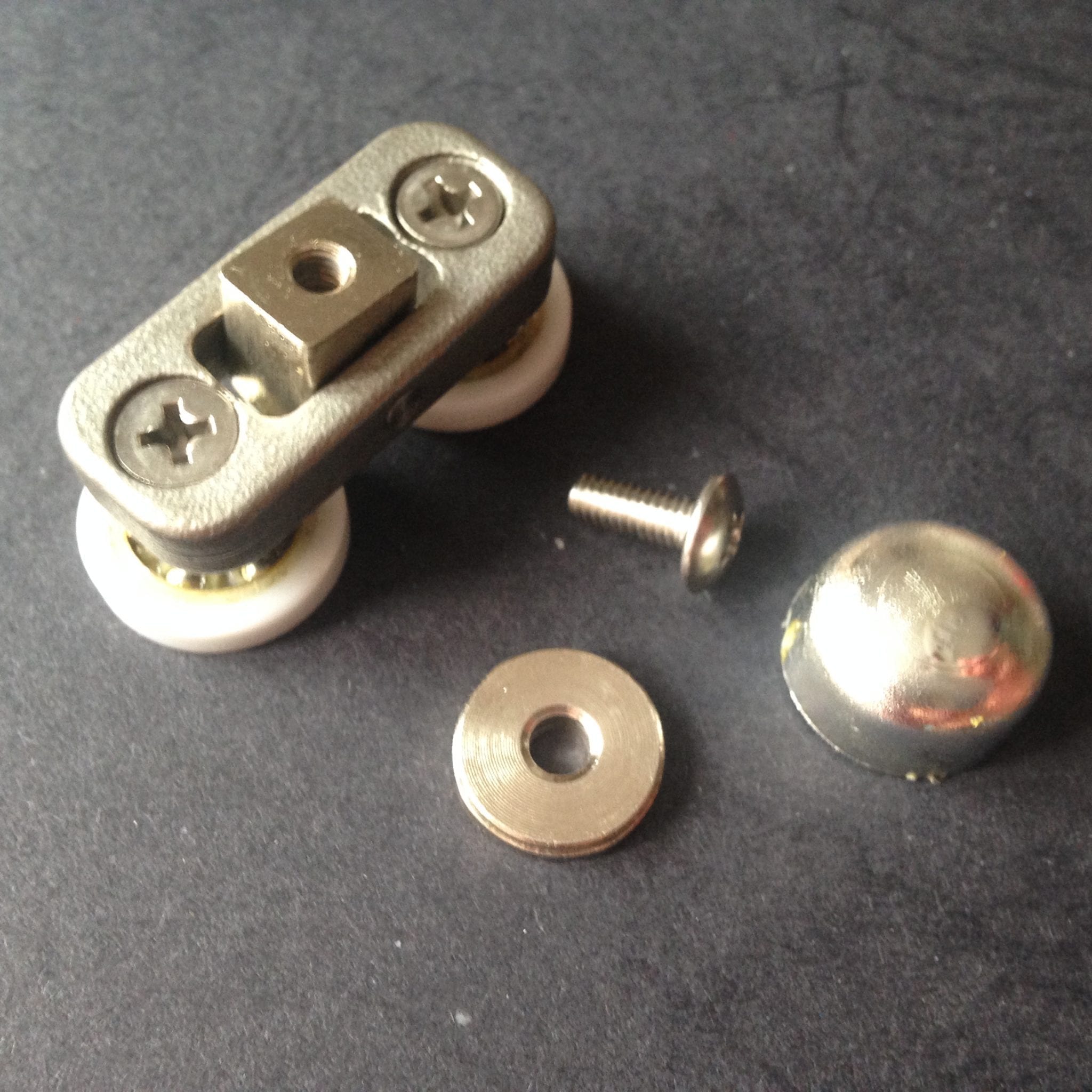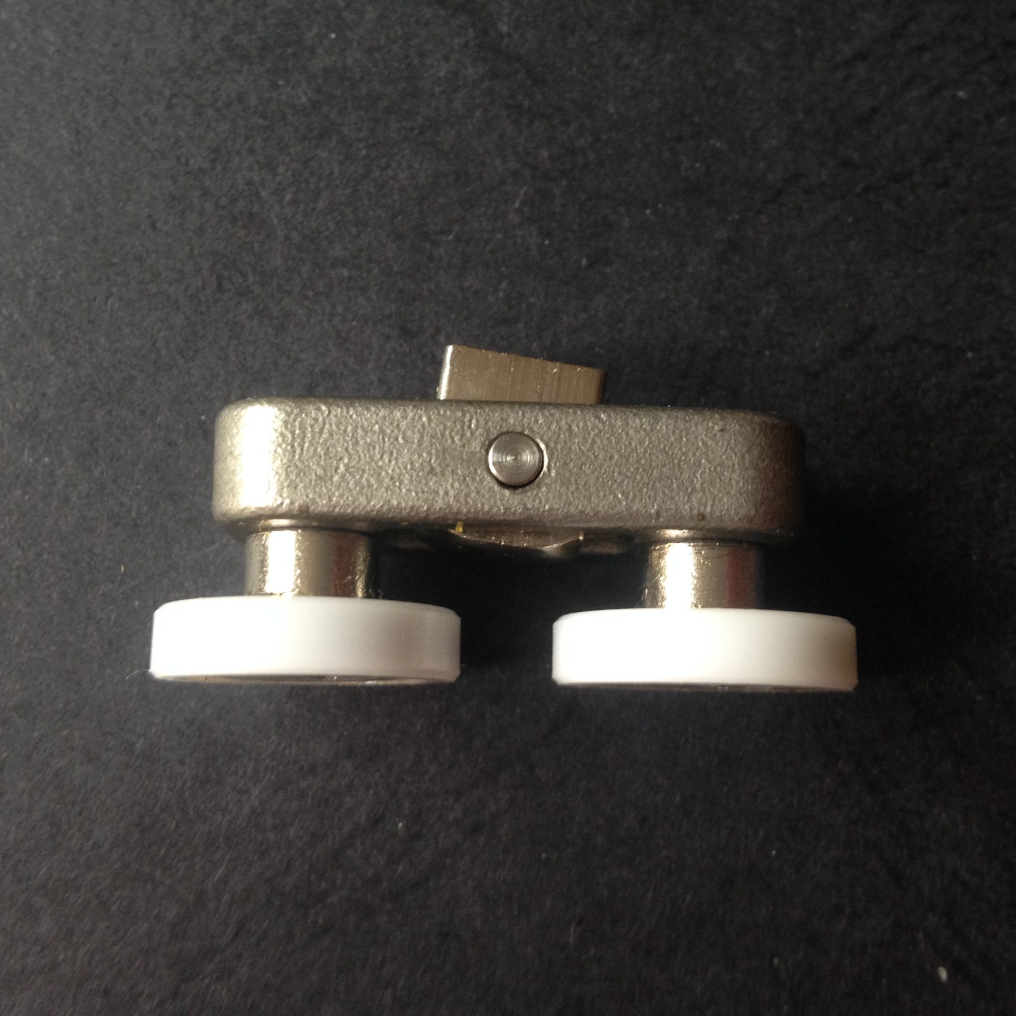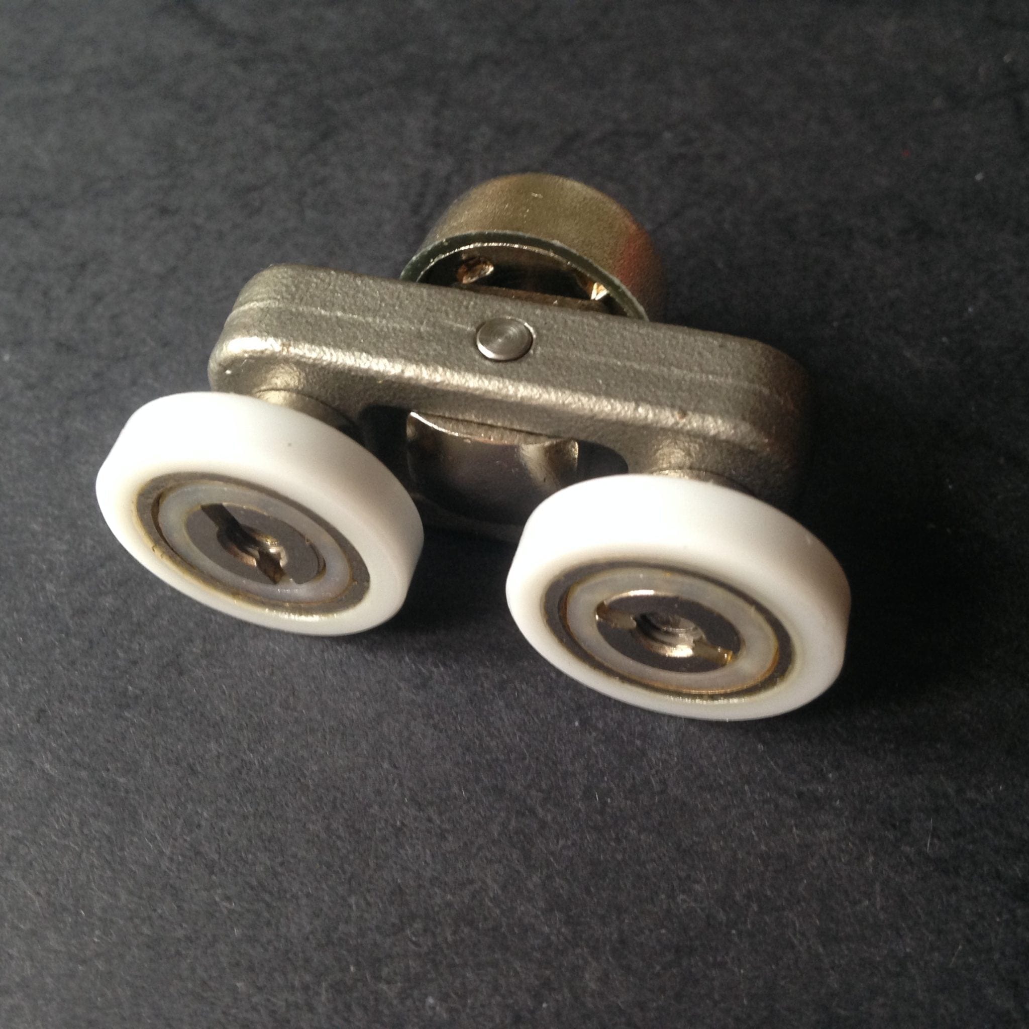 Roulette double pour porte coulissante de cabine de douche. Vendues à l’unité, cette roulette se compose d’un corps en laiton et d’éléments de soutien en plastique type ABS. Le bandage de la roulette est en téflon, recouvrant un roulement à billes étanche en acier inoxydable. Le choix et la qualité des matériaux employés offrent une utilisation optimale de confort, limitant ainsi le frottement et le bruit lors de la manipulation de la porte.
