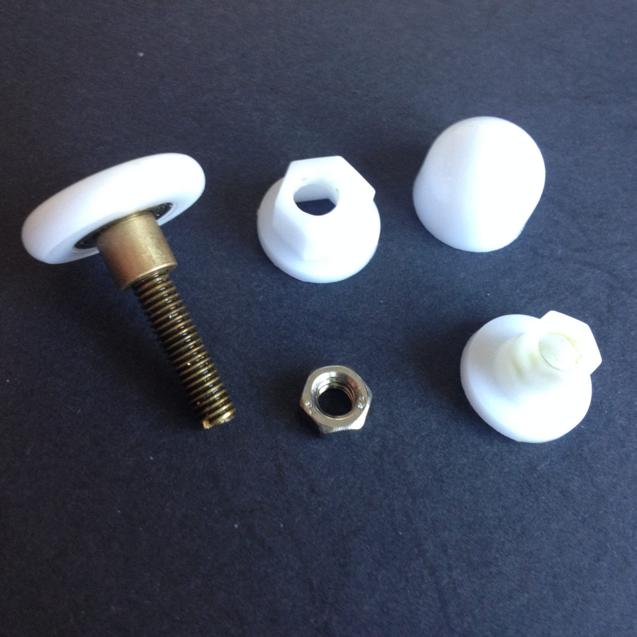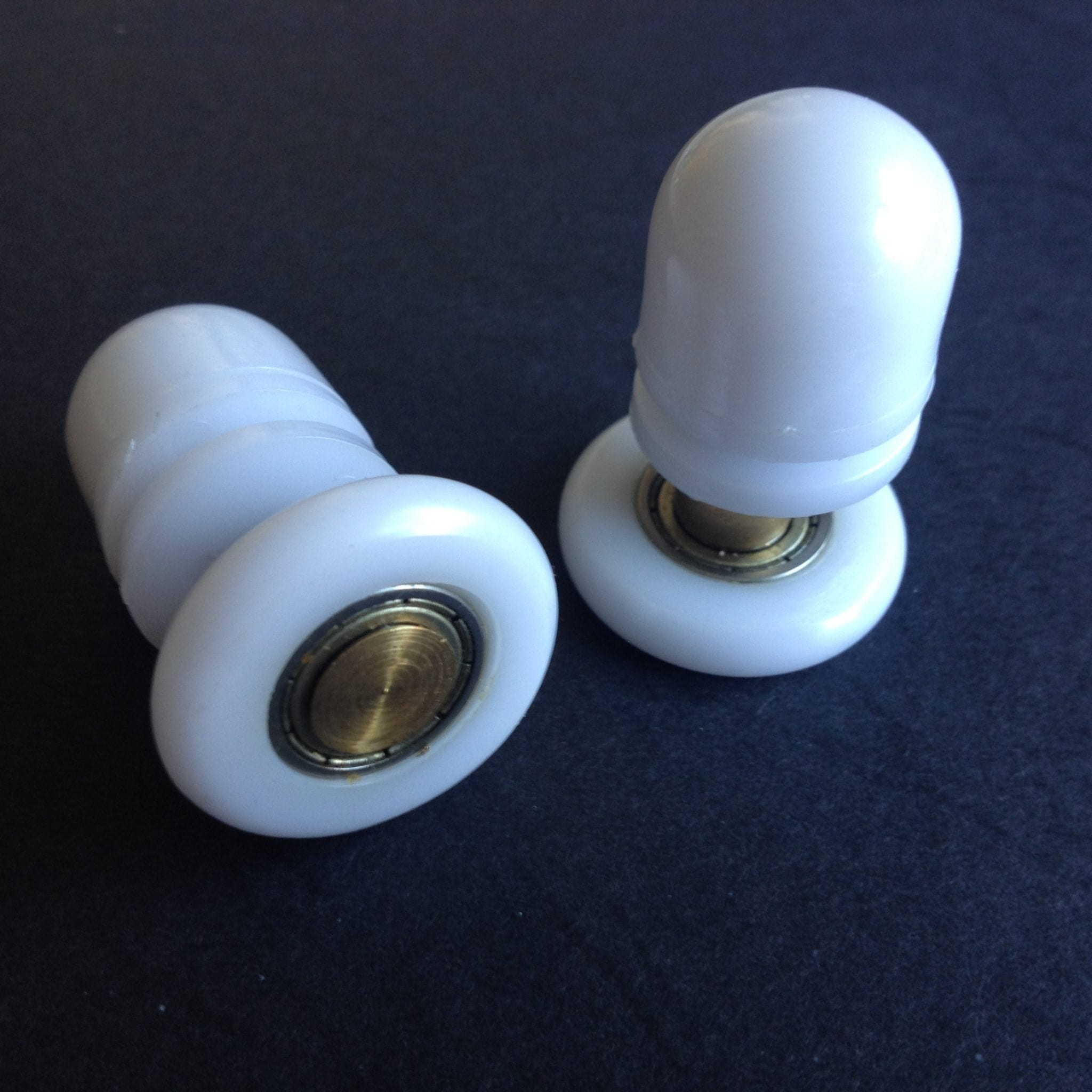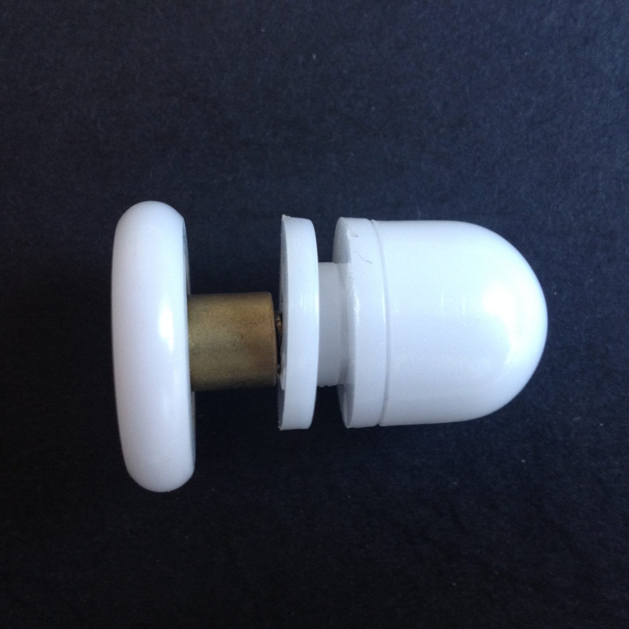 Roulette excentrique simple pour porte coulissante de cabine de douche. Vendues par lot de 4, ces roulettes se composent d’un corps en laiton ou en alliage de zinc et d’éléments de soutien en plastique type ABS. Le bandage de la roulette est en téflon, recouvrant un roulement à billes étanche en acier inoxydable. Le choix et la qualité des matériaux employés offrent une utilisation optimale de confort, limitant ainsi le frottement et le bruit lors de la manipulation de la porte.
