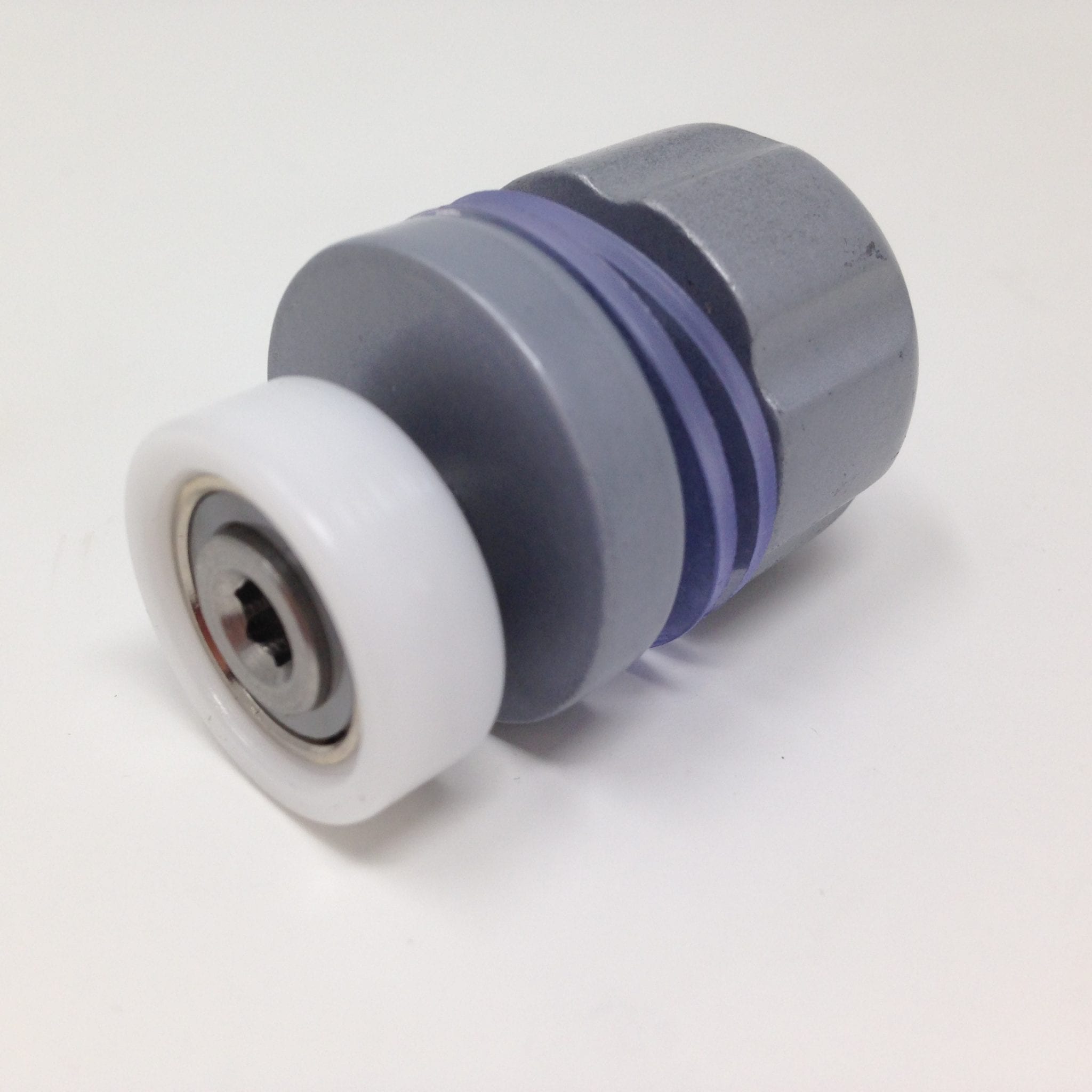 Roulette excentrique simple pour porte coulissante de cabine de douche. Vendue à l’unité, cette roulette se compose d’un corps en laiton ou en alliage de zinc et d’éléments de soutien en plastique type ABS. Le bandage de la roulette est en téflon, recouvrant un roulement à billes étanche en acier inoxydable. Le choix et la qualité des matériaux employés offrent une utilisation optimale de confort, limitant ainsi le frottement et le bruit lors de la manipulation de la porte.