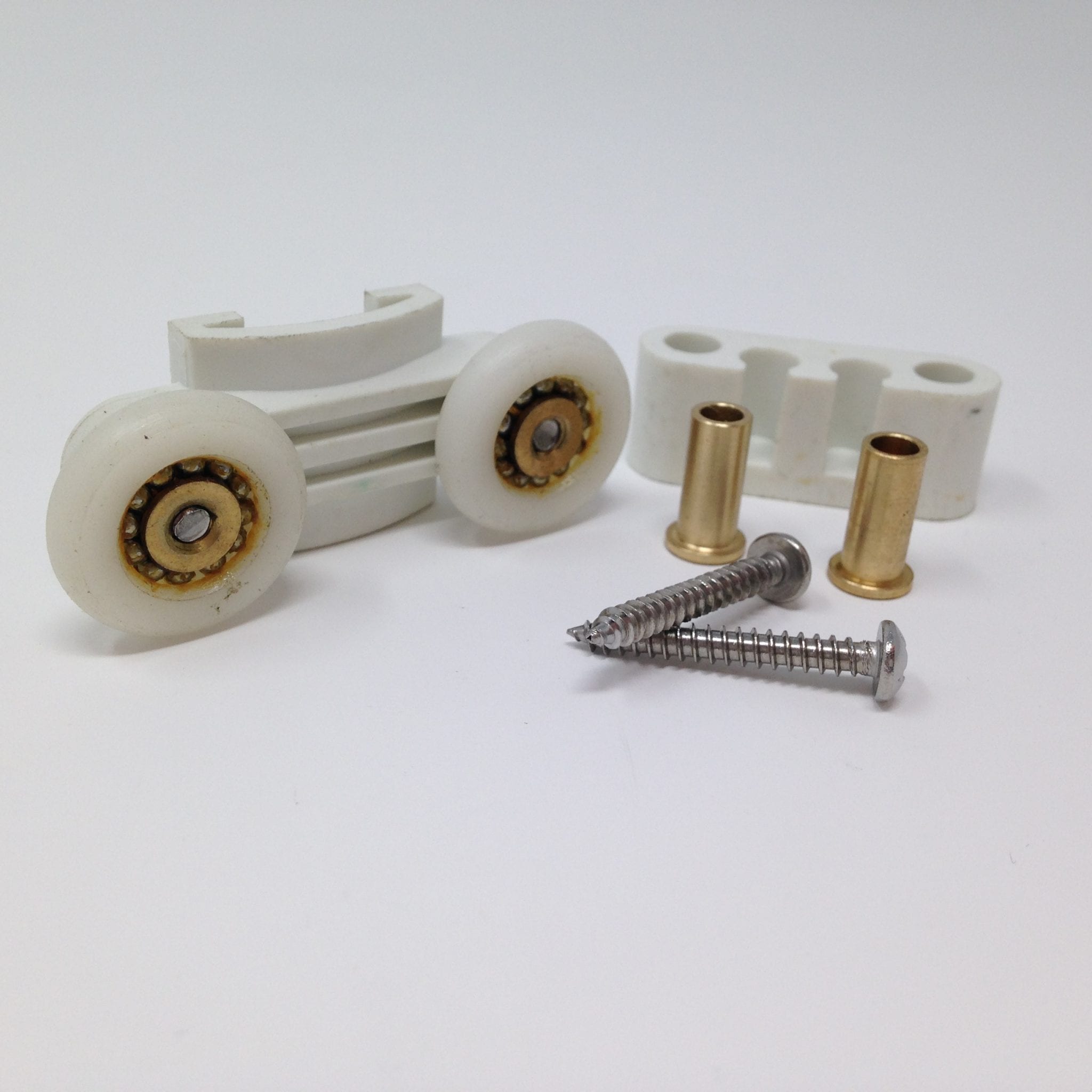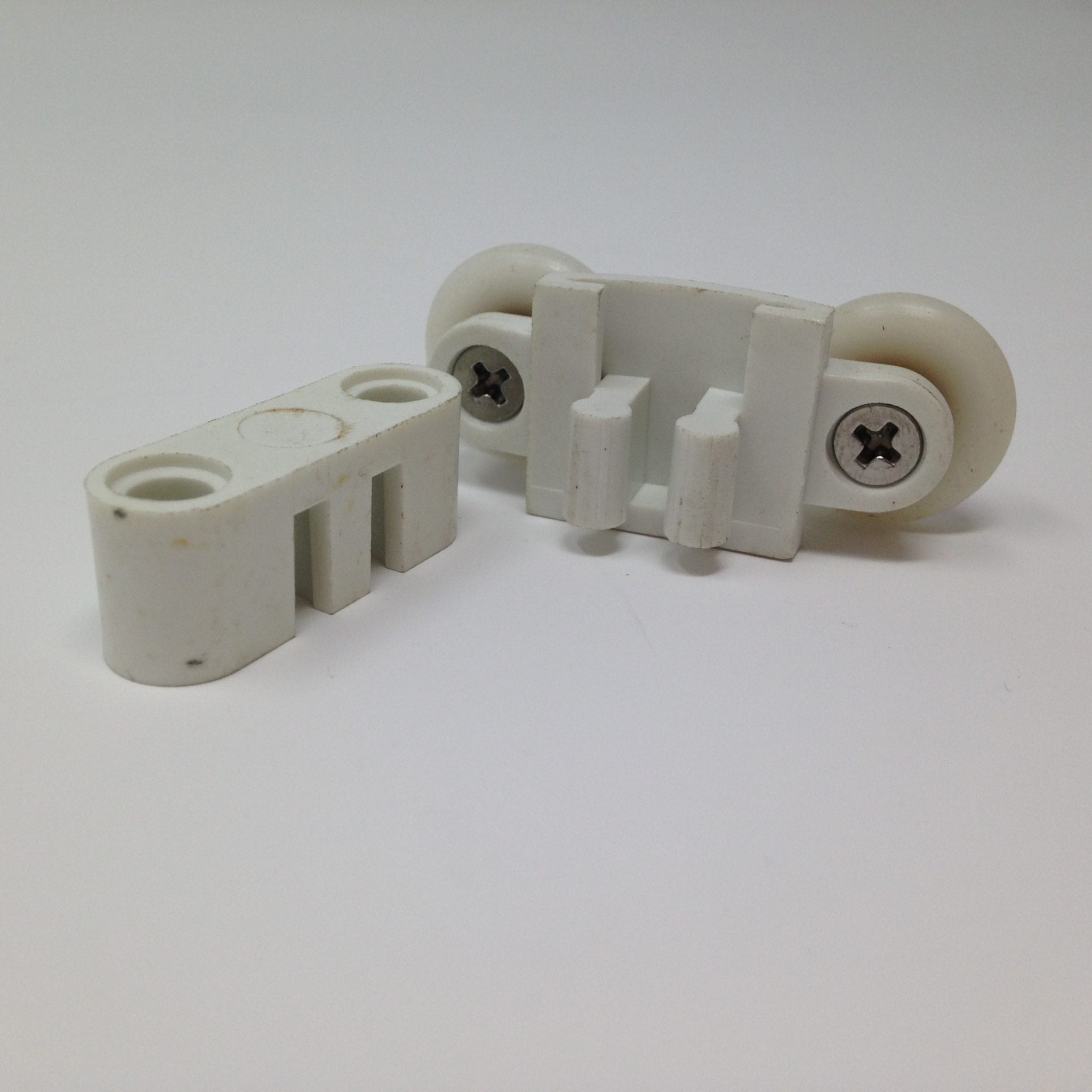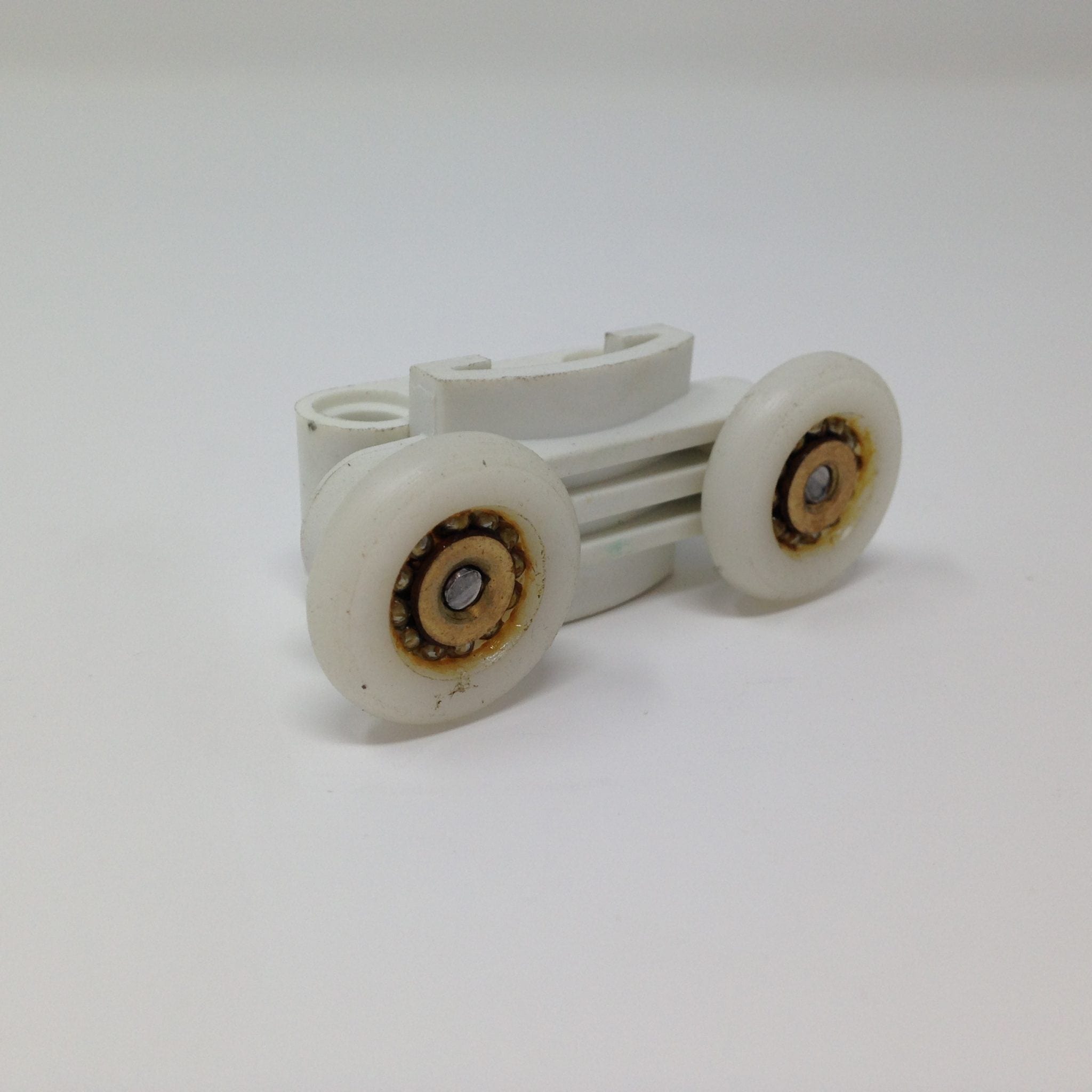 Roulette double haute pour porte coulissante de cabine de douche. Vendue à l’unité, cette roulette se compose d’un corps en laiton et d’éléments de soutien en plastique de type ABS. Le bandage de la roulette est en téflon, recouvrant un roulement à billes étanche en acier inoxydable. Le choix et la qualité des matériaux employés offrent une utilisation optimale de confort, limitant ainsi le frottement et le bruit lors de la manipulation de la porte.