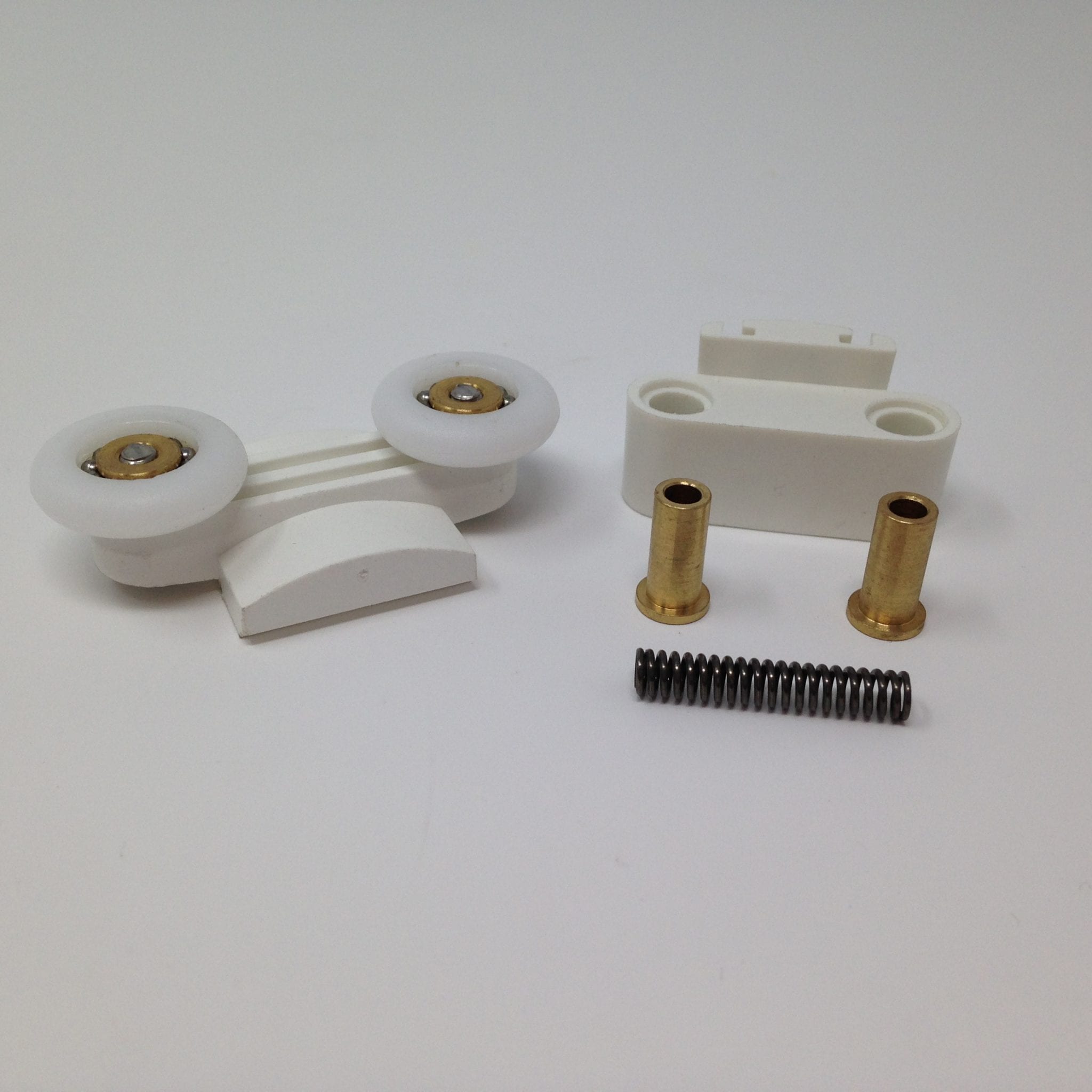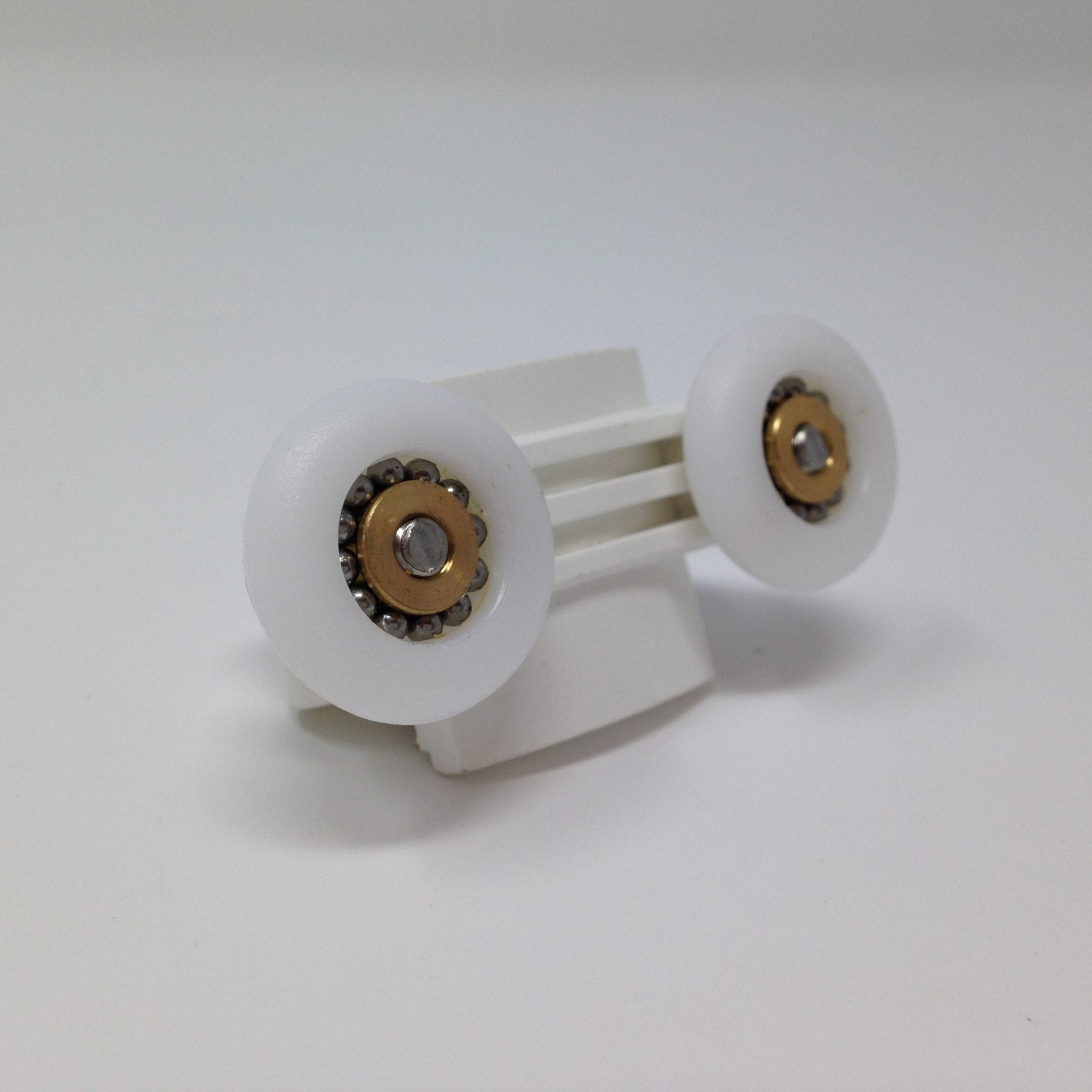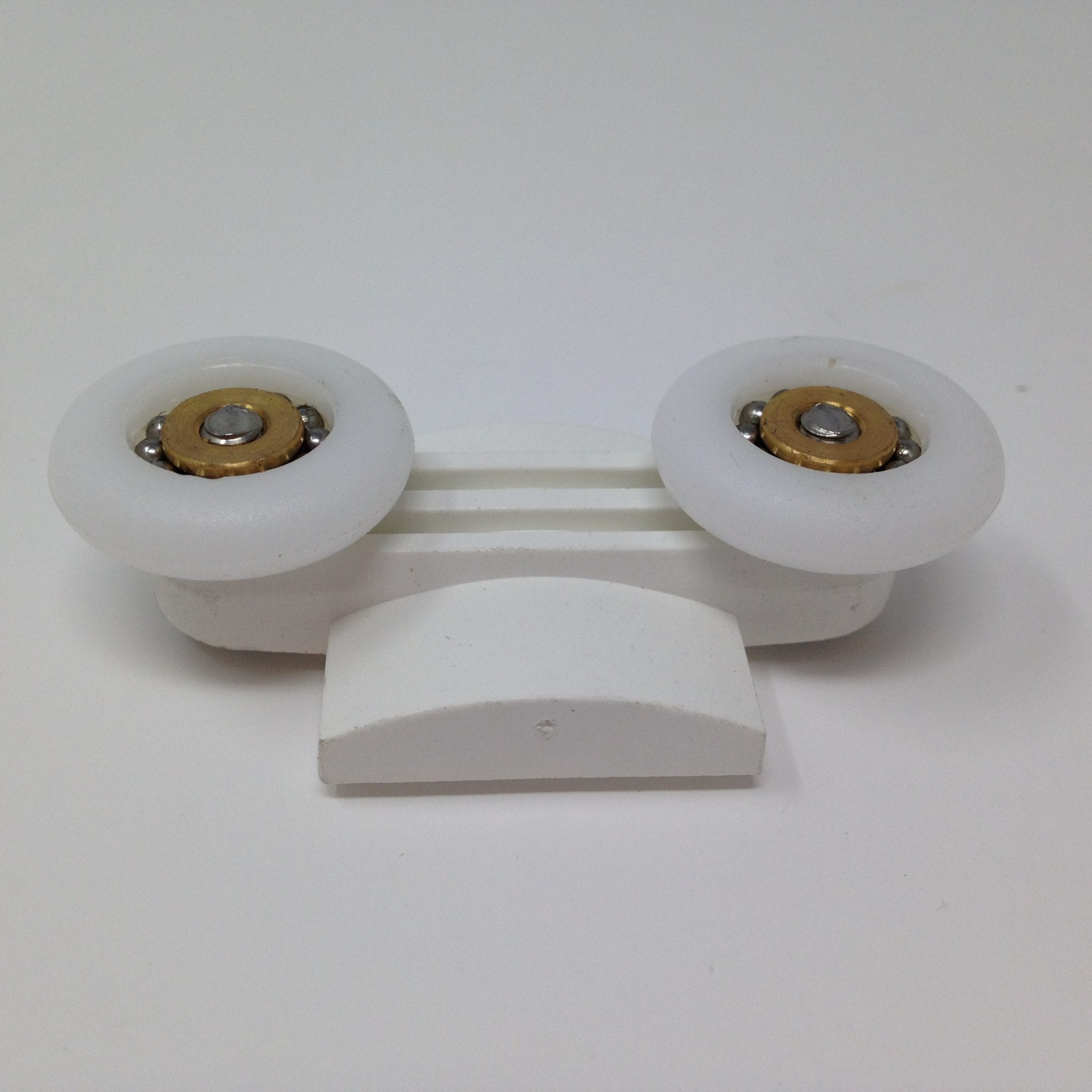 Roulette double basse pour porte coulissante de cabine de douche. Vendue à l’unité, cette roulette se compose d’un corps en laiton et d’éléments de soutien en plastique de type ABS. Le bandage de la roulette est en téflon, recouvrant un roulement à billes étanche en acier inoxydable. Le choix et la qualité des matériaux employés offrent une utilisation optimale de confort, limitant ainsi le frottement et le bruit lors de la manipulation de la porte.