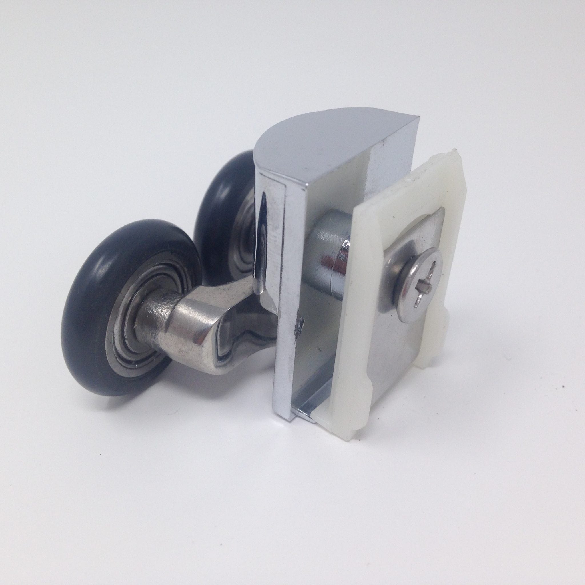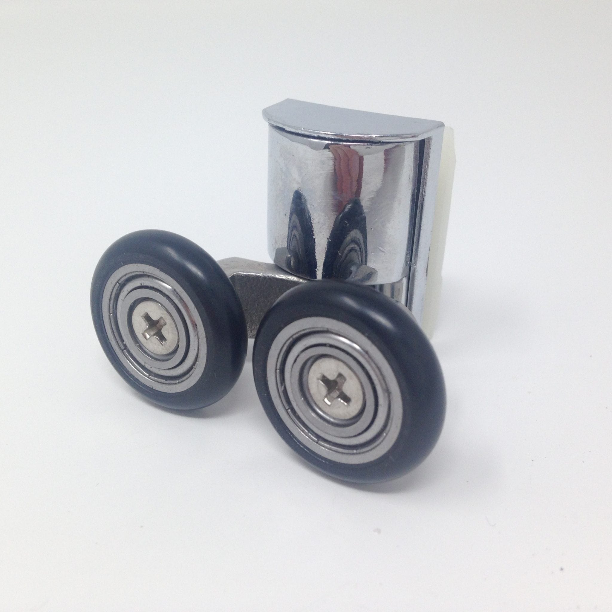 Roulette double pour porte coulissante de cabine de douche. Vendue à l’unité, cette roulette se compose d’un corps en laiton et d’éléments de soutien en plastique type ABS. Le bandage de la roulette est en téflon, recouvrant un roulement à billes étanche en acier inoxydable. Le choix et la qualité des matériaux employés offrent une utilisation optimale de confort, limitant ainsi le frottement et le bruit lors de la manipulation de la porte.