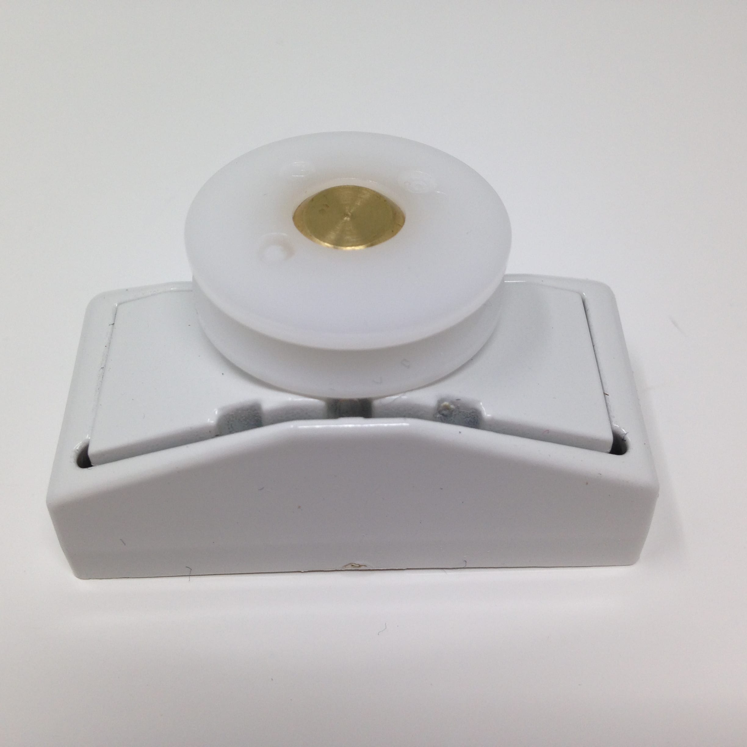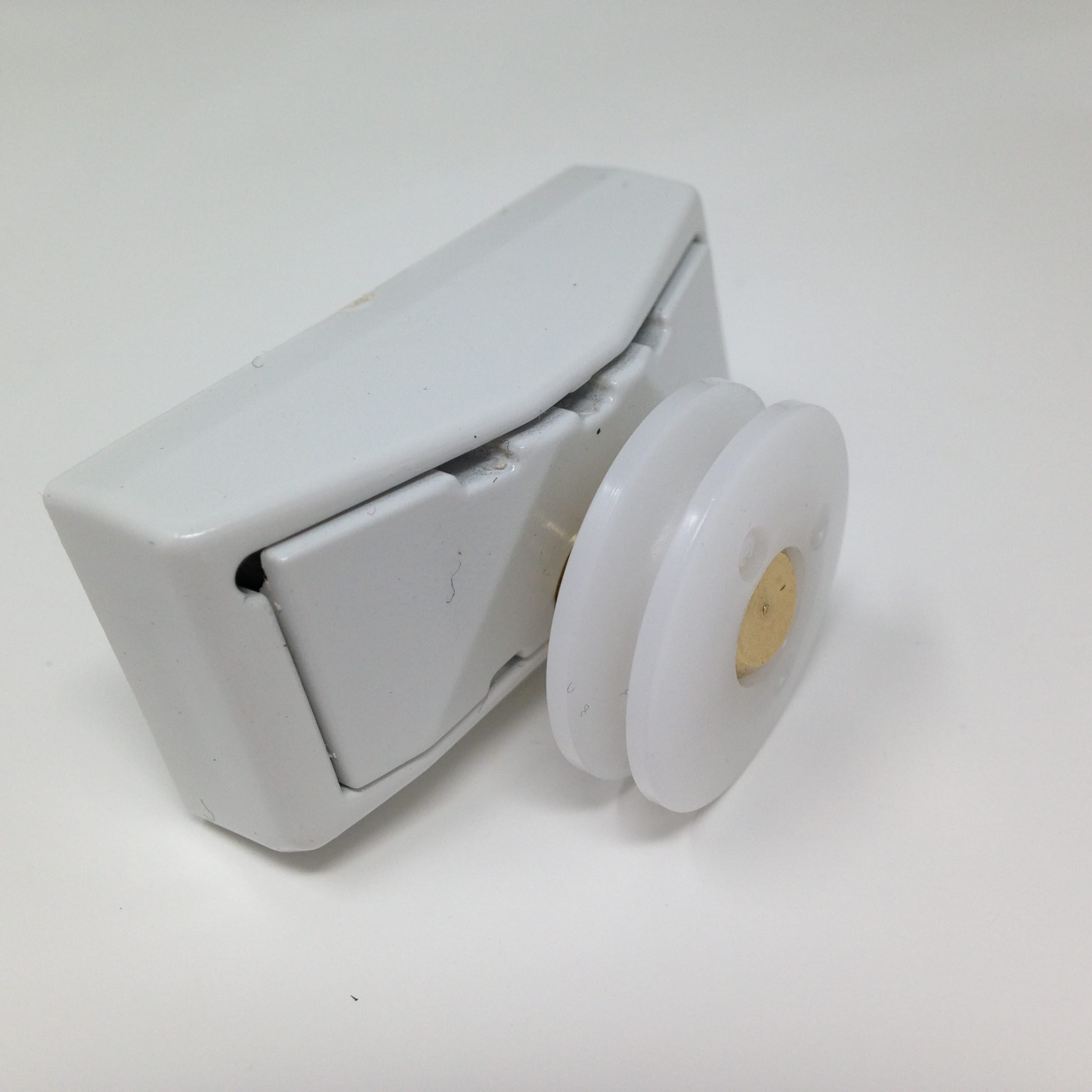 Roulette articulée pour porte coulissante de cabine de douche. Vendue à l’unité, cette roulette se compose d’un corps en laiton et d’éléments de soutien en plastique type ABS. Le bandage de la roulette est en téflon, recouvrant un roulement à billes étanche en acier inoxydable. Le choix et la qualité des matériaux employés offrent une utilisation optimale de confort, limitant ainsi le frottement et le bruit lors de la manipulation de la porte.