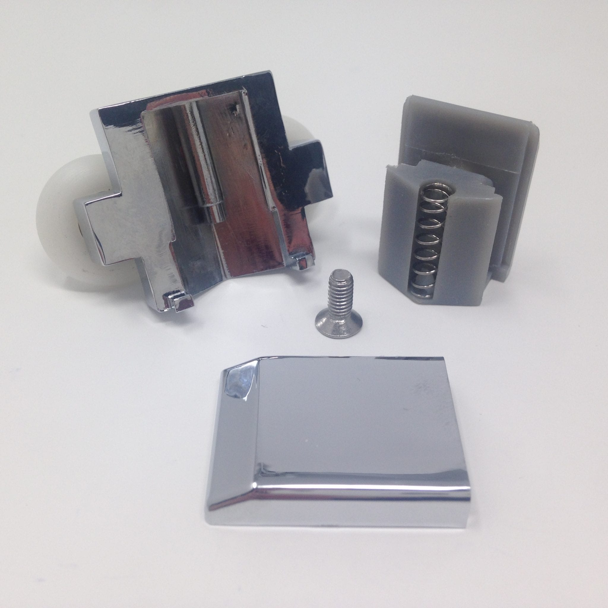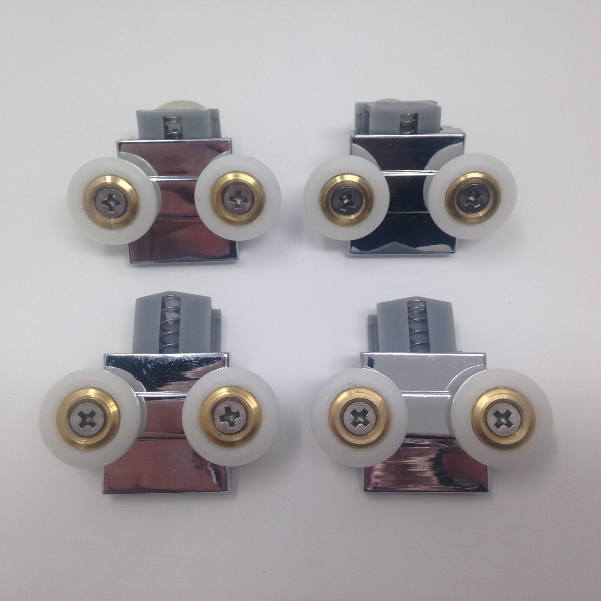 Vous achetez 4 roulettes doubles. Ce kit de roulettes intitulé “CLICK & CLEAN” se retrouve principalement sur les cabines de douche de la marque IDEAL STANDARD, modèle KUBO A et KUBO PSC2. Il permet à partir d’un simple clic de sortir la roulette de son rail et d’en faciliter le nettoyage.