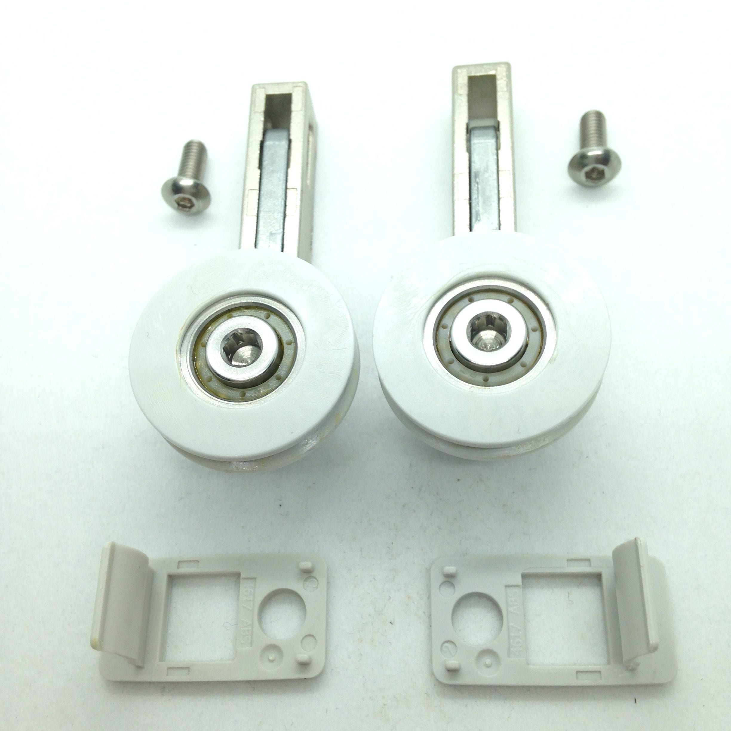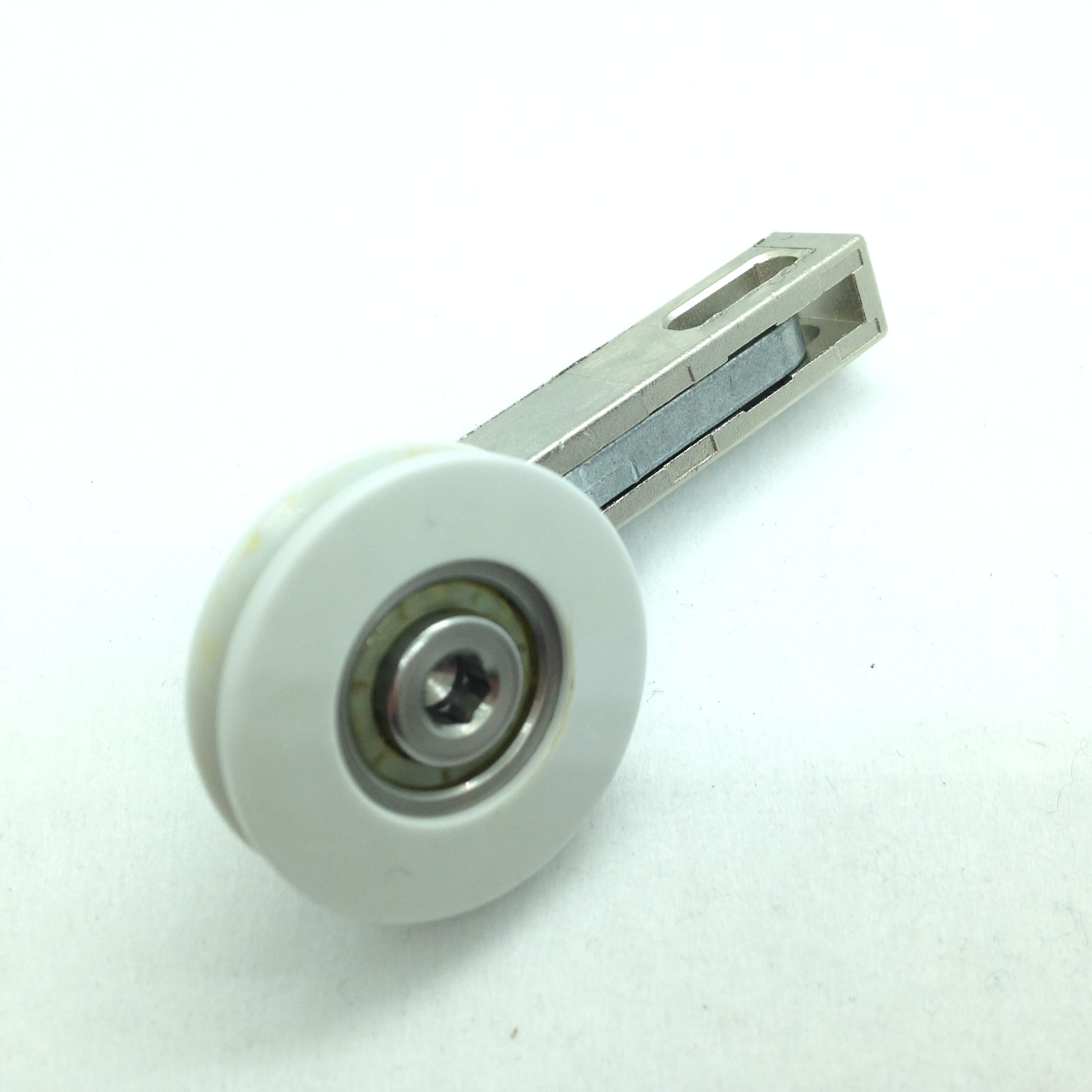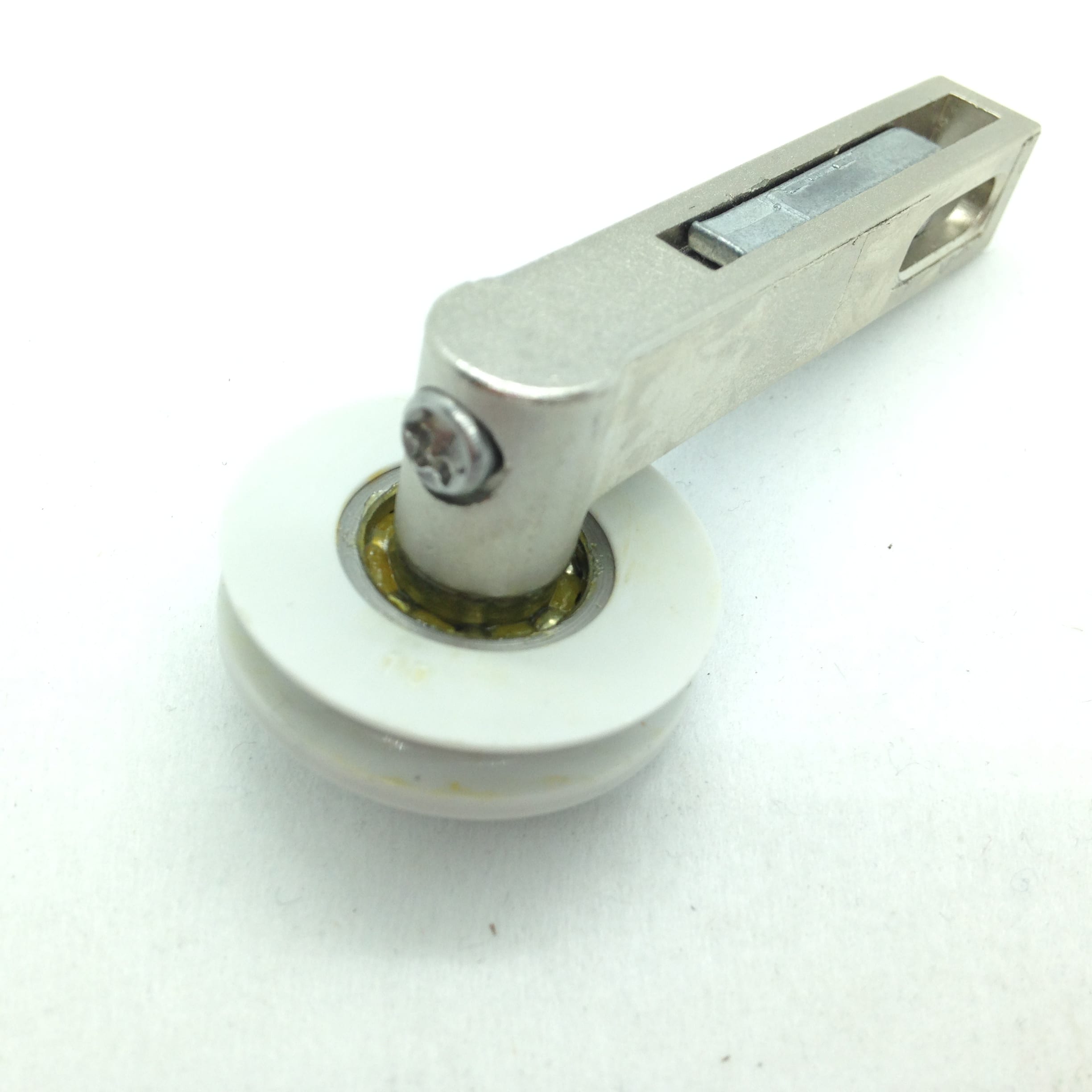 Roulette simple en U pour porte coulissante de cabine de douche. Vendue par lot de 2, ces roulettes se composent d’un corps en plastique type ABS. Le bandage de la roulette est également en plastique ABS, recouvrant un roulement à billes étanche en acier inoxydable. Le choix et la qualité des matériaux employés offrent une utilisation optimale de confort, limitant ainsi le frottement et le bruit lors de la manipulation de la porte.