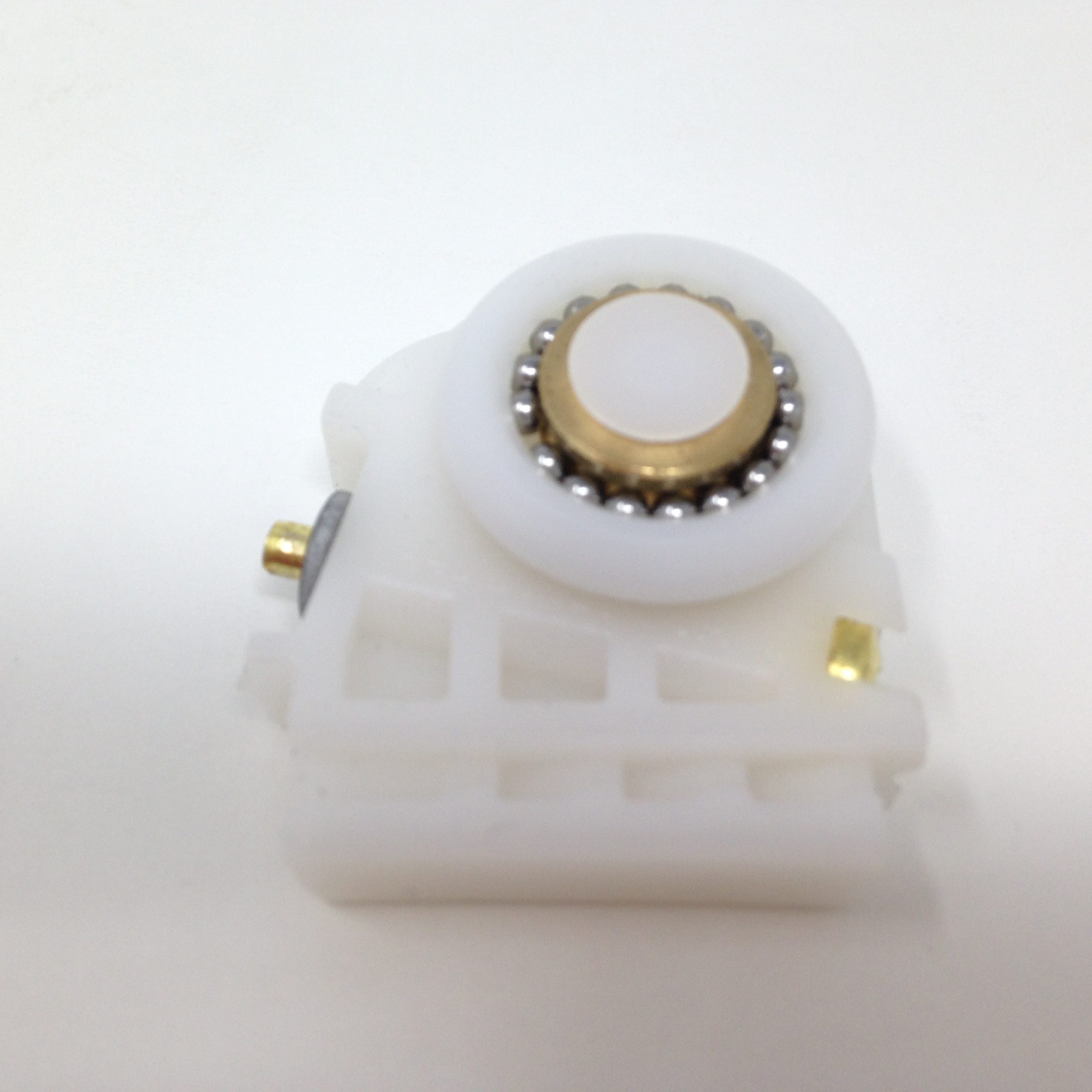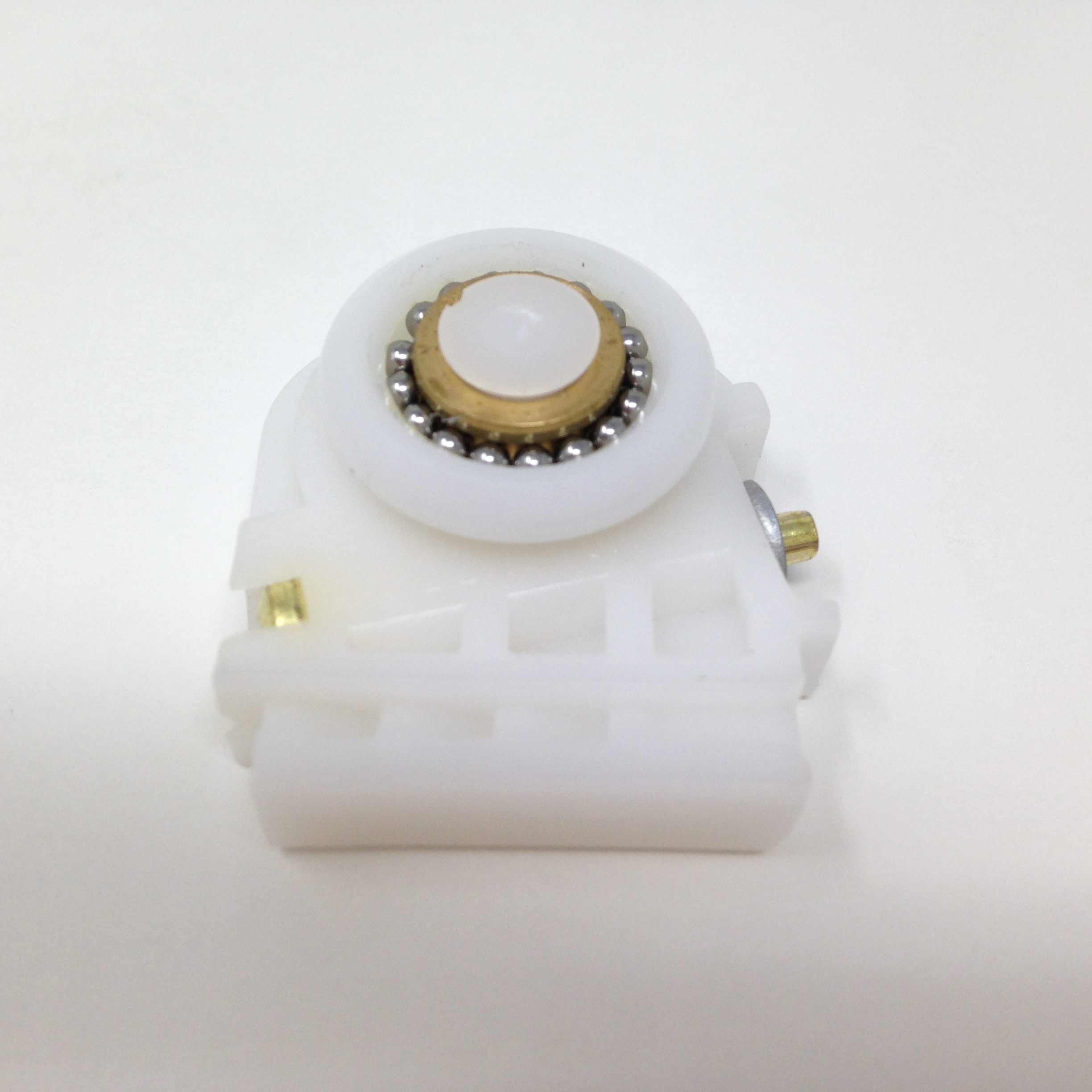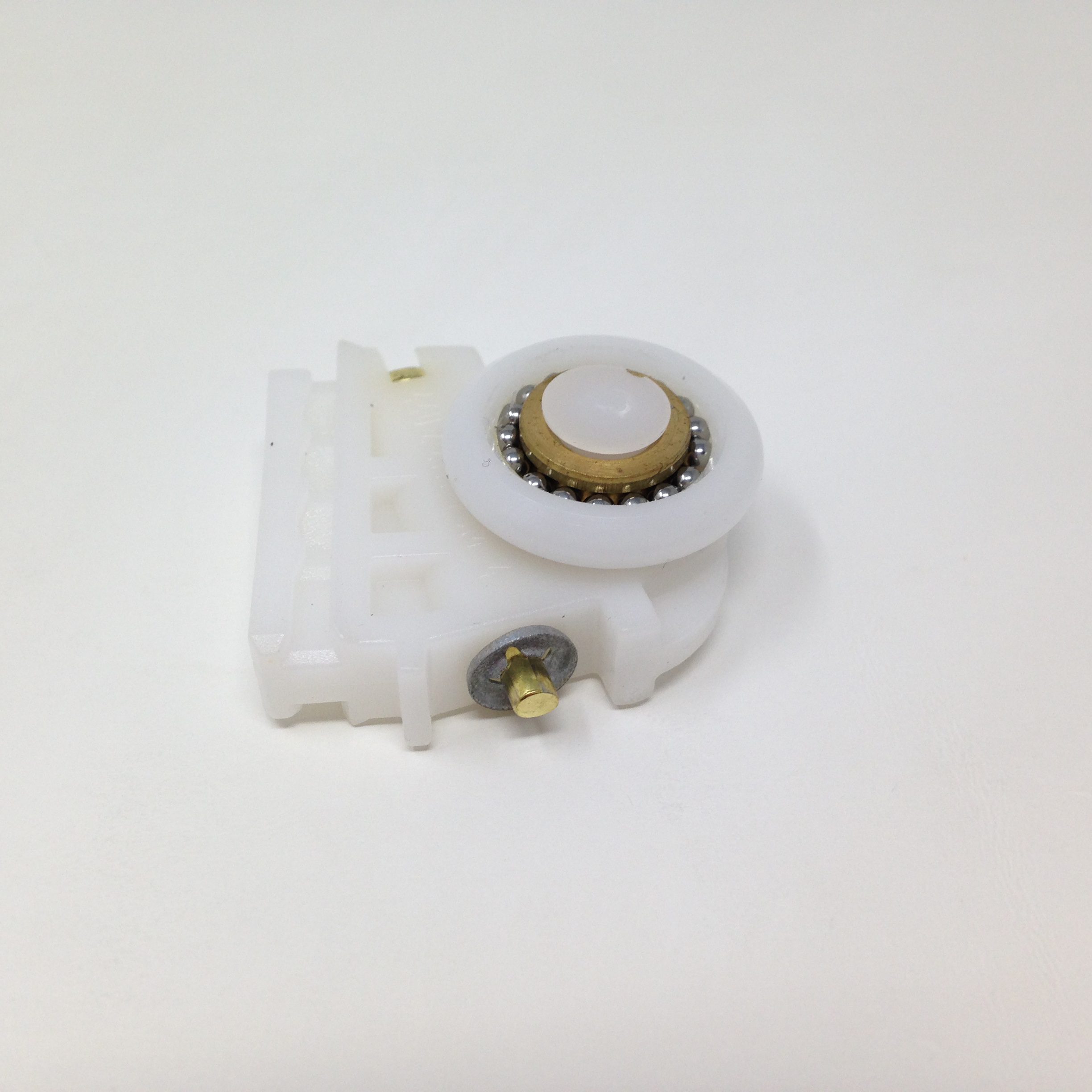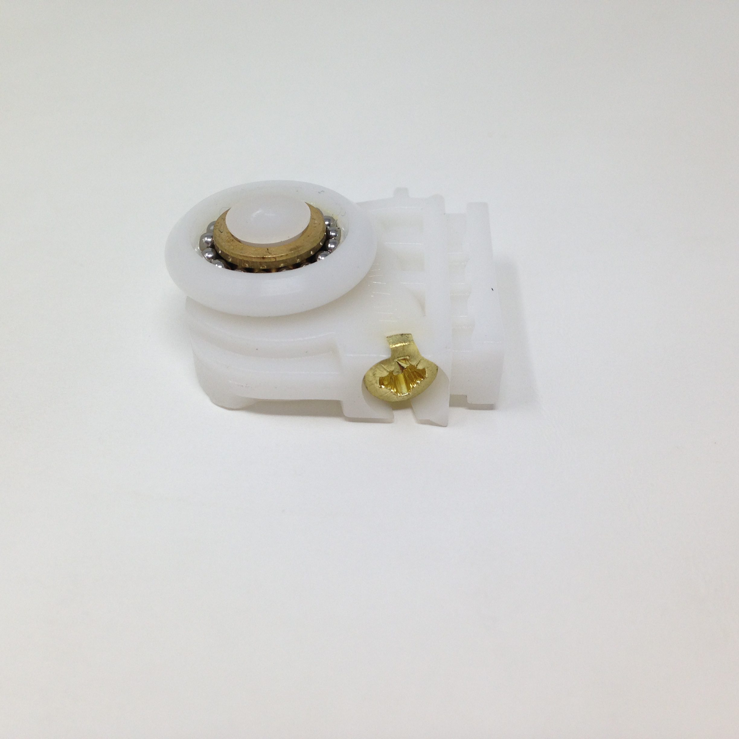 Roulette droite simple pour porte coulissante de cabine de douche. Vendue par lot de 2, cette roulette se compose d’un corps en téflon. Le bandage de la roulette est en téflon, recouvrant un roulement à billes étanche en acier inoxydable. Le choix et la qualité des matériaux employés offrent une utilisation optimale de confort, limitant ainsi le frottement et le bruit lors de la manipulation de la porte.