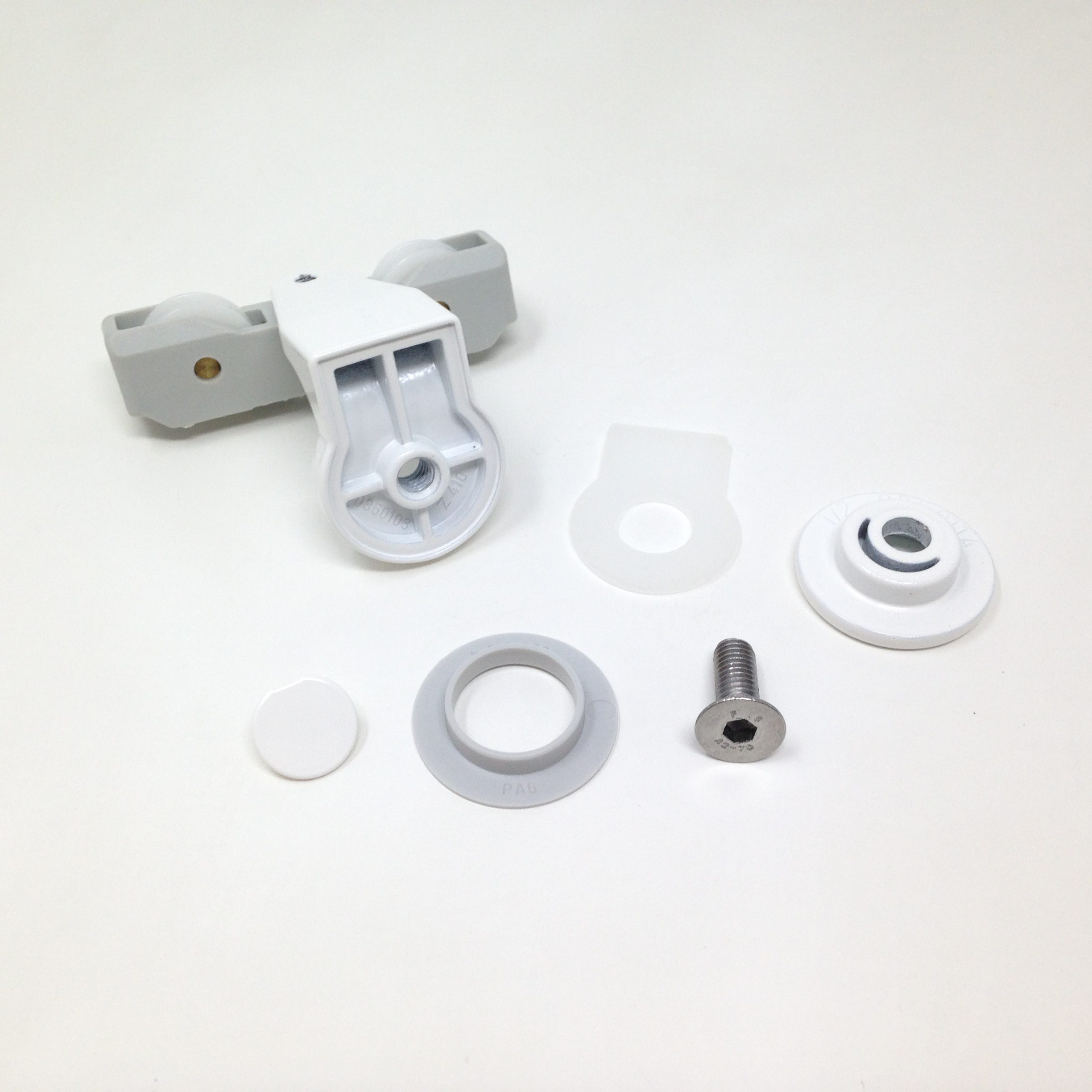 Vous achetez une roulette double, se montant entre autre sur les cabines de douche de marque KORALLE (pièce d’origine), modèle ORBIS, OPW, OPE…