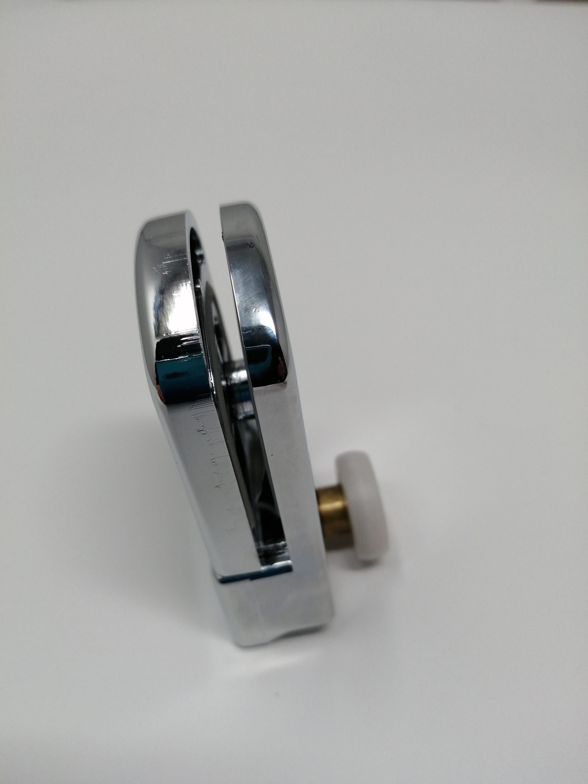 Roulette droite simple pour porte coulissante de cabine de douche. Vendue à l’unité, cette roulette se compose d’un corps en téflon. Le bandage de la roulette est en téflon, recouvrant un roulement à billes étanche en acier inoxydable. Le choix et la qualité des matériaux employés offrent une utilisation optimale de confort, limitant ainsi le frottement et le bruit lors de la manipulation de la porte.