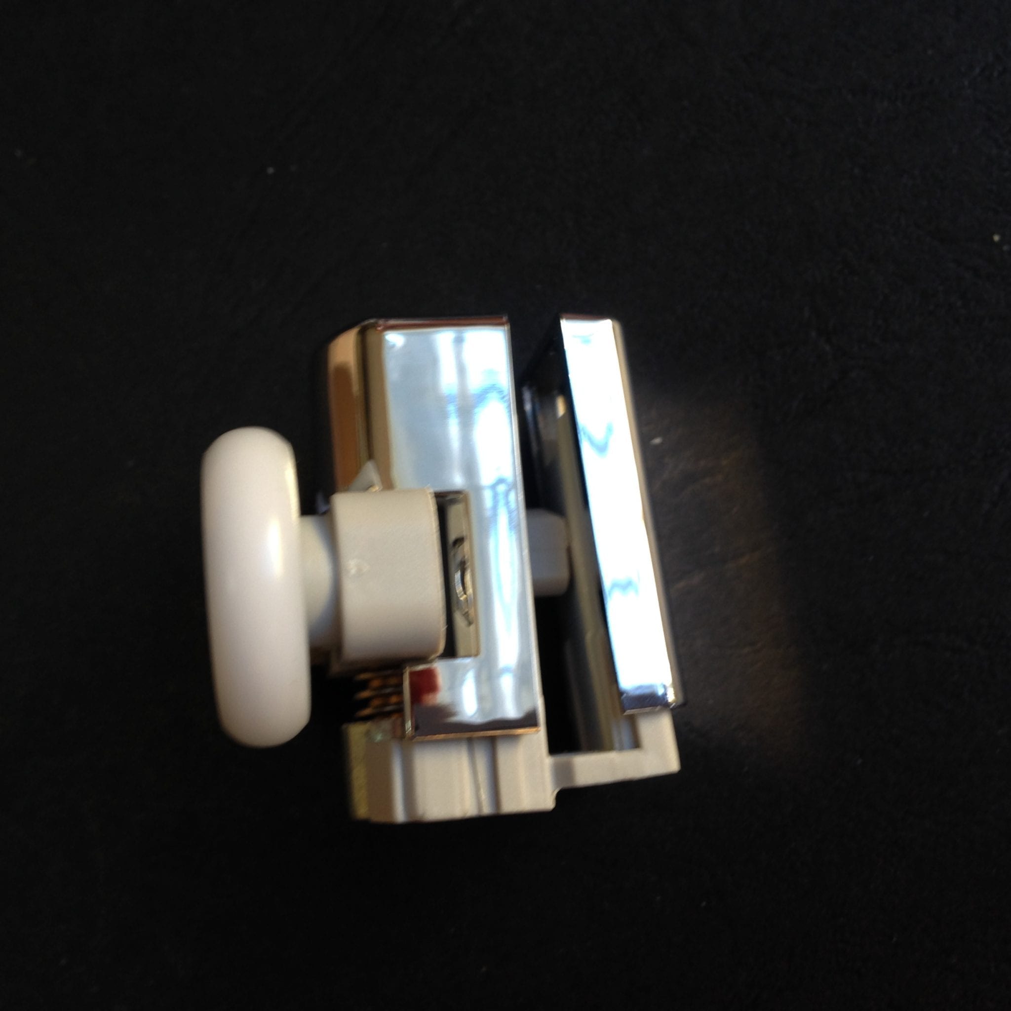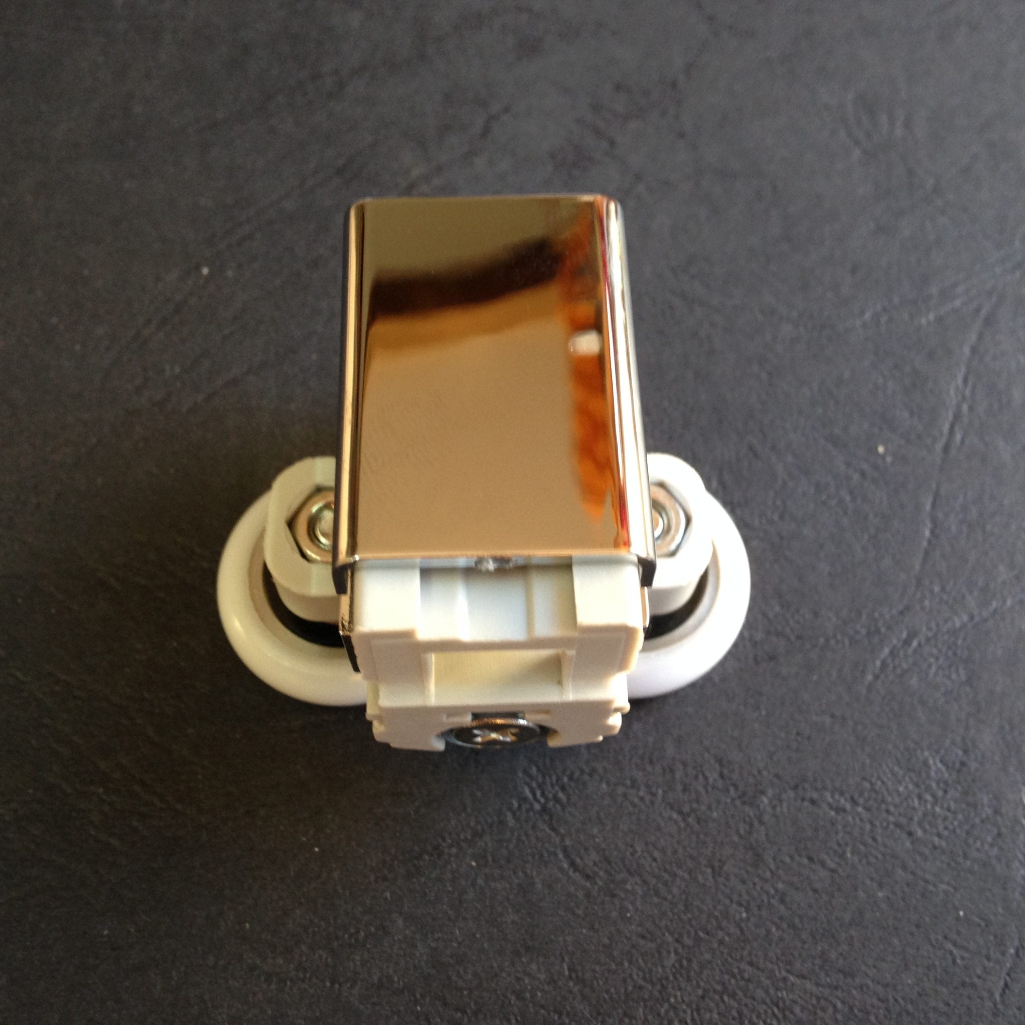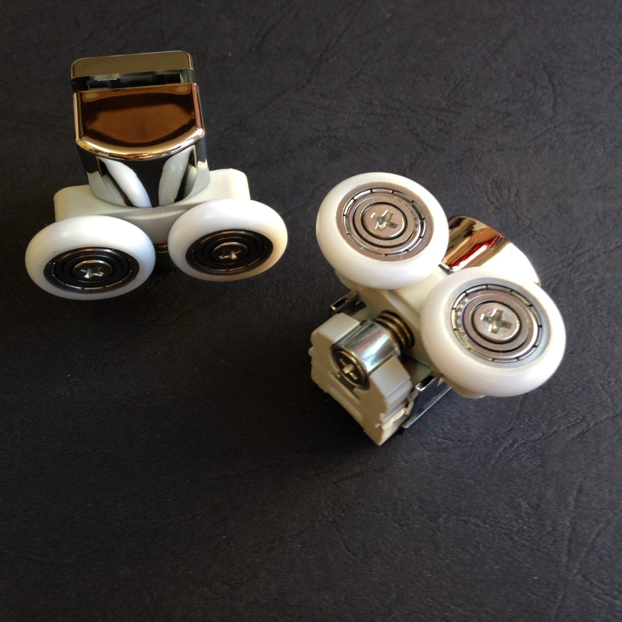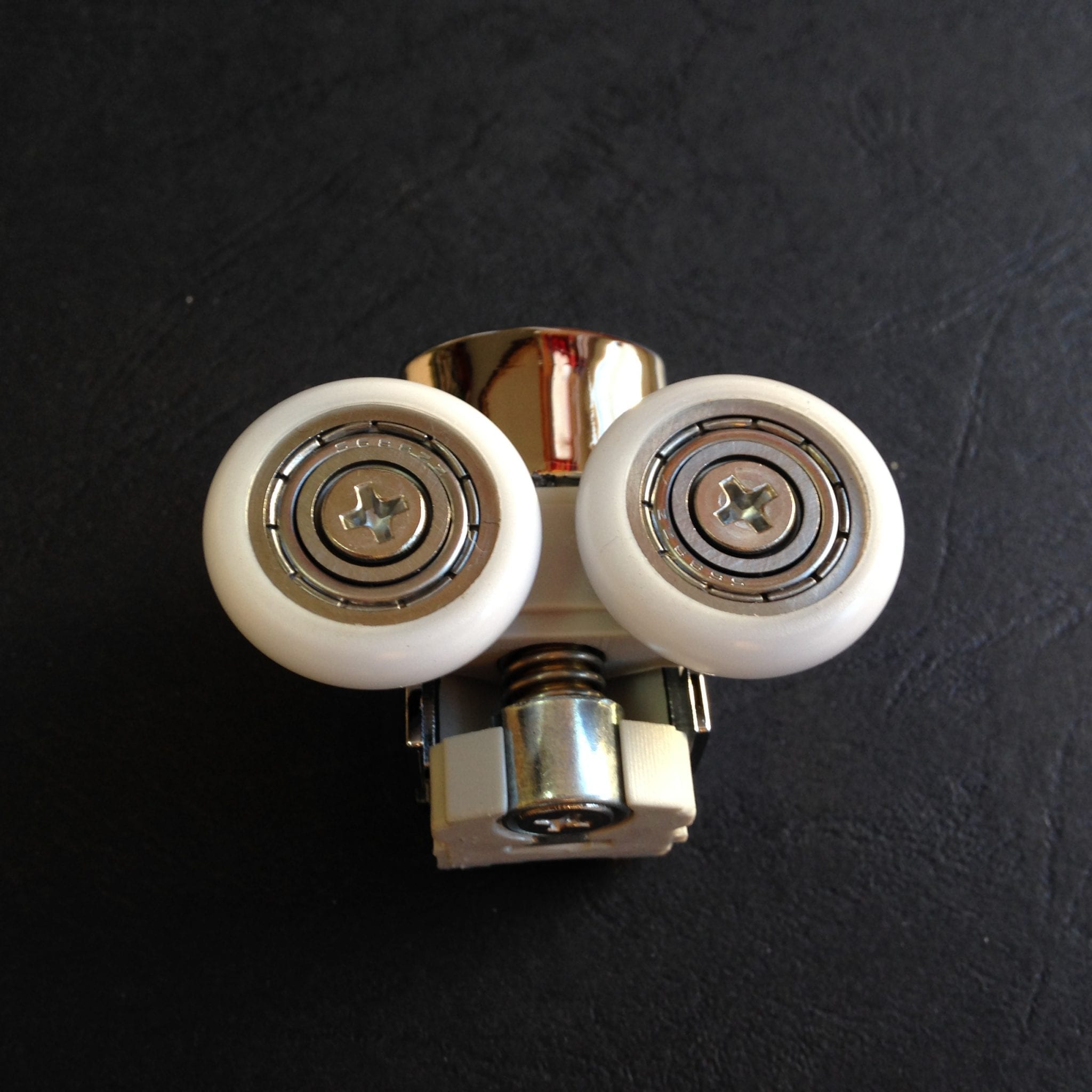 Roulette double pour porte coulissante de cabine de douche. Vendues par lot de 2, ces roulettes se composent d’un corps en laiton et d’éléments de soutien en plastique type ABS. Le bandage de la roulette est en téflon, recouvrant un roulement à billes étanche en acier inoxydable. Le choix et la qualité des matériaux employés offrent une utilisation optimale de confort, limitant ainsi le frottement et le bruit lors de la manipulation de la porte.