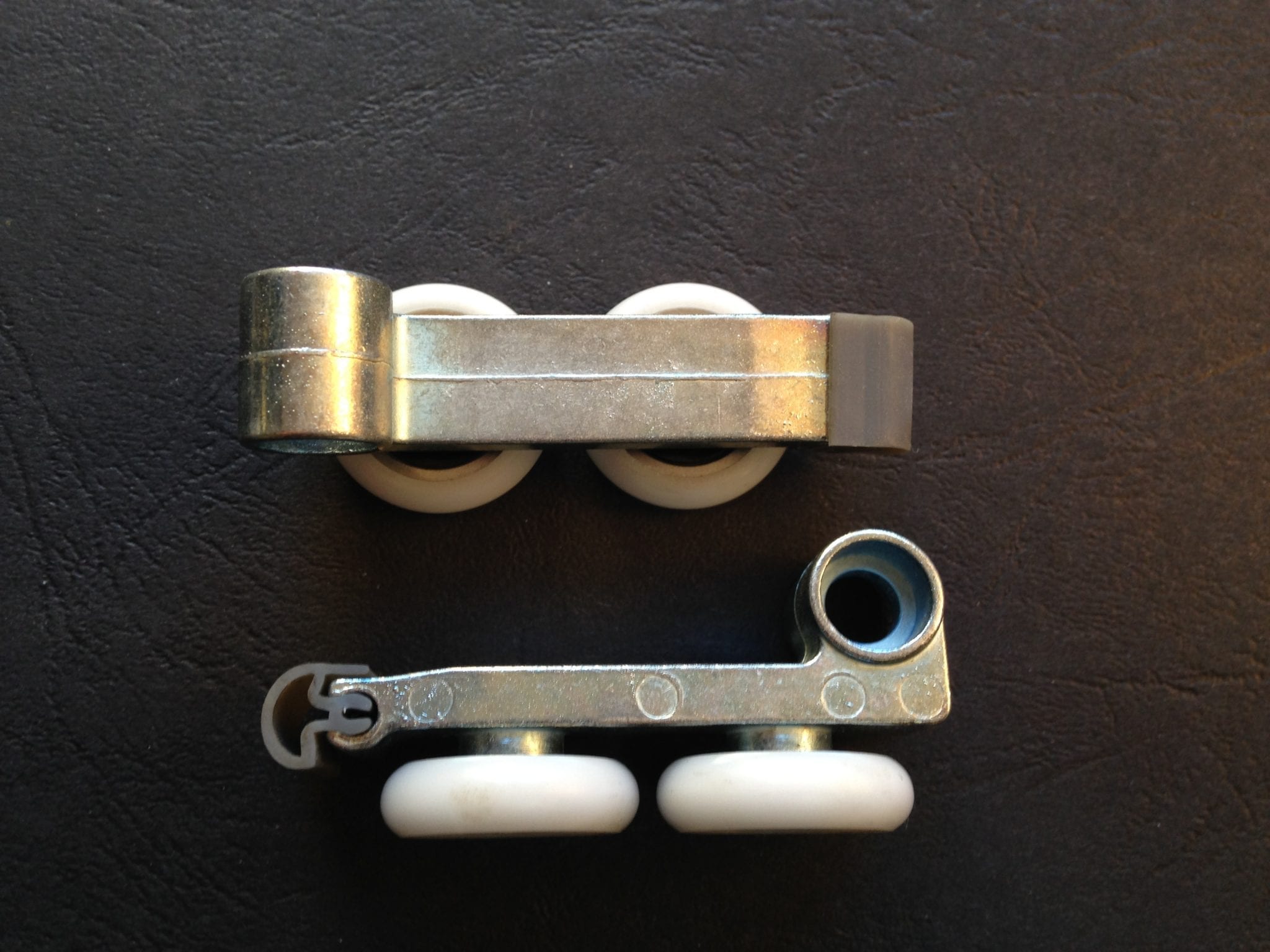 Roulette double pour porte coulissante de cabine de douche. Vendues par lot de 2, ces roulettes se composent d’un corps en laiton et d’éléments de soutien en plastique type ABS. Le bandage de la roulette est en téflon, recouvrant un roulement à billes étanche en acier inoxydable. Le choix et la qualité des matériaux employés offrent une utilisation optimale de confort, limitant ainsi le frottement et le bruit lors de la manipulation de la porte.