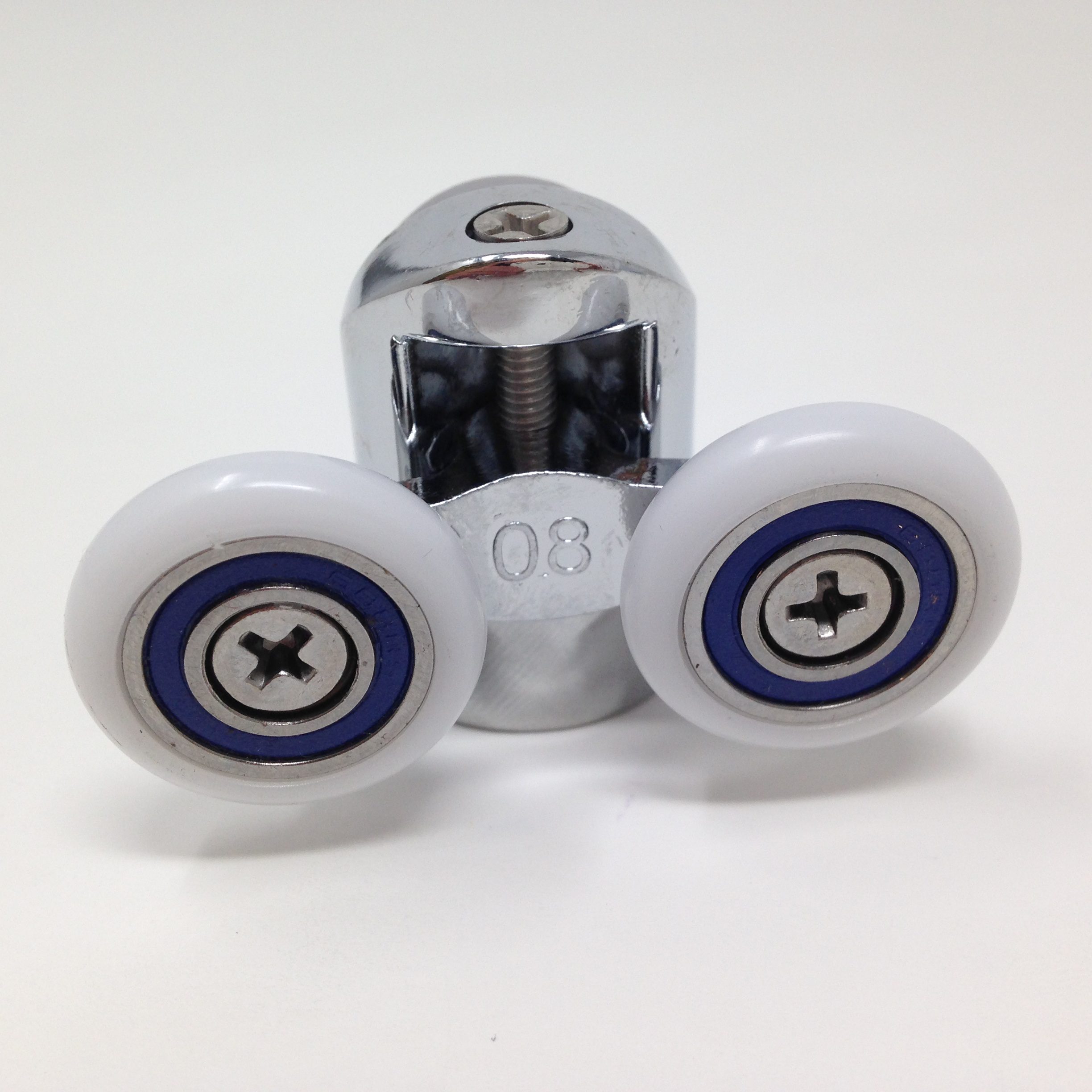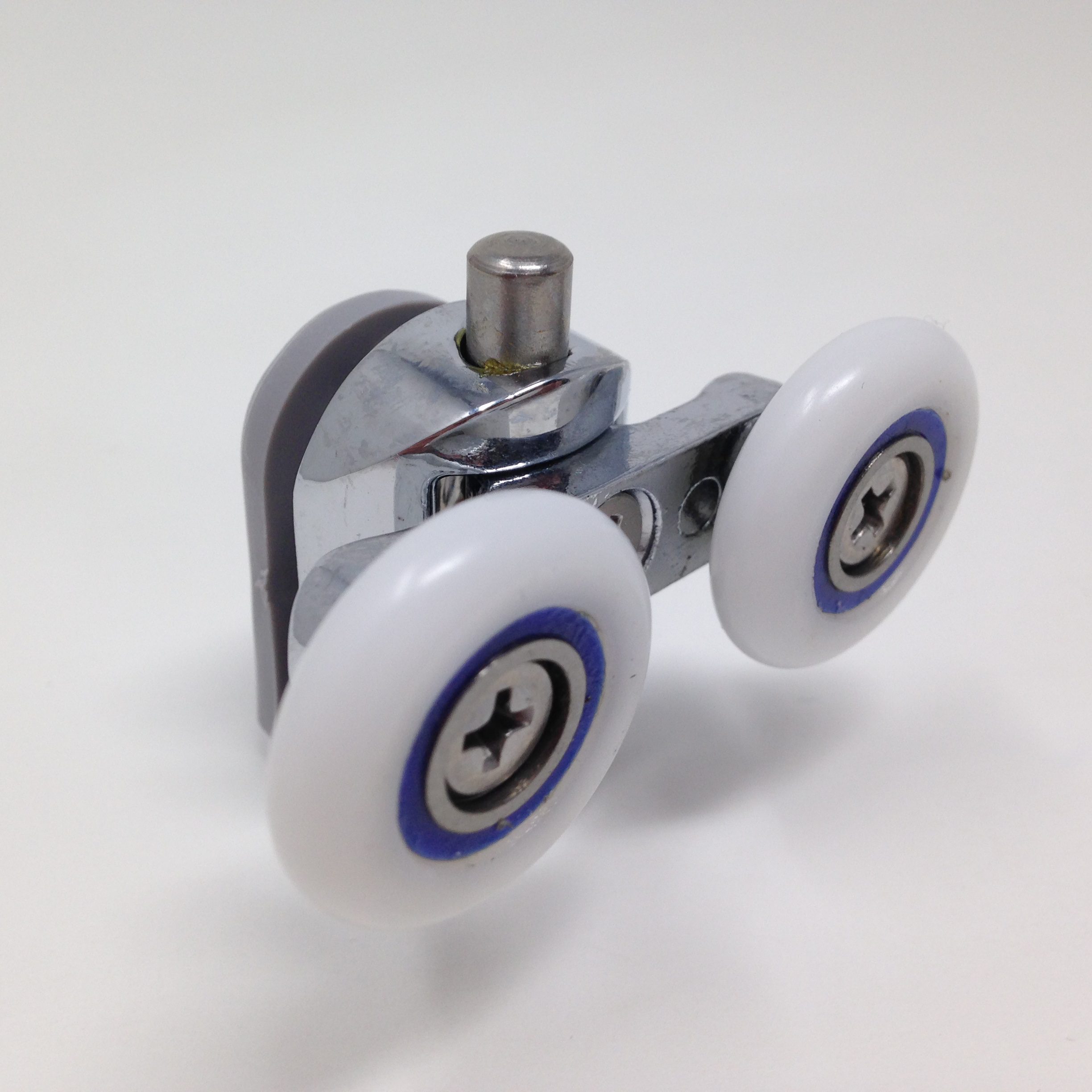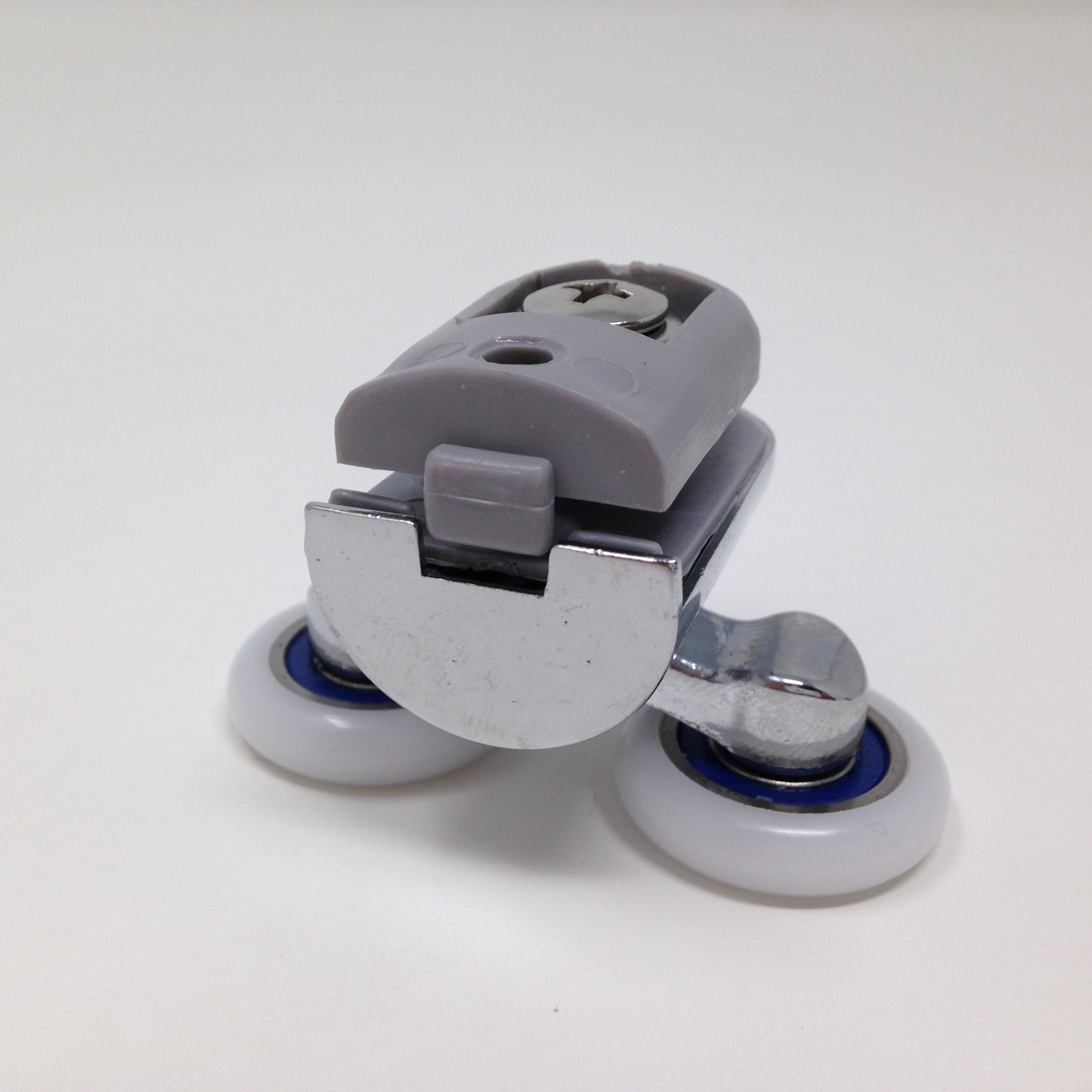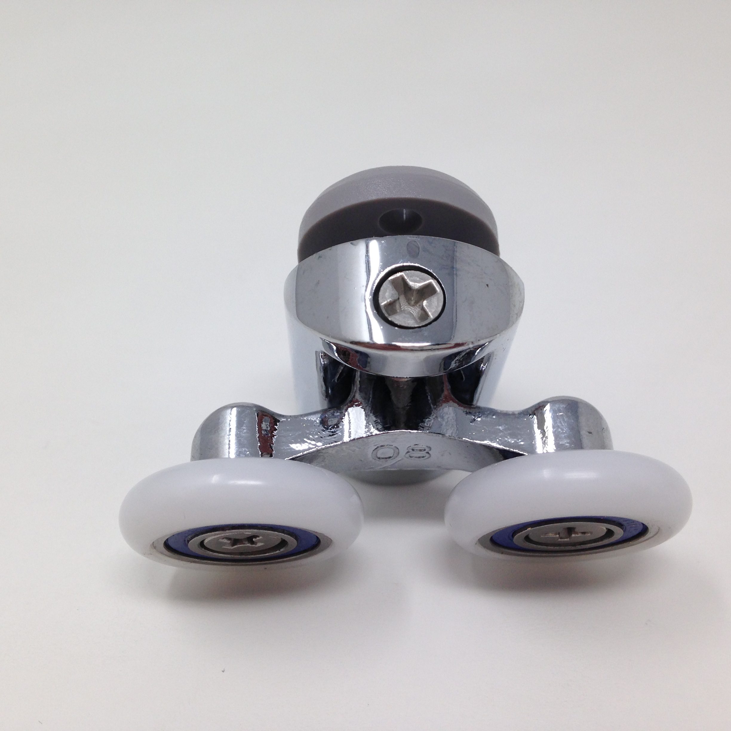 Roulette double haute et basse pour porte coulissante de cabine de douche. Vendues par lot de 4, ces roulettes se composent d’un corps en laiton ou en alliage de zinc et d’éléments de soutien en plastique type ABS. Le bandage de la roulette est en téflon, recouvrant un roulement à billes étanche en acier inoxydable. Le choix et la qualité des matériaux employés offrent une utilisation optimale de confort, limitant ainsi le frottement et le bruit lors de la manipulation de la porte.