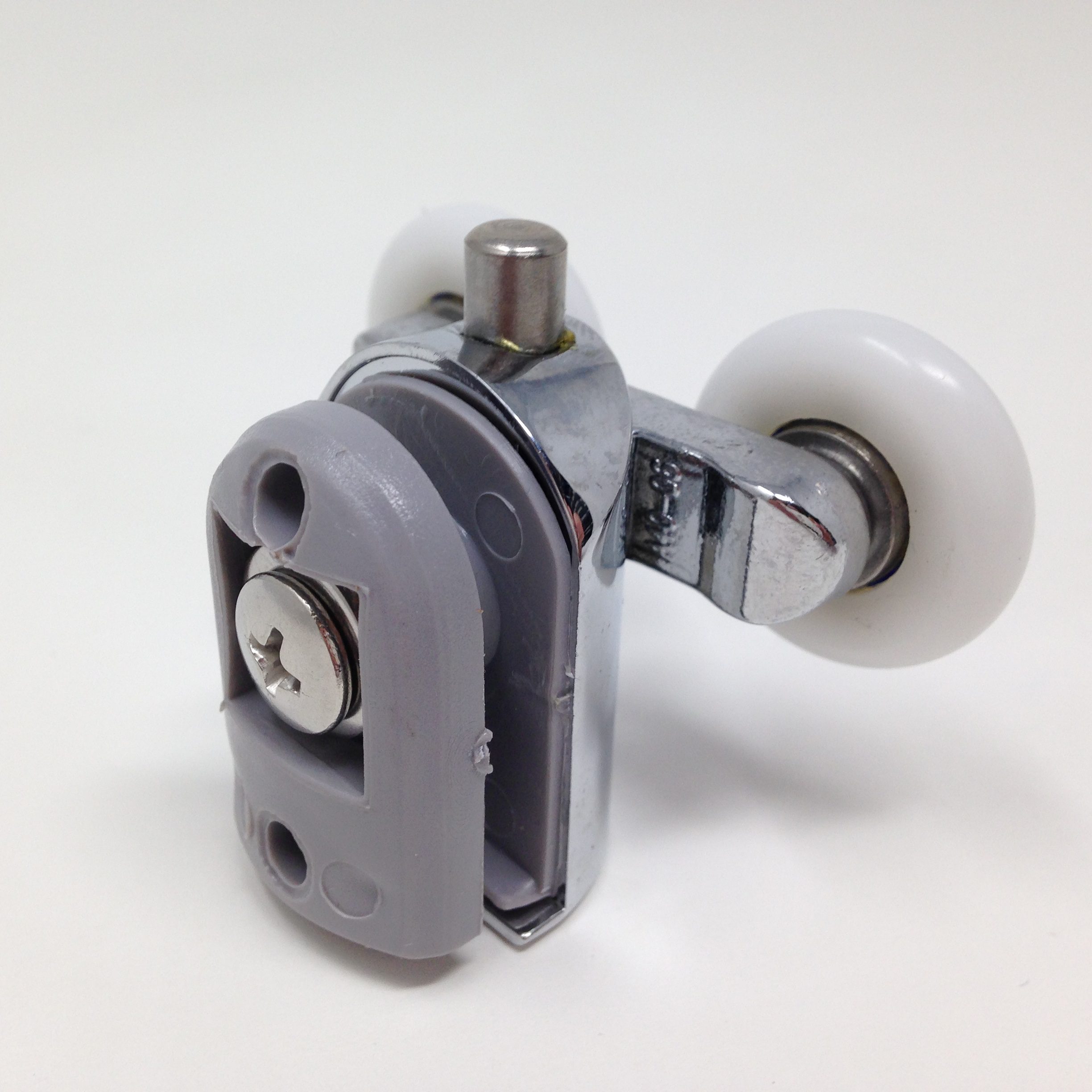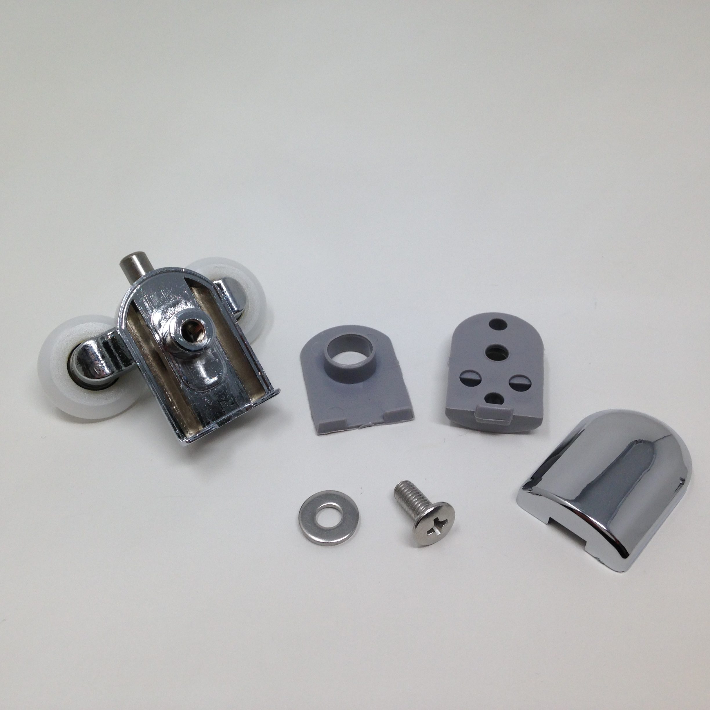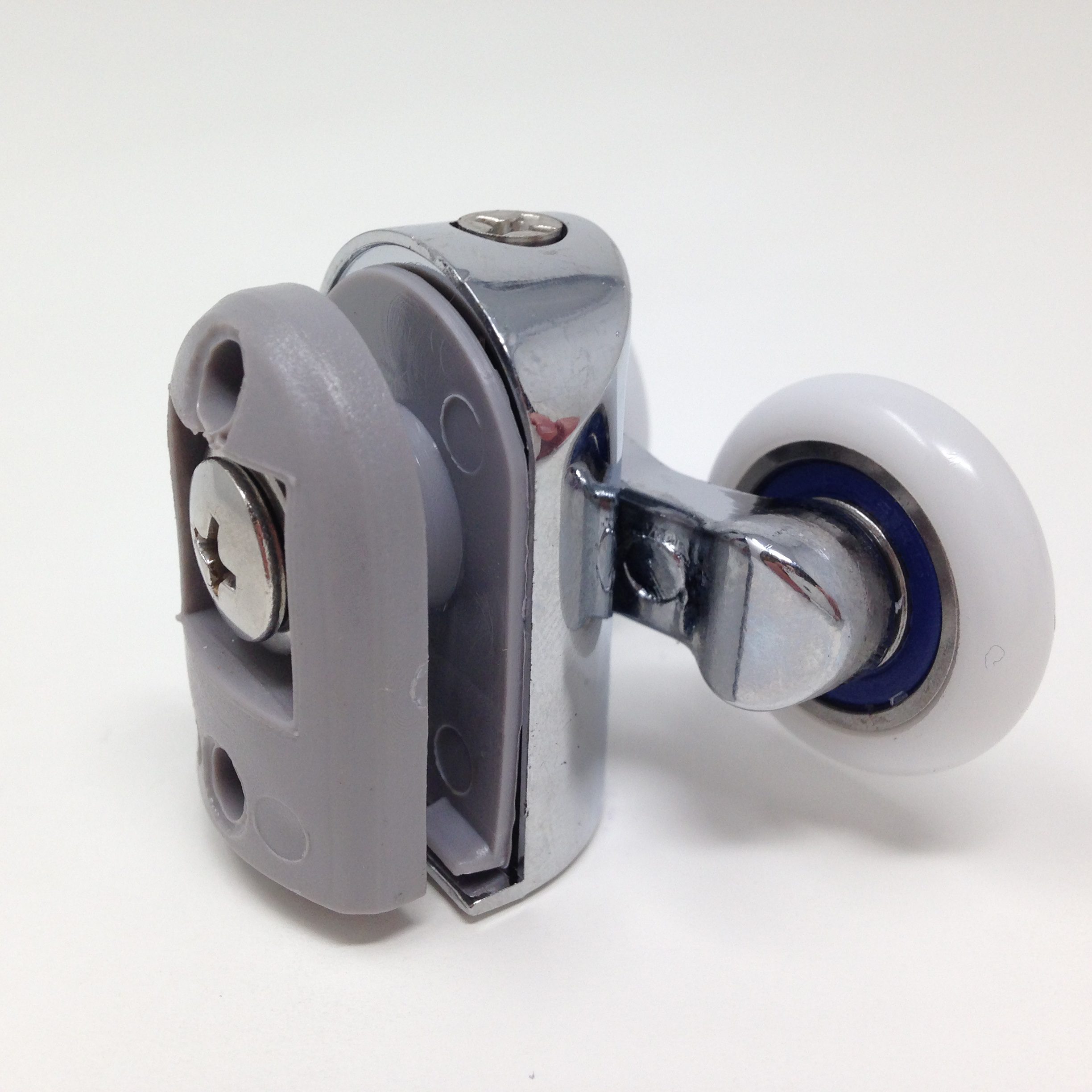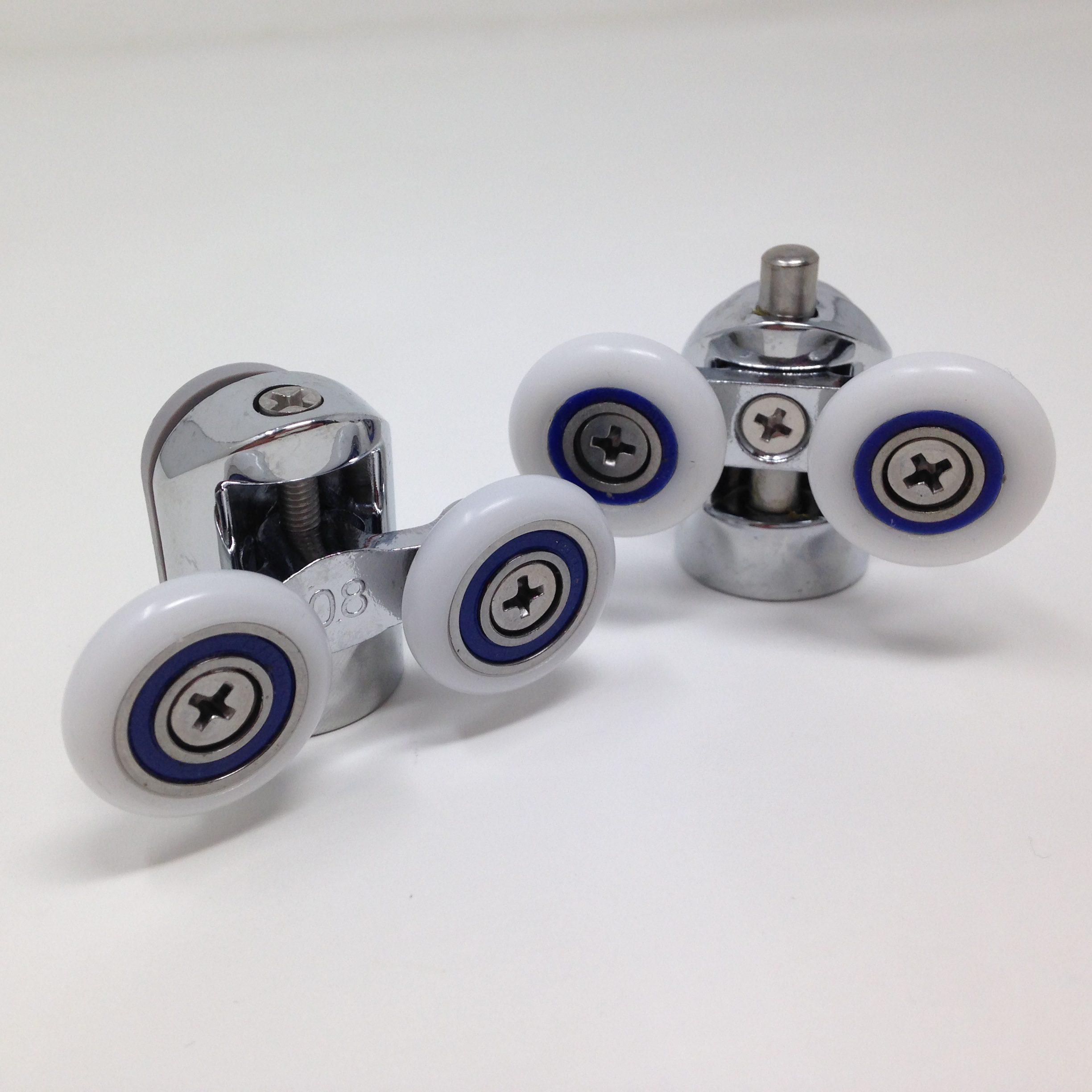 Roulette double haute et basse pour porte coulissante de cabine de douche. Vendues par lot de 4, ces roulettes se composent d’un corps en laiton ou en alliage de zinc et d’éléments de soutien en plastique type ABS. Le bandage de la roulette est en téflon, recouvrant un roulement à billes étanche en acier inoxydable. Le choix et la qualité des matériaux employés offrent une utilisation optimale de confort, limitant ainsi le frottement et le bruit lors de la manipulation de la porte.