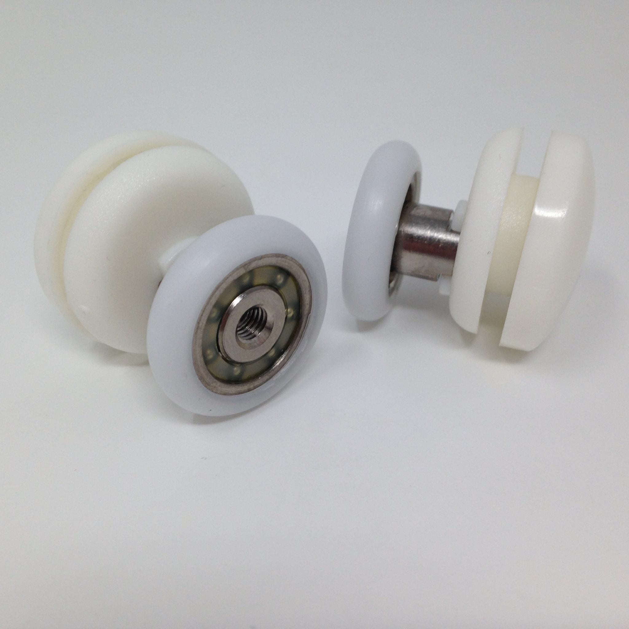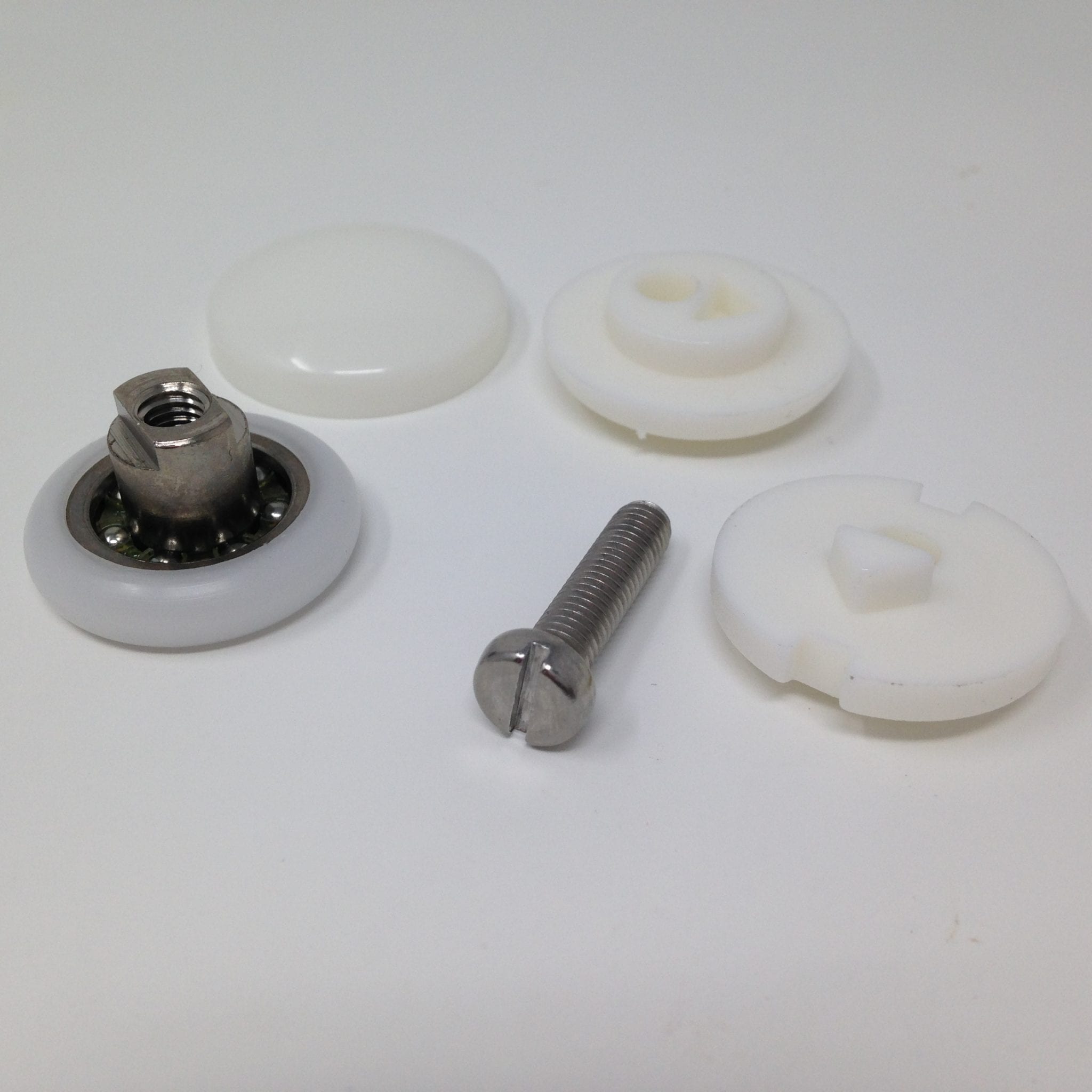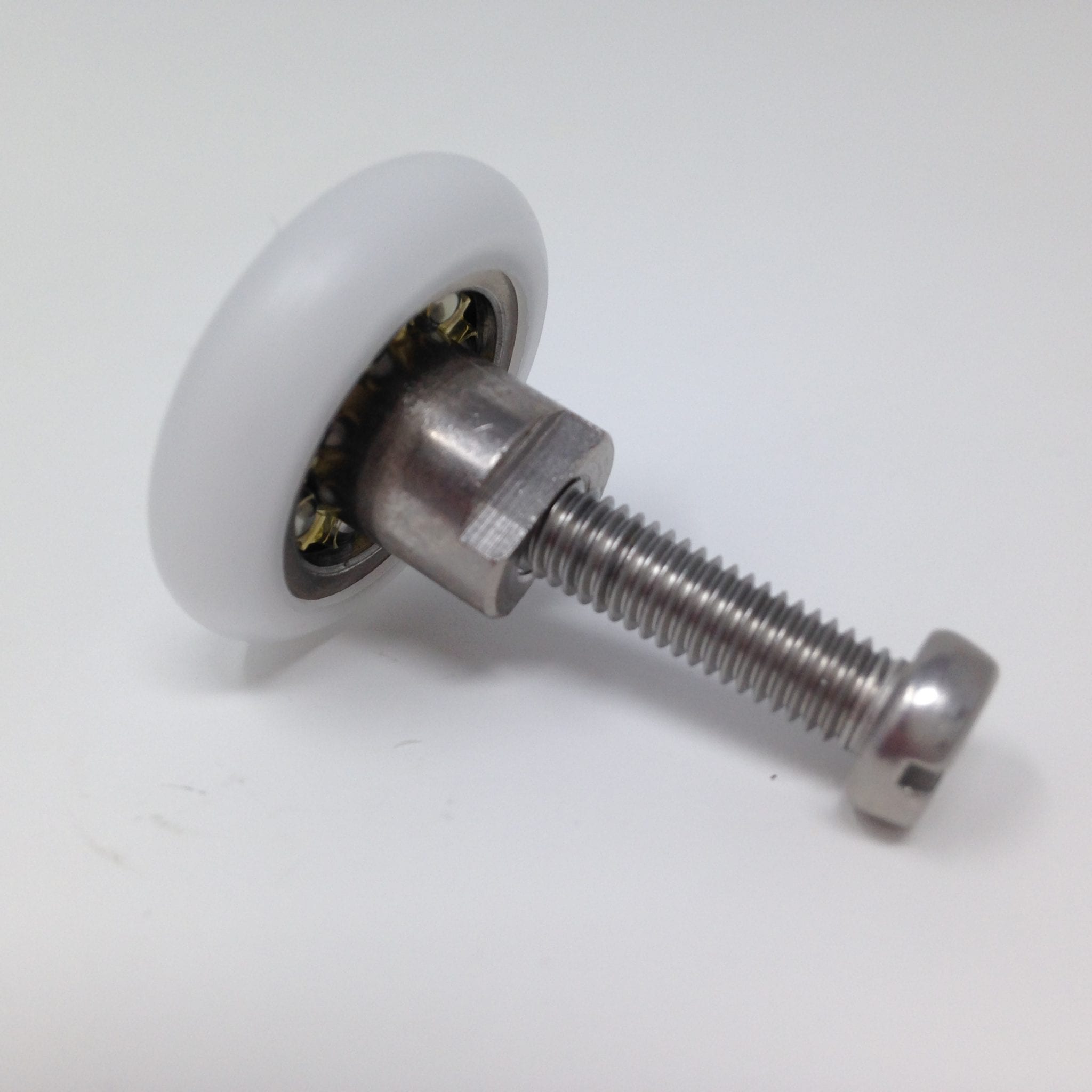 Roulette droite simple pour porte coulissante de cabine de douche. Vendues par lot de 4, ces roulettes se composent d’un corps en laiton ou en alliage de zinc et d’éléments de soutien en plastique type ABS. Le bandage de la roulette est en téflon, recouvrant un roulement à billes étanche en acier inoxydable. Le choix et la qualité des matériaux employés offrent une utilisation optimale de confort, limitant ainsi le frottement et le bruit lors de la manipulation de la porte.
