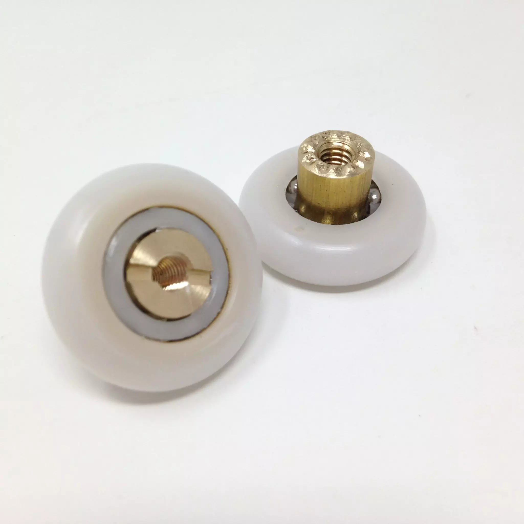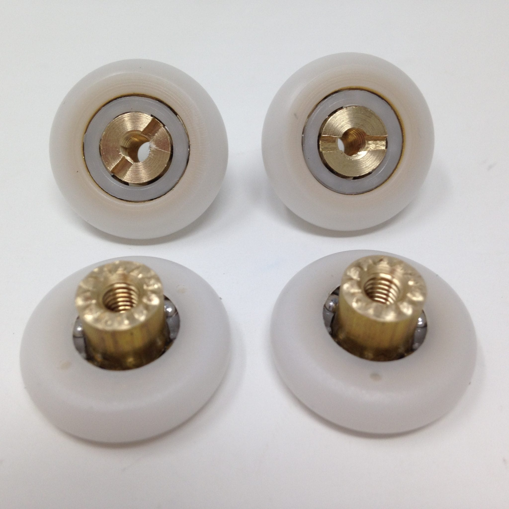 Roulette simple droite pour porte coulissante de cabine de douche. Vendues par lot de 4, ces roulettes se composent d’un corps en acier inoxydable. Le bandage de la roulette est en téflon, recouvrant un roulement à billes étanche en acier inoxydable. Le choix et la qualité des matériaux employés offrent une utilisation optimale de confort, limitant ainsi le frottement et le bruit lors de la manipulation de la porte.