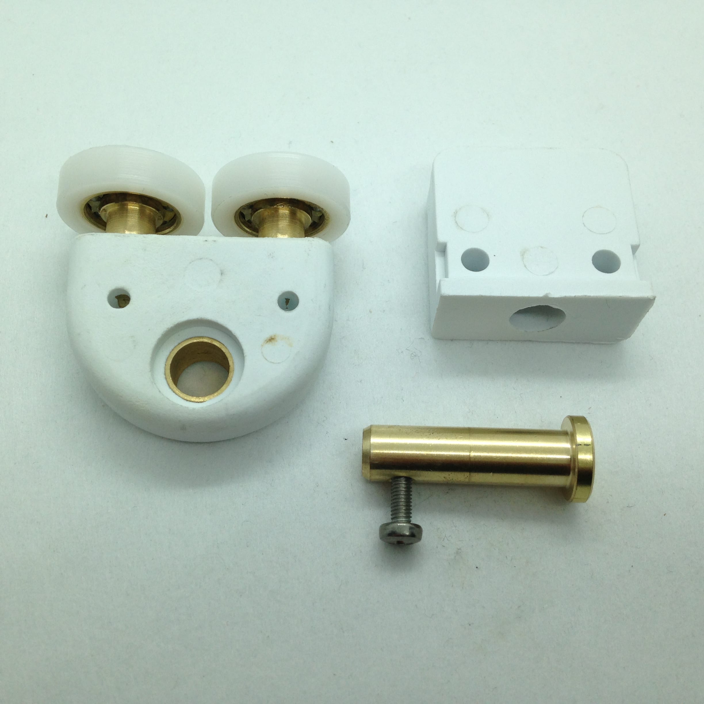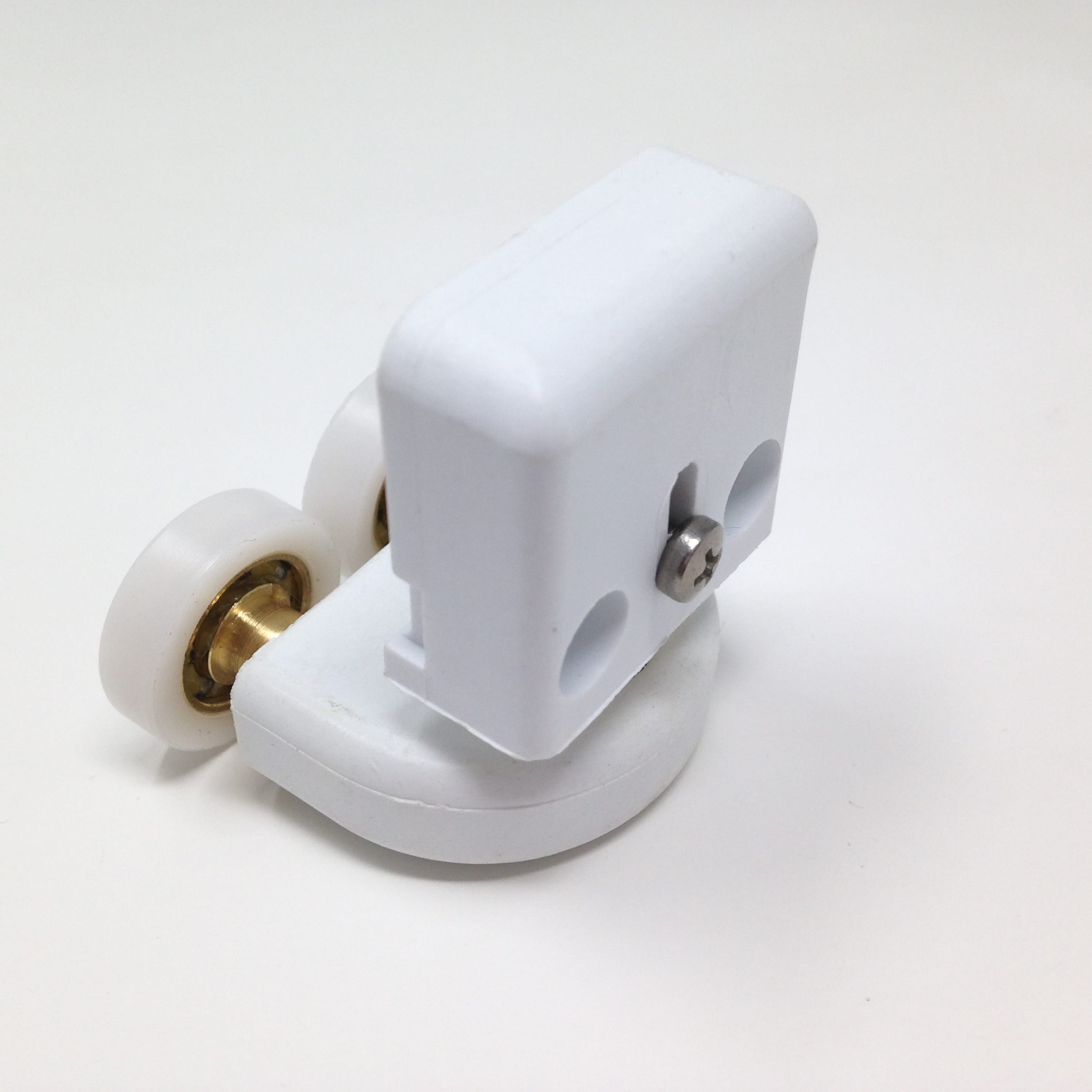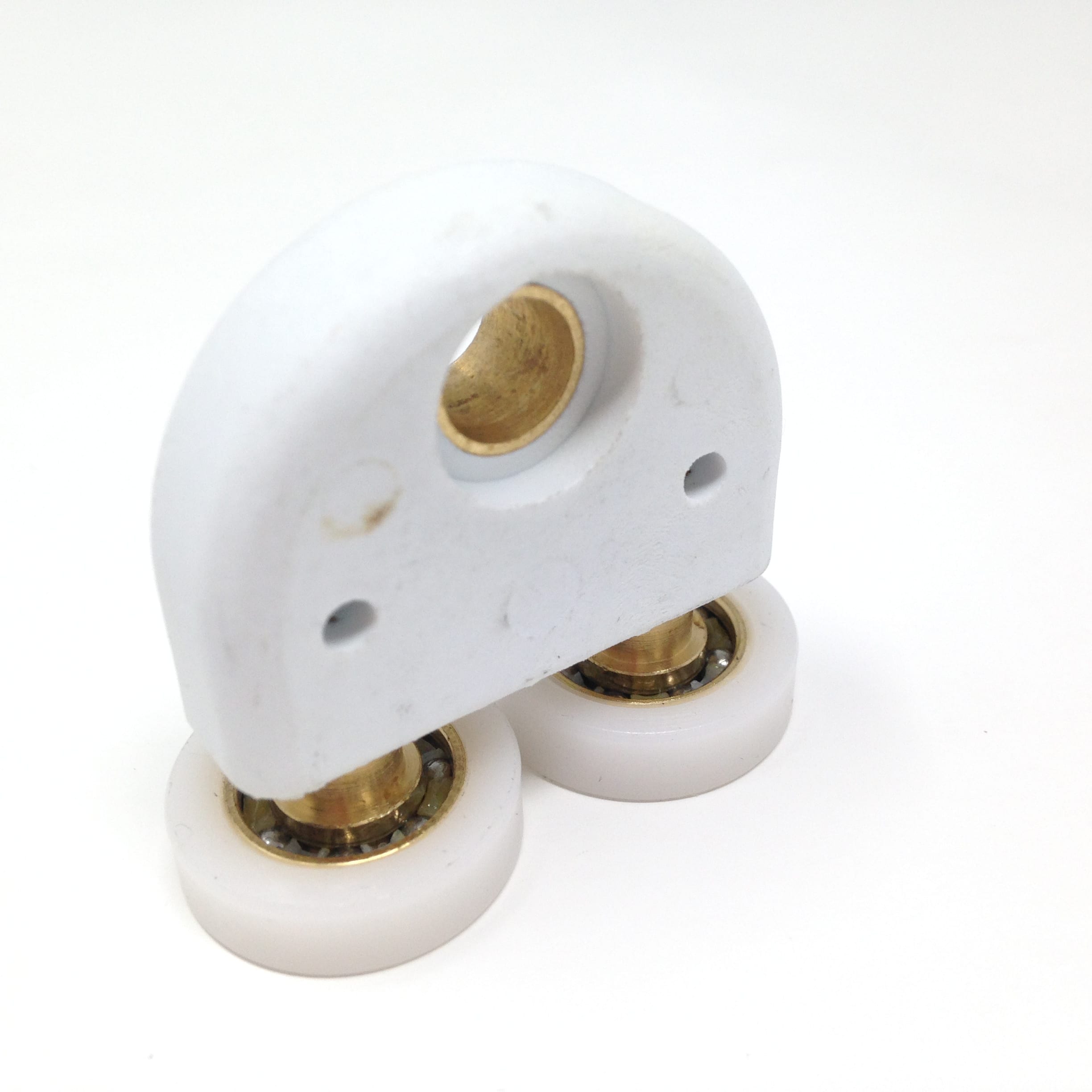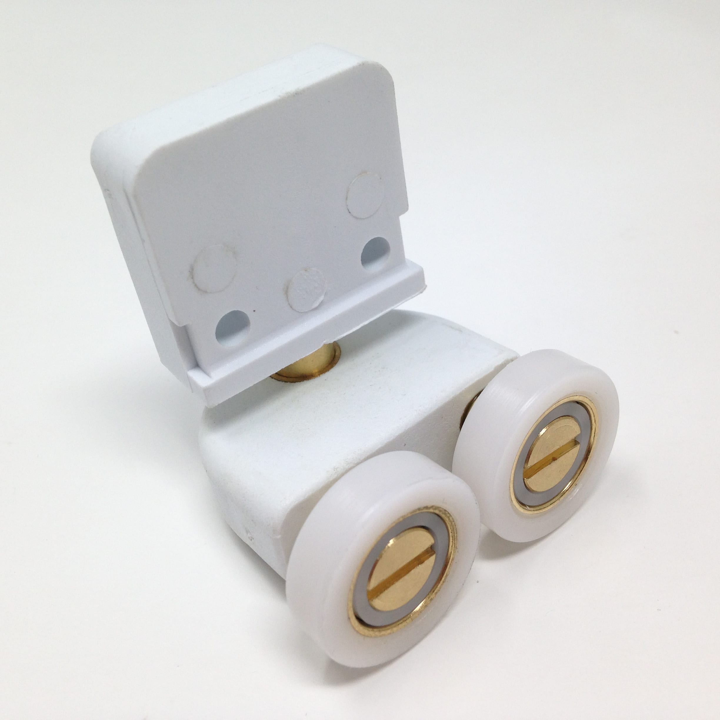 Roulette double pour porte coulissante de cabine de douche. Vendue à l’unité, cette roulette se compose d’un corps en plastique type ABS et en laiton. Le choix et la qualité des matériaux employés offrent une utilisation optimale de confort, limitant ainsi le frottement et le bruit lors de la manipulation de la porte.