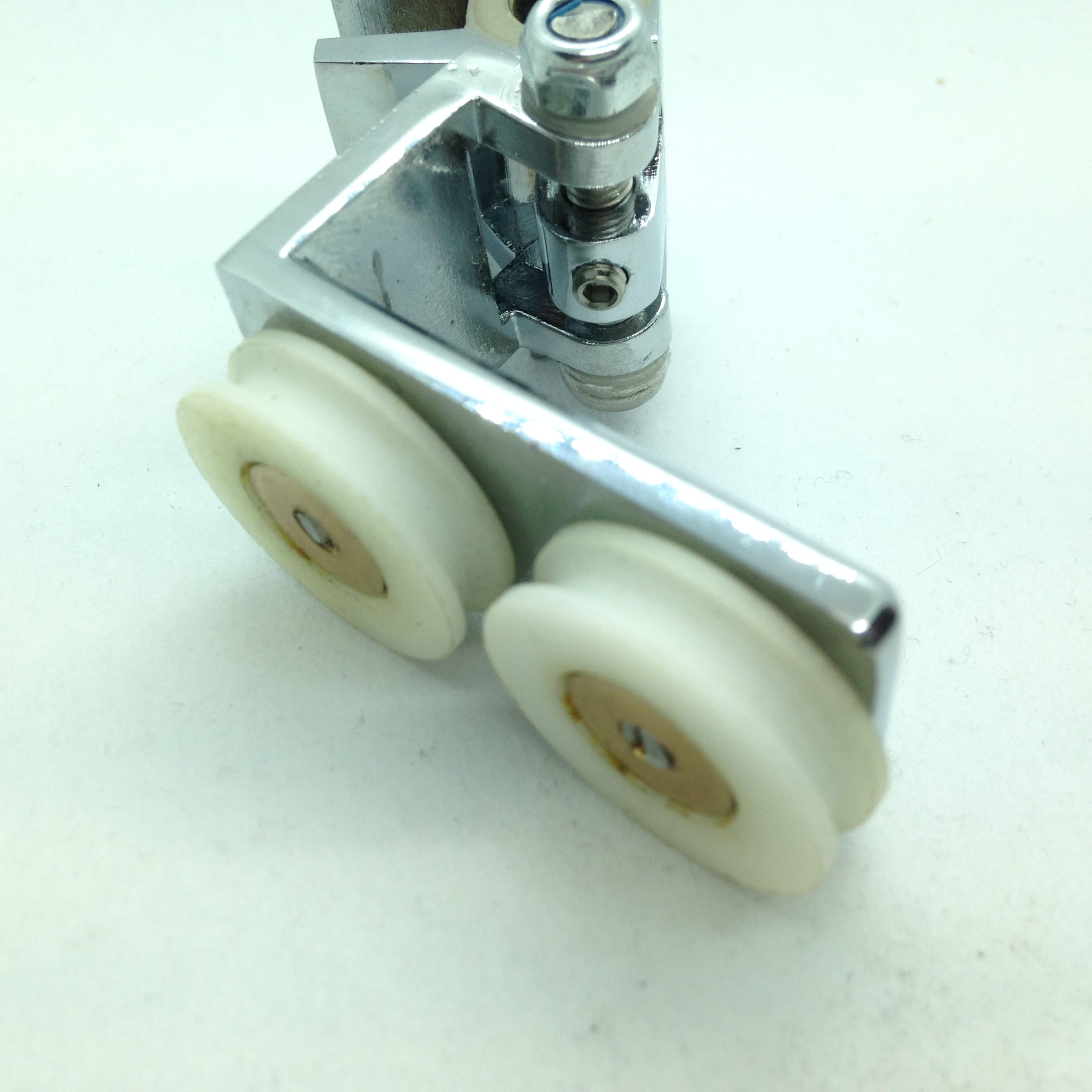 Roulette simple pour porte coulissante de cabine de douche. Vendues en kit par lot de 4, ces roulettes se composent d’un corps en laiton et d’éléments de soutien en plastique type ABS. Le bandage de la roulette est en téflon, recouvrant un roulement à billes étanche en acier inoxydable. Le choix et la qualité des matériaux employés offrent une utilisation optimale de confort, limitant ainsi le frottement et le bruit lors de la manipulation de la porte.