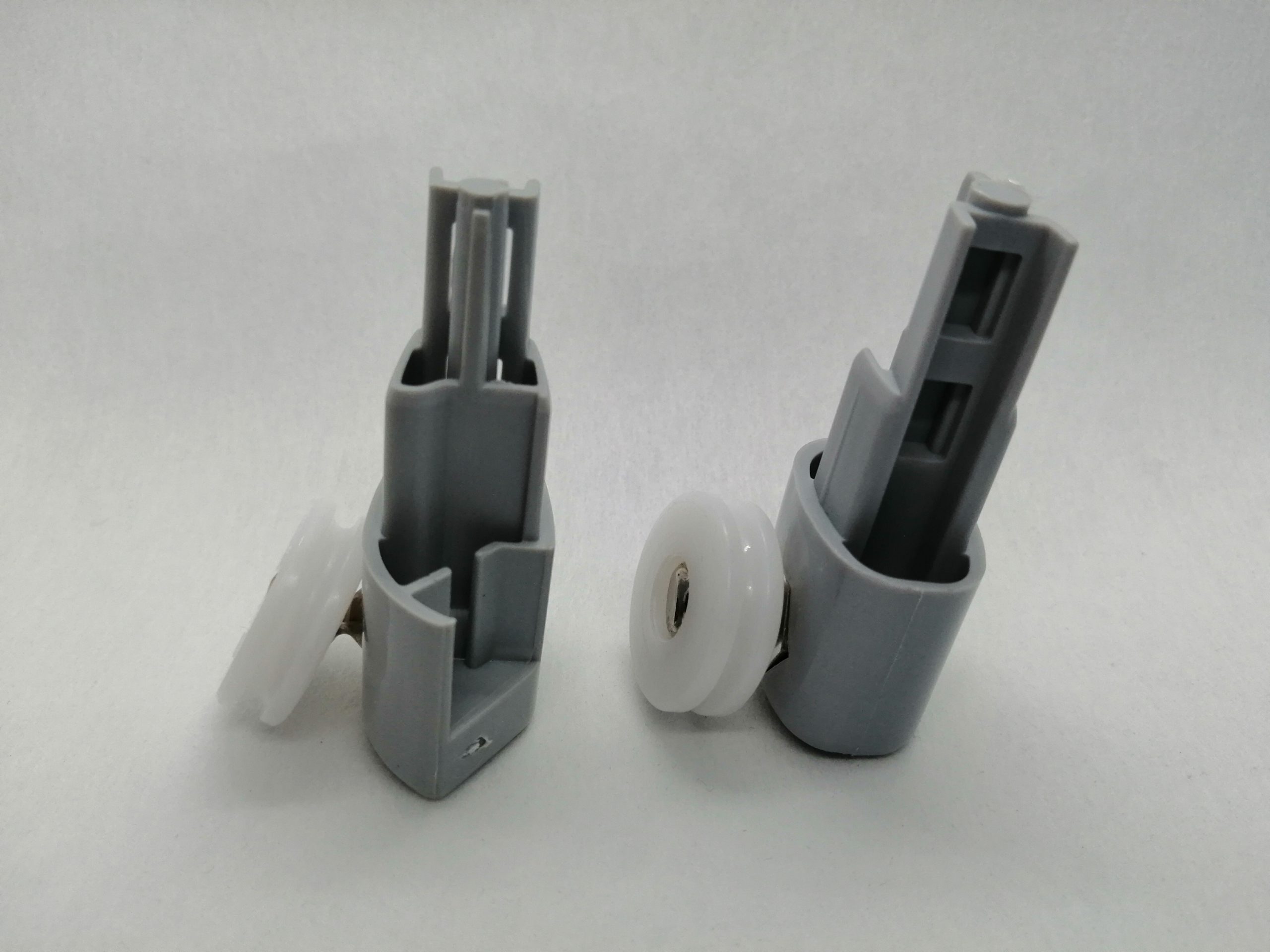 Roulette simple articulée pour porte coulissante de cabine de douche. Vendue par lot de 4, cette roulette se compose d’un corps en plastique type ABS et en laiton. Le bandage de la roulette est en téflon. Le choix et la qualité des matériaux employés offrent une utilisation optimale de confort, limitant ainsi le frottement et le bruit lors de la manipulation de la porte.
