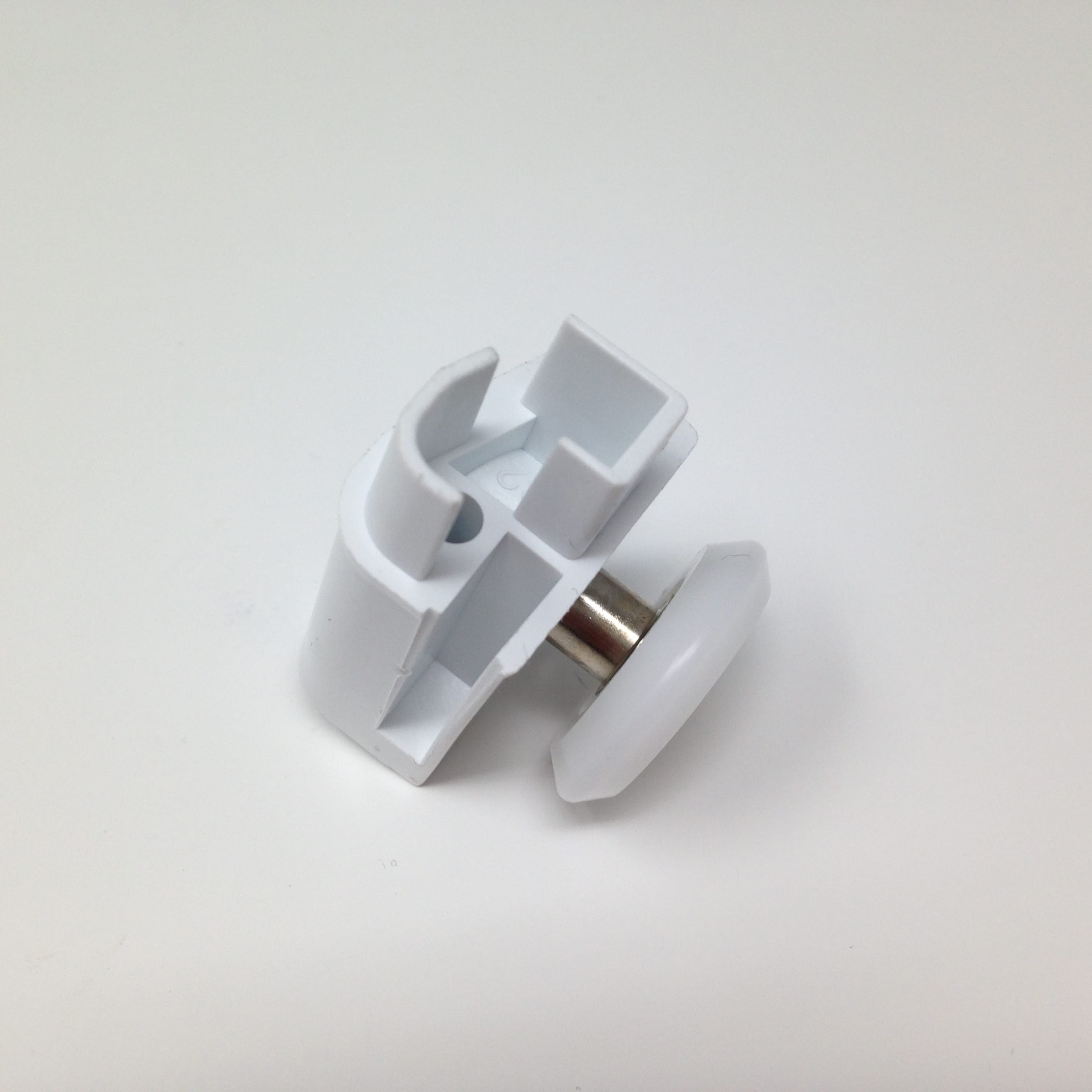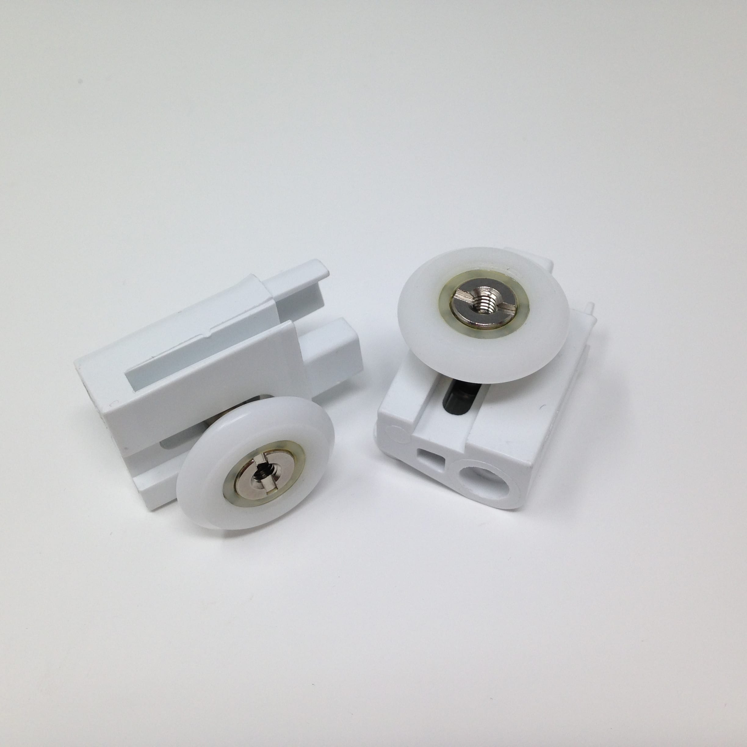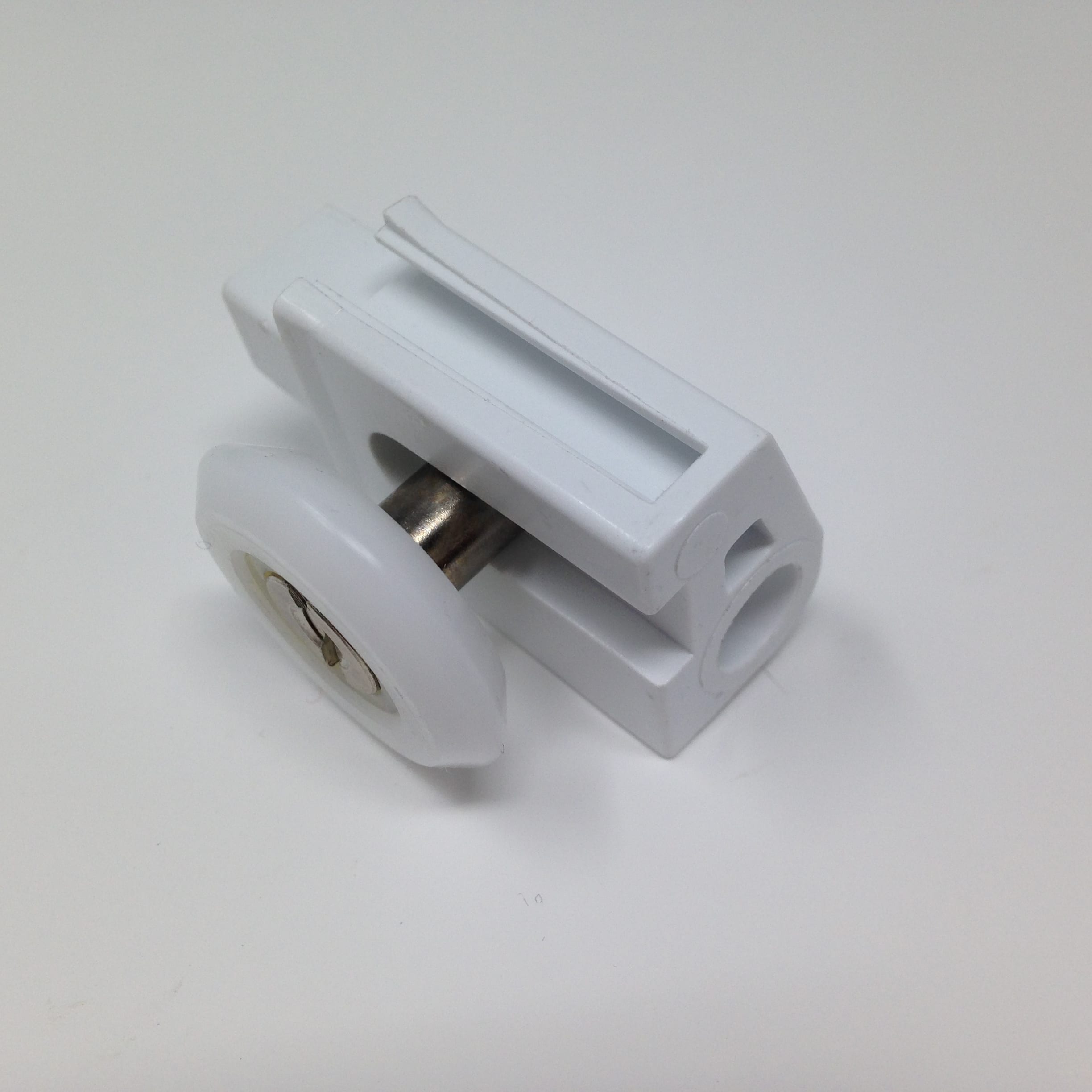 Roulette simple pour porte coulissante de cabine de douche. Vendue par lot de 2, cette roulette se compose d’un corps en laiton et d’éléments de soutien en plastique de type ABS. Le bandage de la roulette est en téflon, recouvrant un roulement à billes étanche en acier inoxydable. Le choix et la qualité des matériaux employés offrent une utilisation optimale de confort, limitant ainsi le frottement et le bruit lors de la manipulation de la porte.