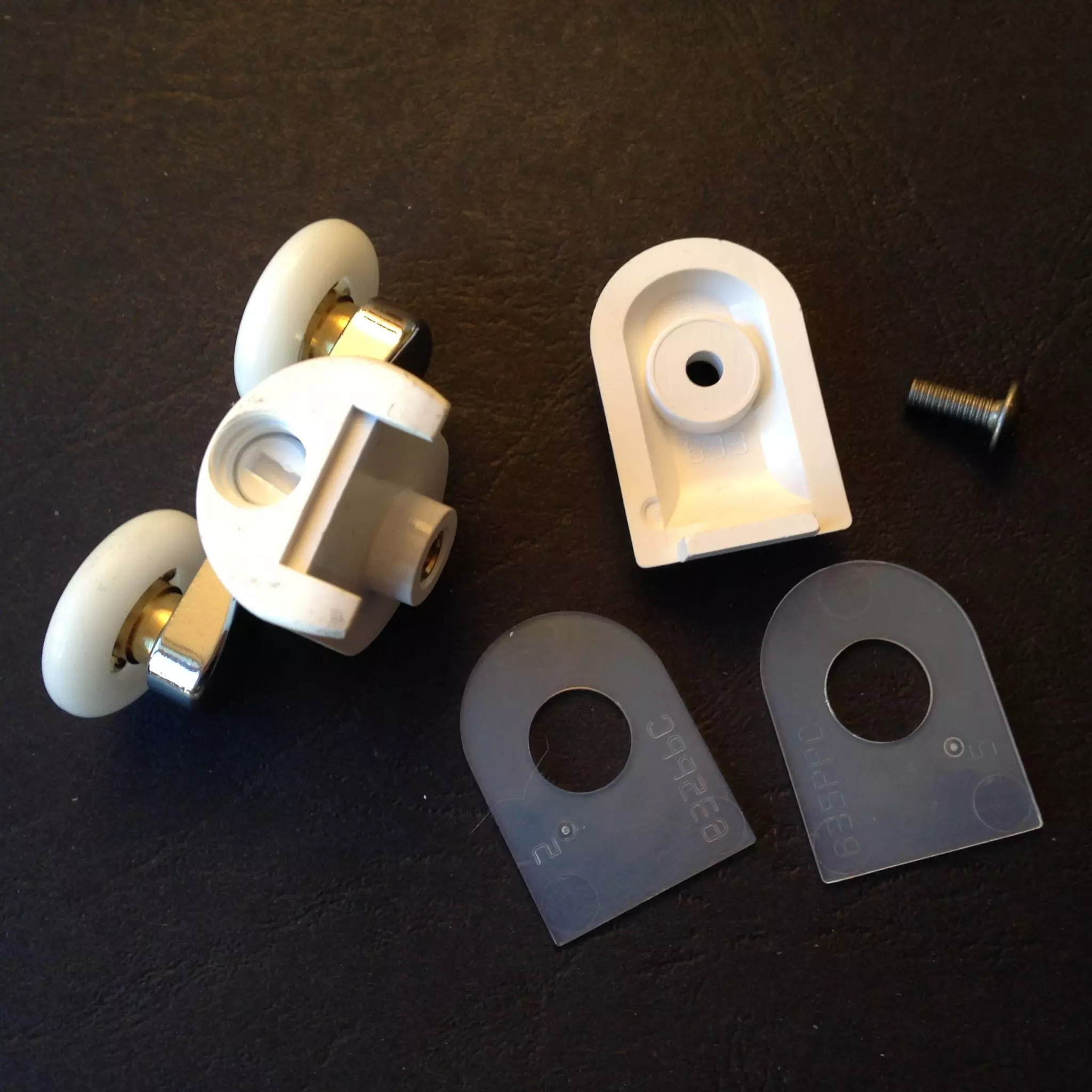 Roulette double pour porte coulissante de cabine de douche. Vendue par lot de 2, cette roulette se compose d’un corps en plastique type ABS et en laiton. Le bandage de la roulette est en téflon. Le choix et la qualité des matériaux employés offrent une utilisation optimale de confort, limitant ainsi le frottement et le bruit lors de la manipulation de la porte.
