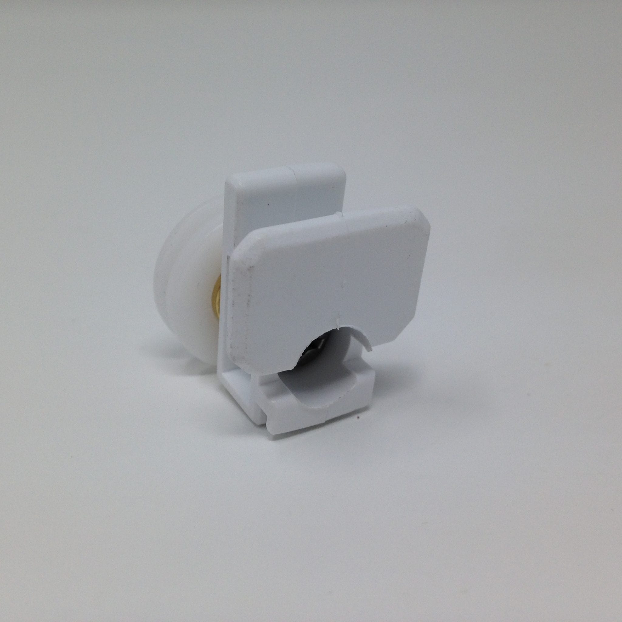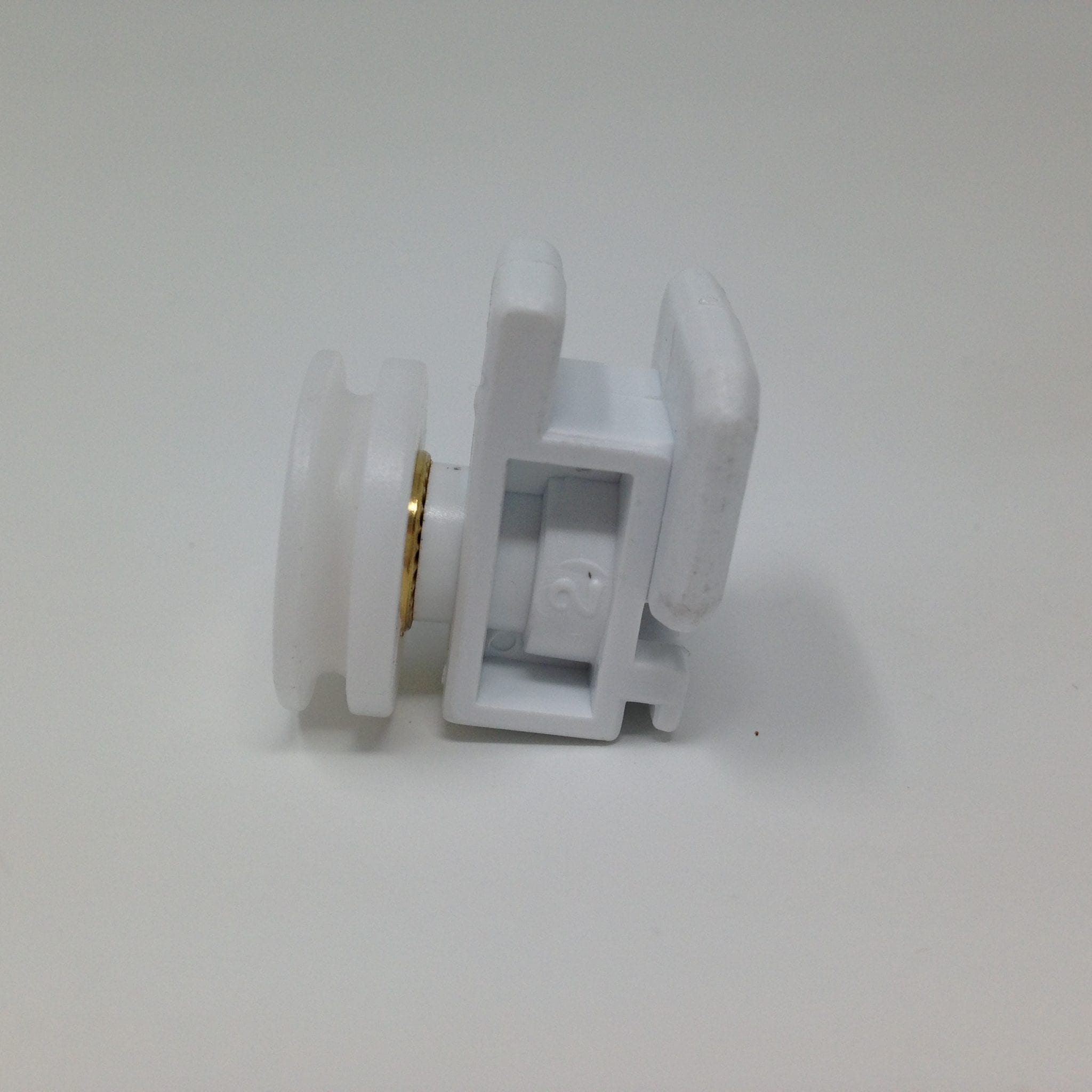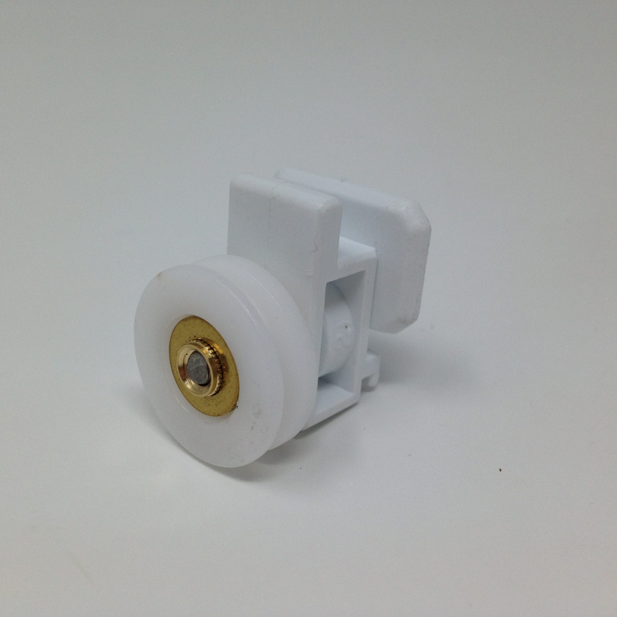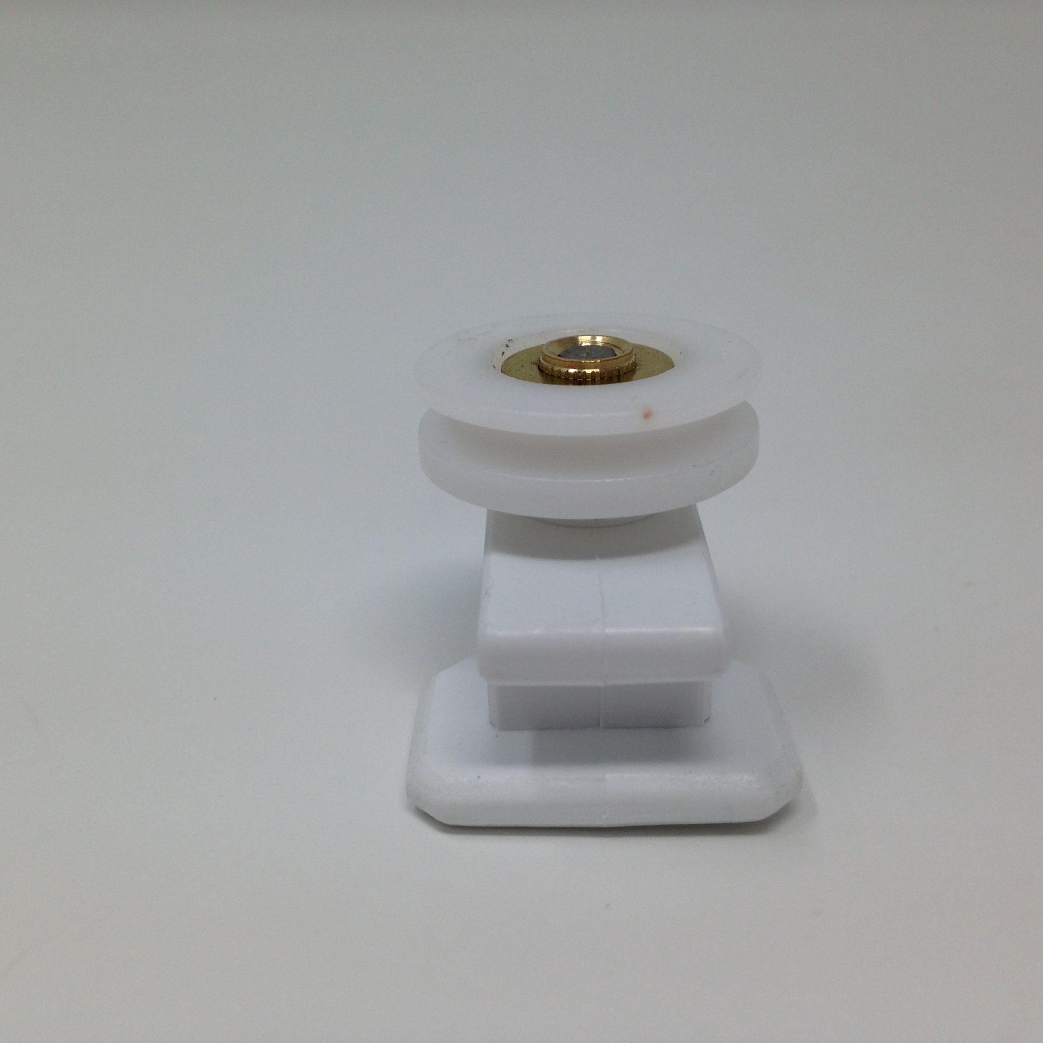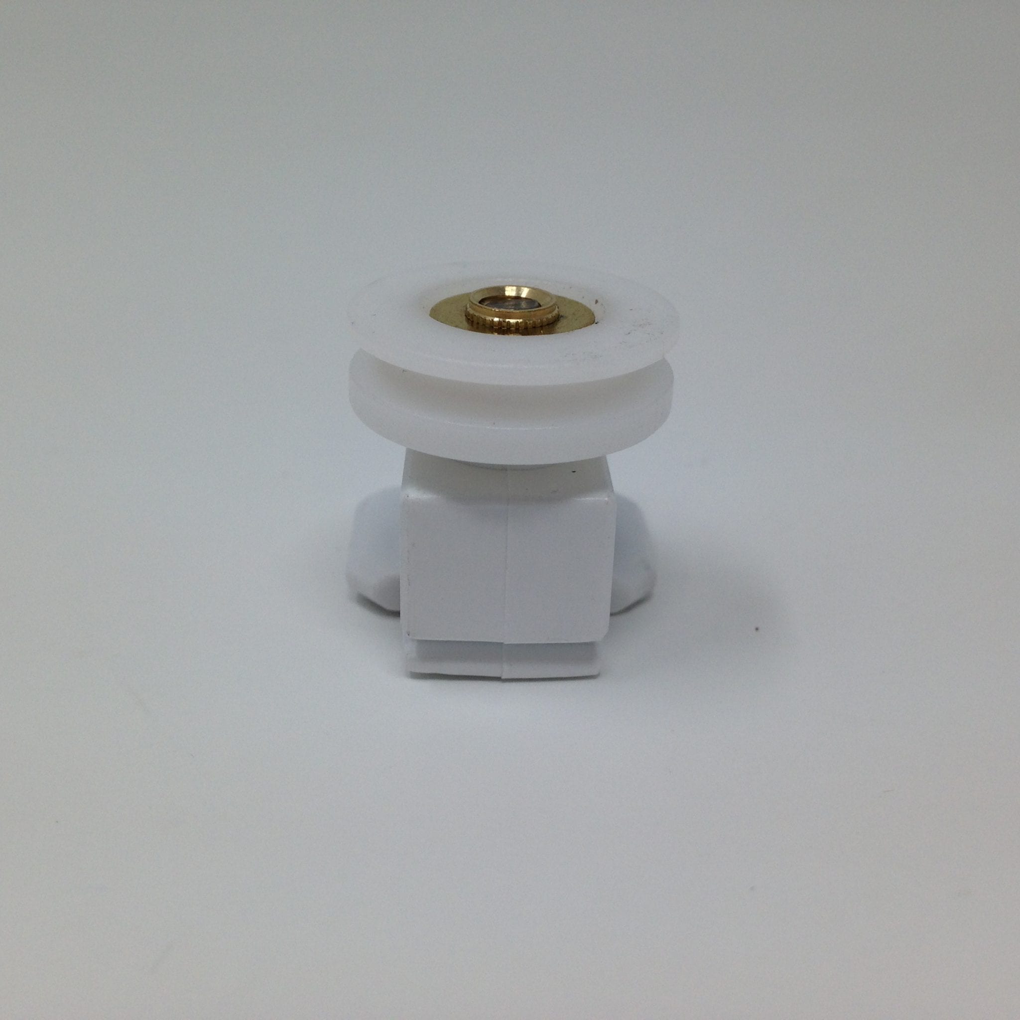 Roulette simple pour porte coulissante de cabine de douche. Vendue à l’unité, cette roulette se compose d’un corps en laiton. Le bandage plat de la roulette est en téflon, recouvrant un roulement à billes étanche en acier inoxydable. Le choix et la qualité des matériaux employés offrent une utilisation optimale de confort, limitant ainsi le frottement et le bruit lors de la manipulation de la porte.