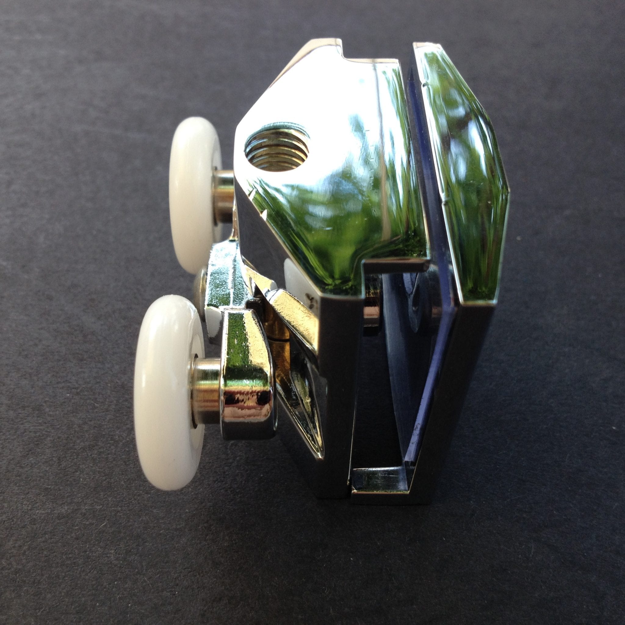 Roulette double pour porte coulissante de cabine de douche NOVELLINI. Vendue à l’unité, cette roulette se compose d’un corps en laiton et d’éléments de soutien en plastique type ABS. Le bandage de la roulette est en téflon, recouvrant un roulement à billes étanche en acier inoxydable. Le choix et la qualité des matériaux employés offrent une utilisation optimale de confort, limitant ainsi le frottement et le bruit lors de la manipulation de la porte.