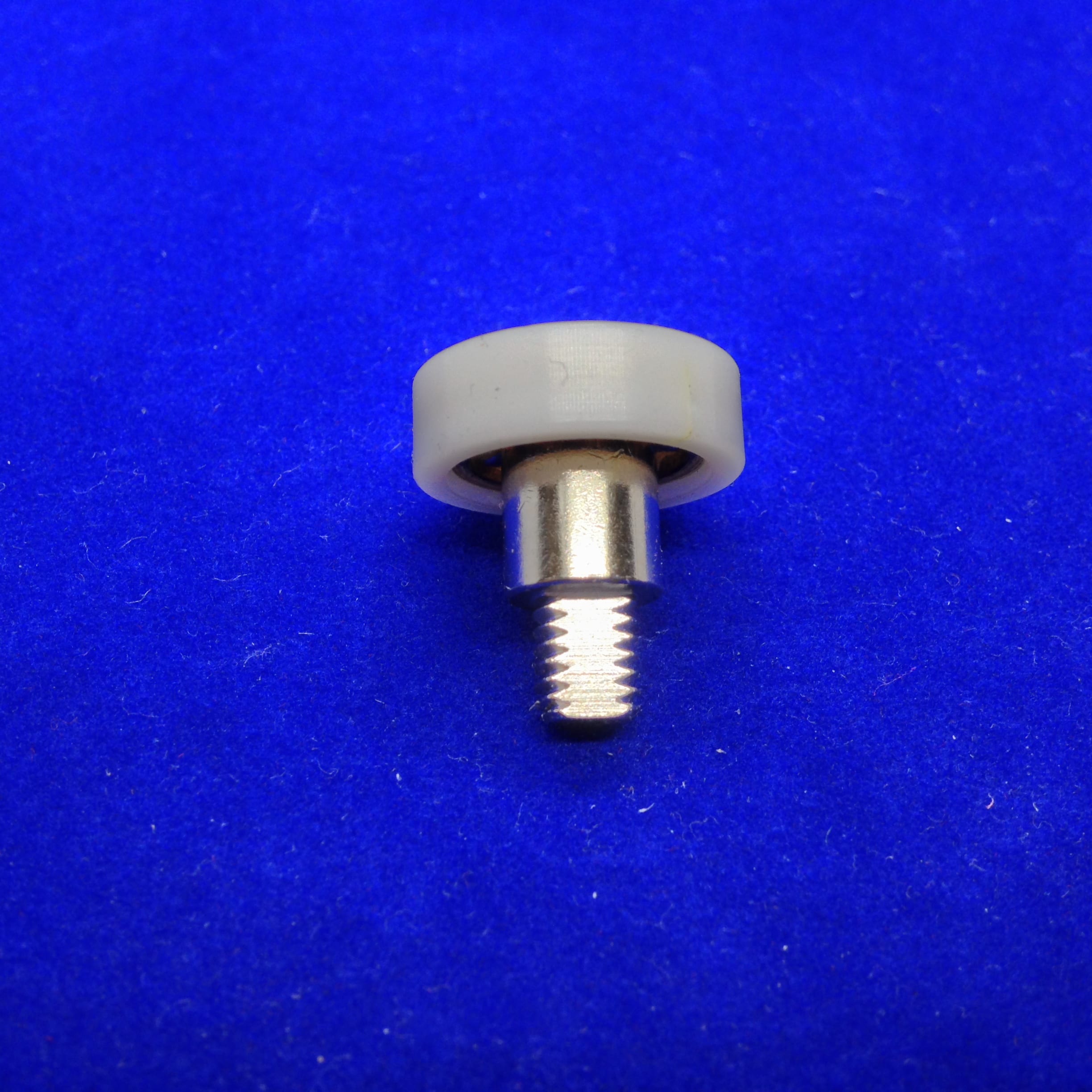 Roulette droite simple pour porte coulissante de cabine de douche. Vendue par lot de 2, cette roulette se composent d’un corps en laiton. Le bandage plat de la roulette est en téflon, recouvrant un roulement à billes étanche en acier inoxydable. Le choix et la qualité des matériaux employés offrent une utilisation optimale de confort, limitant ainsi le frottement et le bruit lors de la manipulation de la porte.