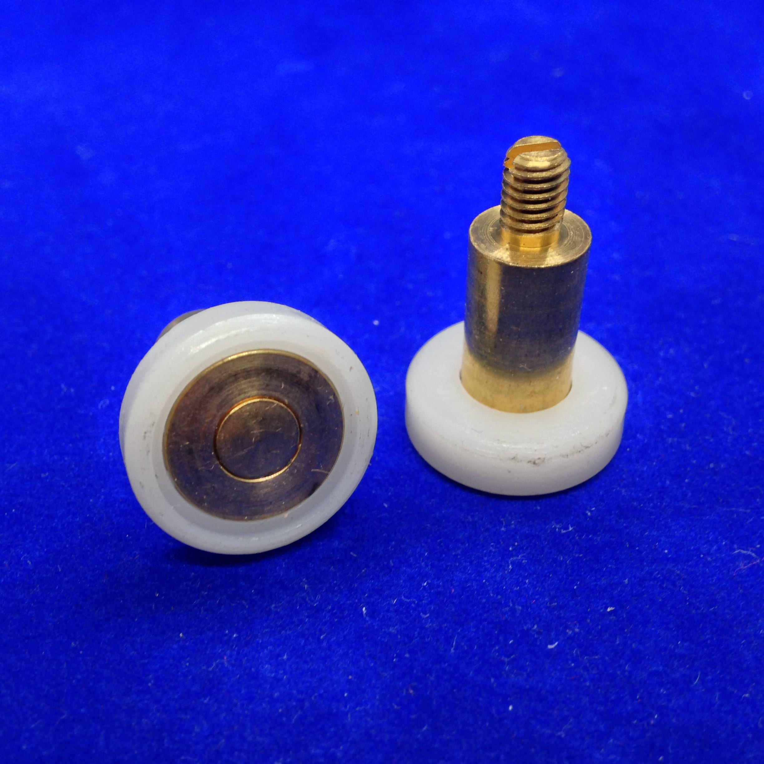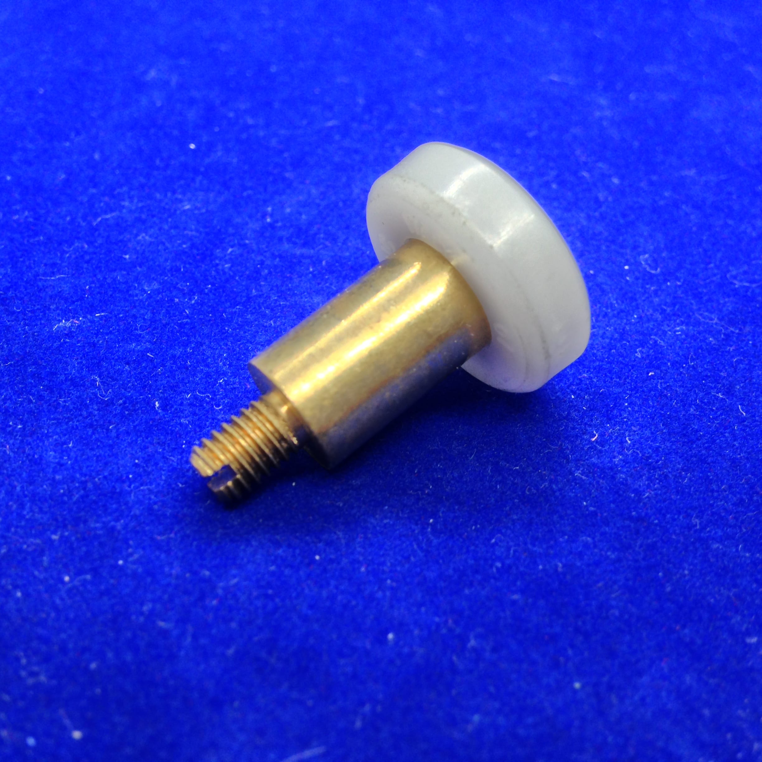 Roulette droite simple pour porte coulissante de cabine de douche. Vendue par lot de 2, cette roulette se composent d’un corps en laiton. Le bandage plat de la roulette est en téflon, recouvrant un roulement à billes étanche en acier inoxydable. Le choix et la qualité des matériaux employés offrent une utilisation optimale de confort, limitant ainsi le frottement et le bruit lors de la manipulation de la porte.