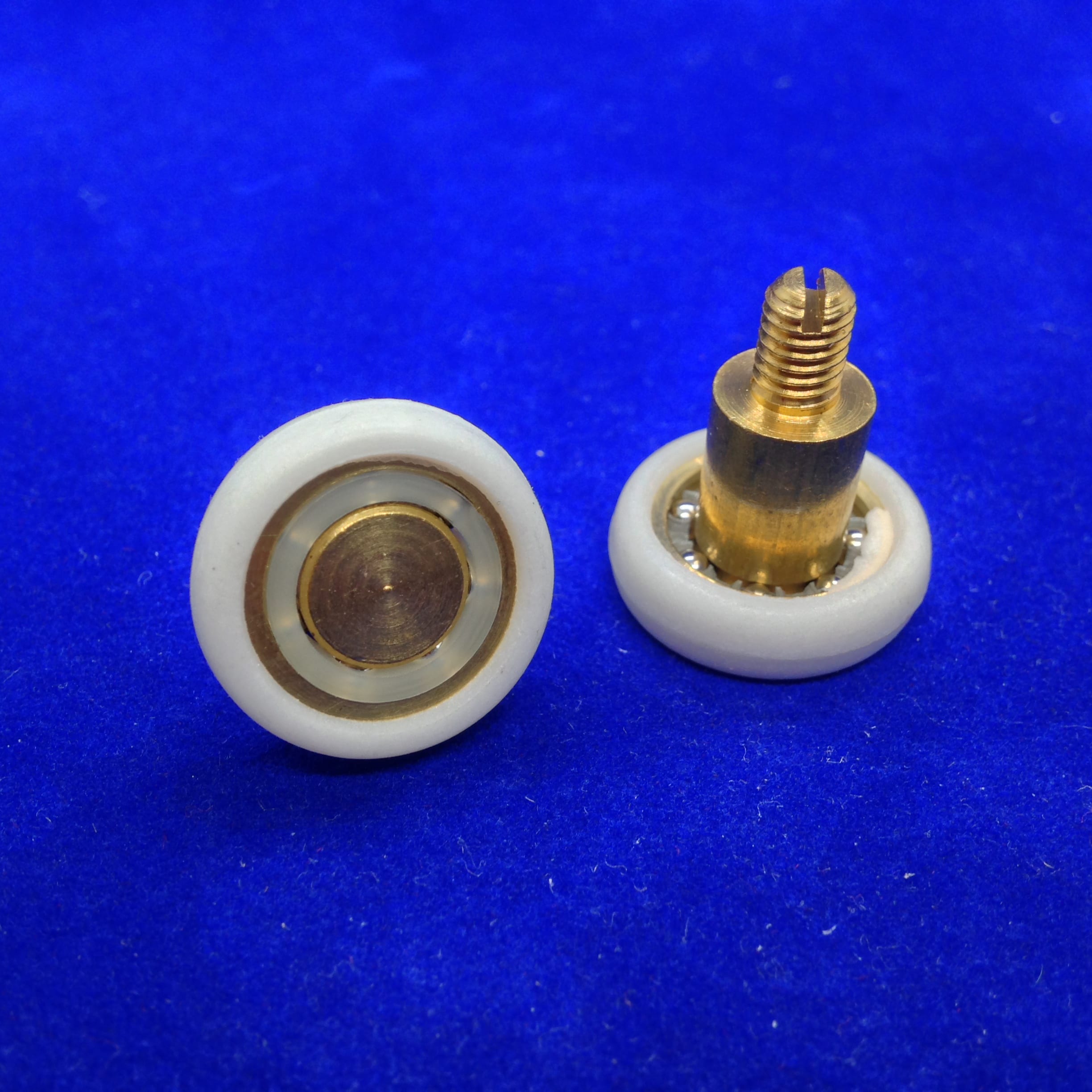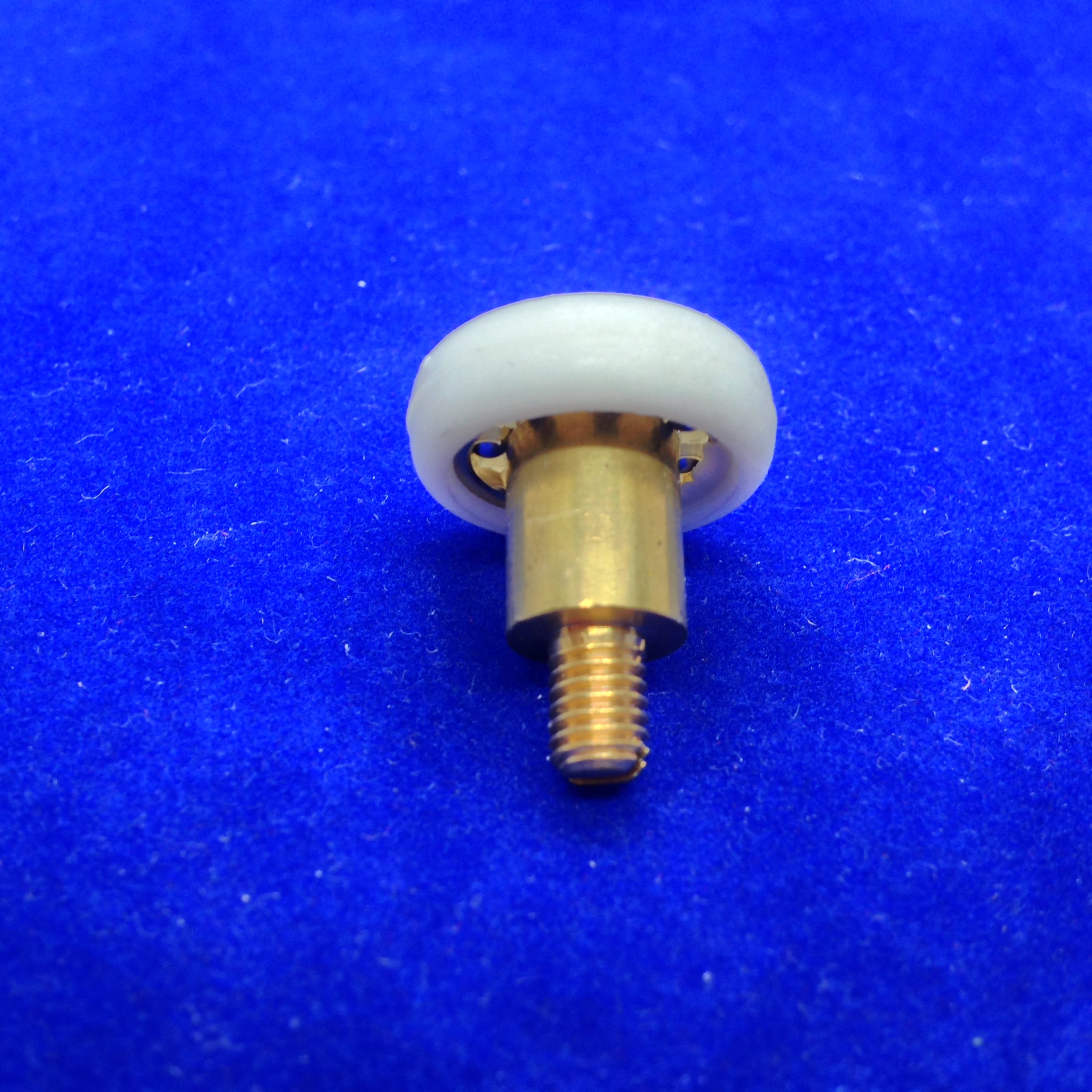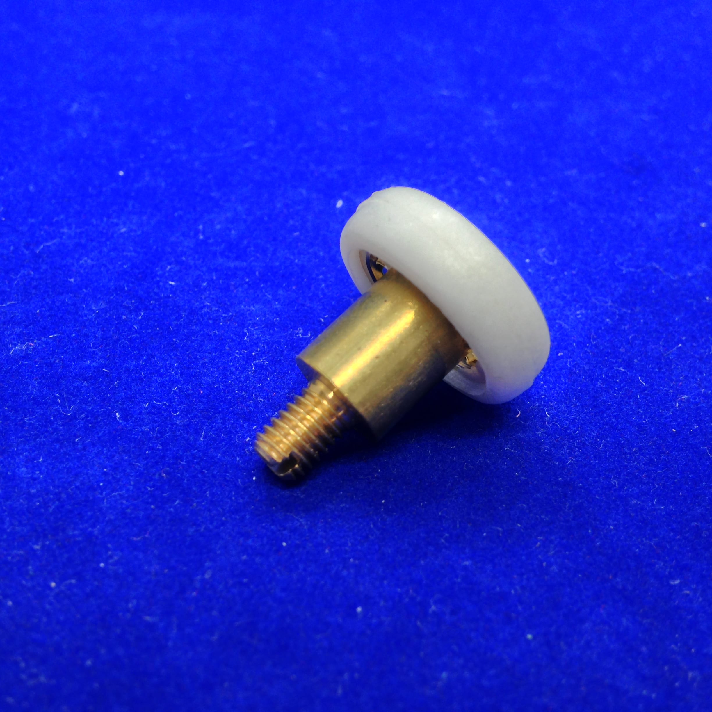 Roulette droite simple pour porte coulissante de cabine de douche. Vendue par lot de 2, cette roulette se composent d’un corps en laiton. Le bandage plat de la roulette est en téflon, recouvrant un roulement à billes étanche en acier inoxydable. Le choix et la qualité des matériaux employés offrent une utilisation optimale de confort, limitant ainsi le frottement et le bruit lors de la manipulation de la porte.