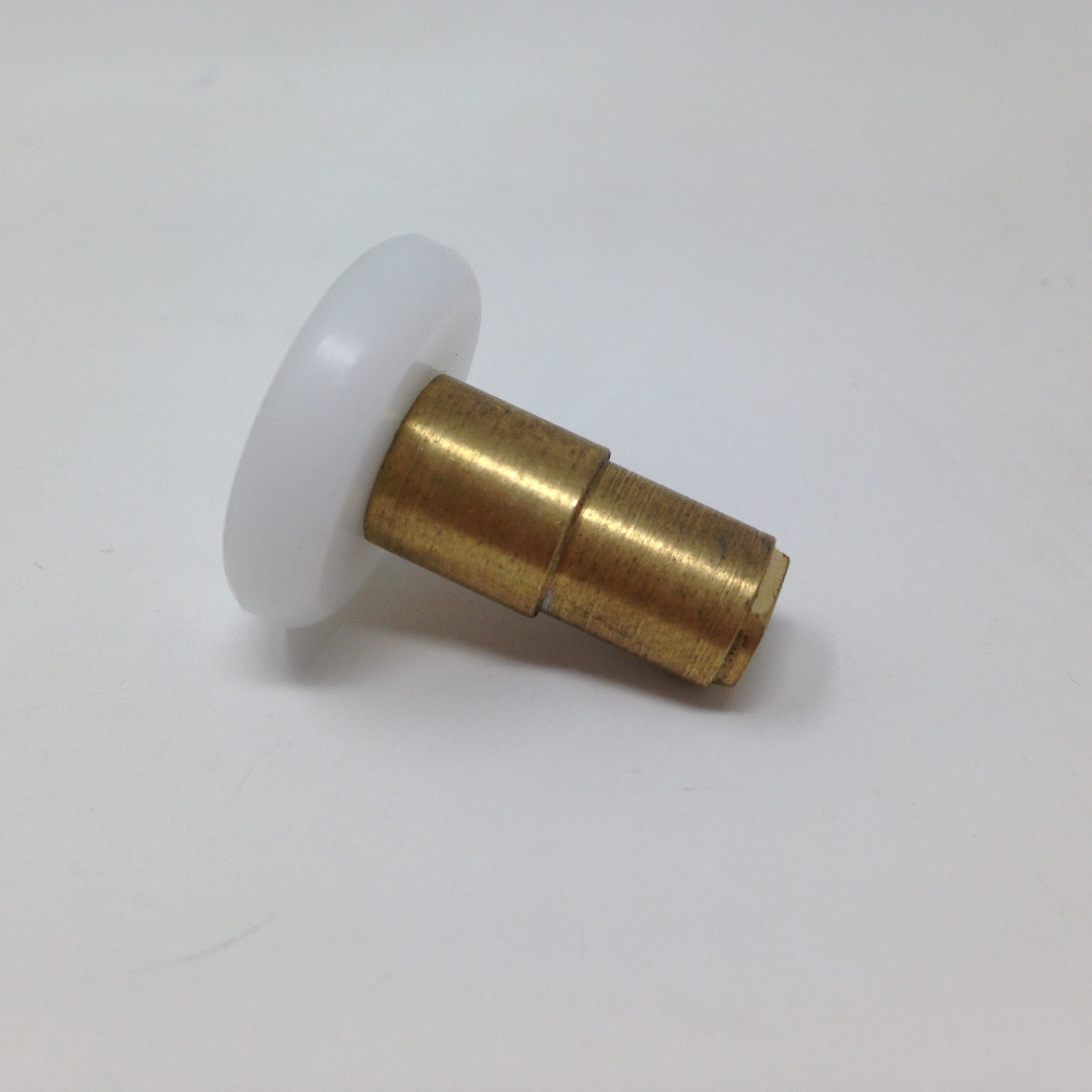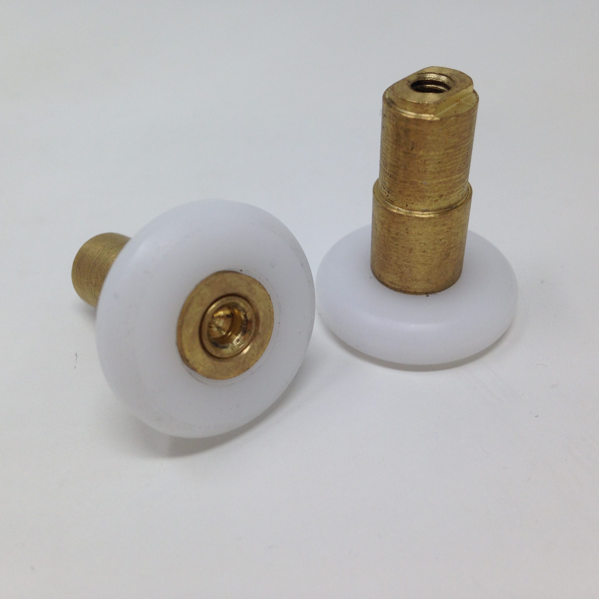 Roulette droite simple pour porte coulissante de cabine de douche. Vendue par lot de 2, cette roulette se compose d’un corps en laiton. Le bandage de la roulette est en téflon, recouvrant un roulement à billes étanche en acier inoxydable. Le choix et la qualité des matériaux employés offrent une utilisation optimale de confort, limitant ainsi le frottement et le bruit lors de la manipulation de la porte.