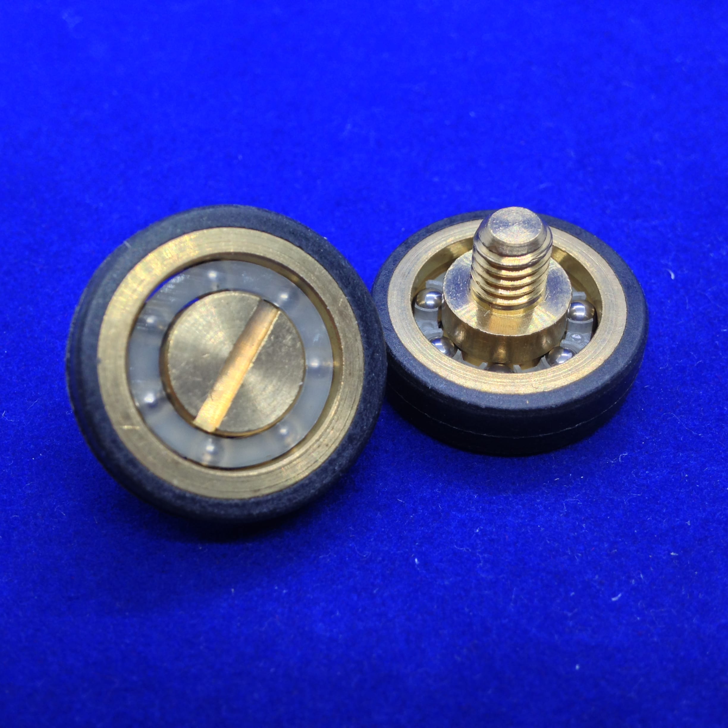 Roulette droite simple pour porte coulissante de cabine de douche. Vendue par lot de 2, cette roulette se composent d’un corps en laiton. Le bandage plat de la roulette est en téflon, recouvrant un roulement à billes étanche en acier inoxydable. Le choix et la qualité des matériaux employés offrent une utilisation optimale de confort, limitant ainsi le frottement et le bruit lors de la manipulation de la porte.
